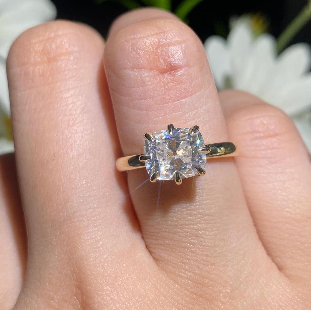2 CT Elongated Engagement Ring 14K Gold Moissanite Ring for Women Lab Grown Diamond Bridal Ring Unique Anniversary Gift Handmade Jewelry