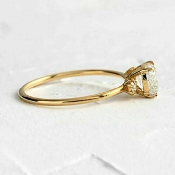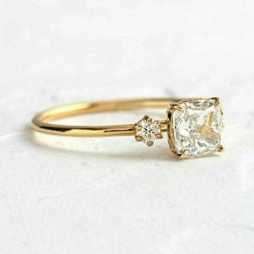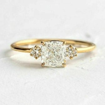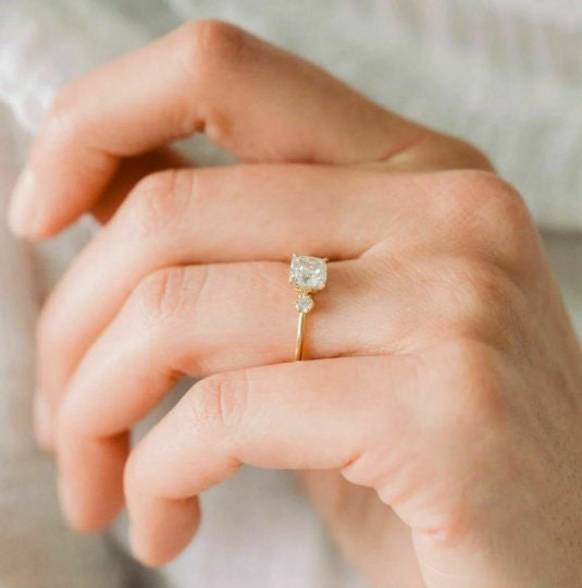 Cushion Cut Moissanite Three Stone Engagement Ring, 14K Yellow Gold Past Present Future Wedding Ring, Minimalist Bridal Ring for Women