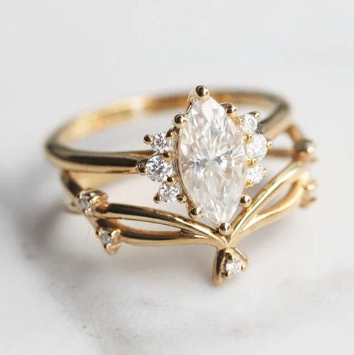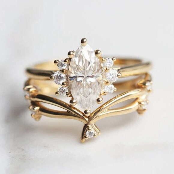 Marquise Cut 1.50 Carat White Moissanite Ring Set With Twisted Band, Wedding Ring Set For Bride, Anniversary Gift For Her, Engagement Ring