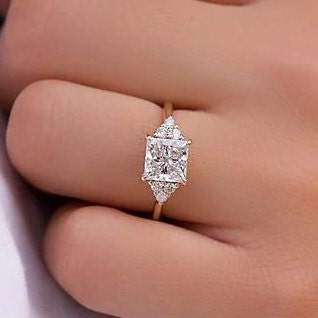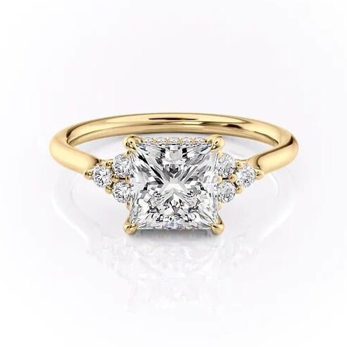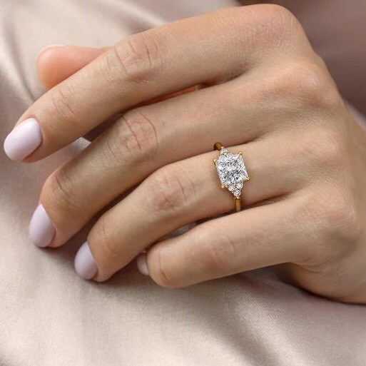 2CT Princess Cut Lab Grown Diamond Engagement Ring Dainty Solitaire Moissanite Solid Yellow Gold Proposal Ring Anniversary Promise Ring Gift