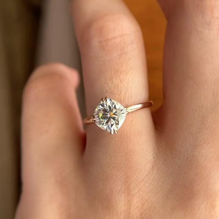 1.70 CT Cushion Cut Lab Grown Diamond Ring 14K Rose Gold Moissanite Solitaire Engagement Ring Minimalist Proposal Ring For Women