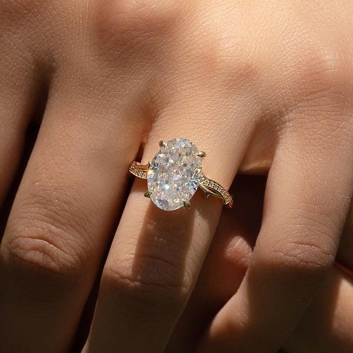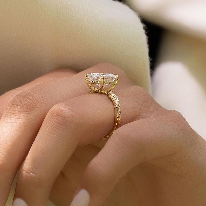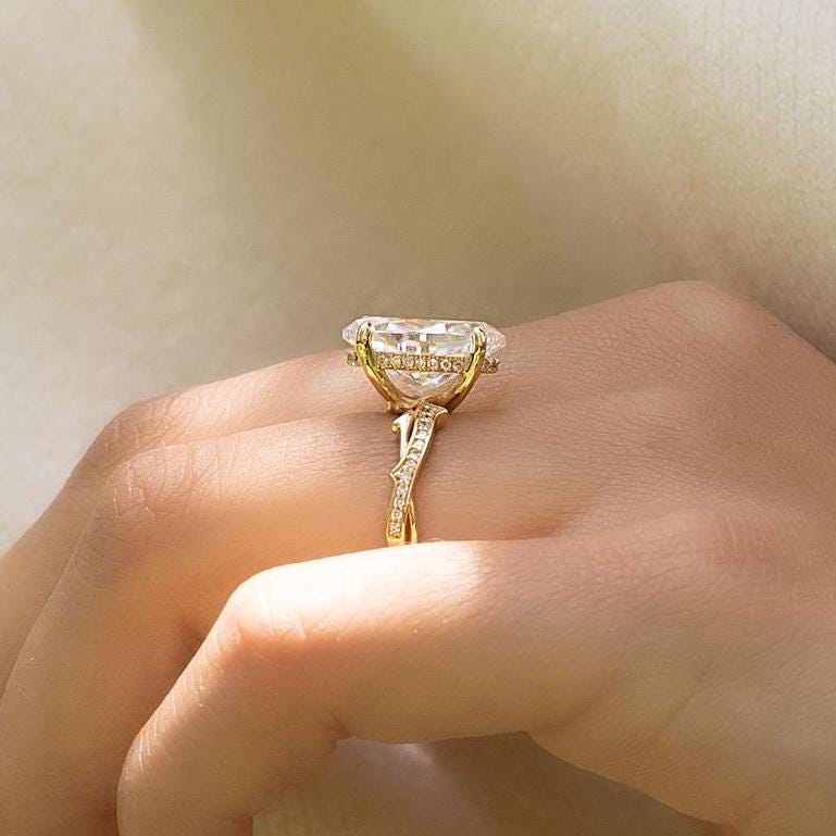 5 CT Oval Moissanite Engagement Ring Hidden Halo Pave Band Solid Yellow Gold Proposal Ring Delicate Lab Grown Diamond Anniversary Ring Gift