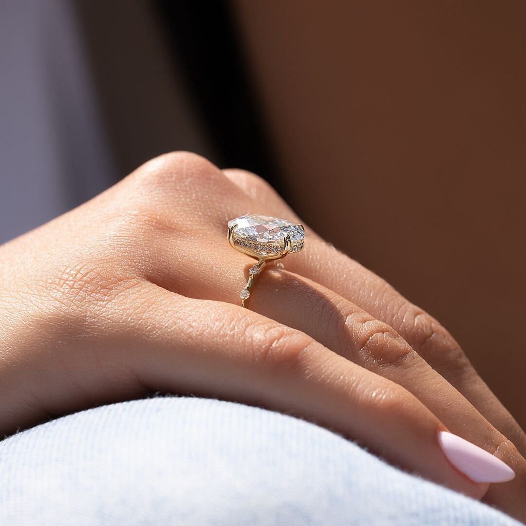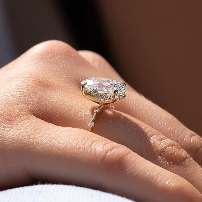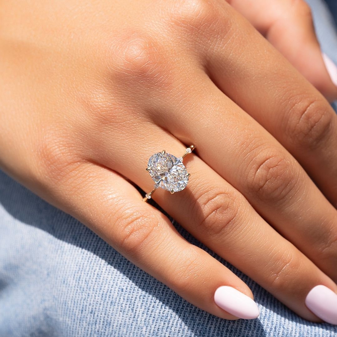 2.50 CT Oval Lab Grown Engagement Ring Solitaire with Slim Band Hidden Halo Ring Yellow Gold Proposal Ring Moissanite Bridal Jewelry For Her