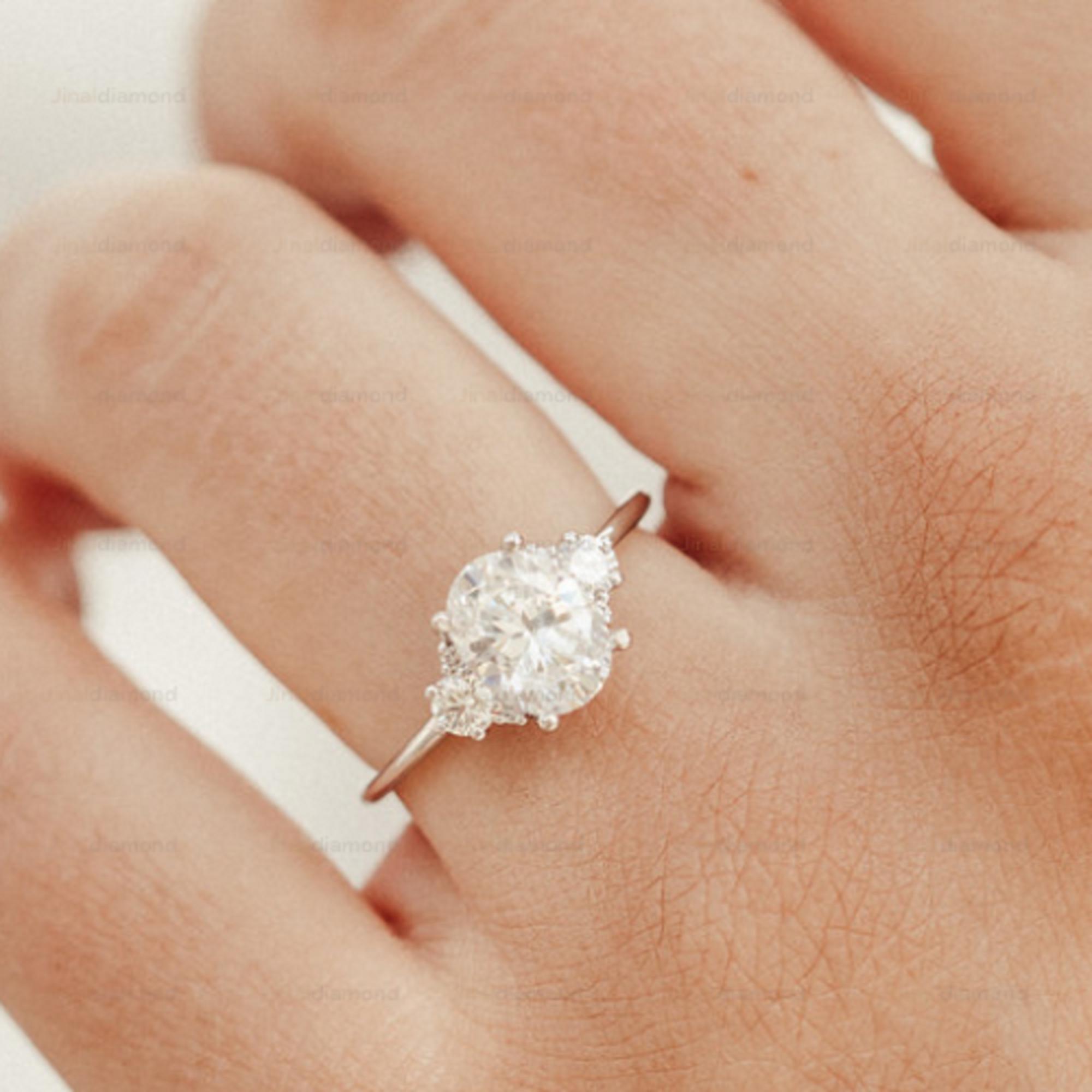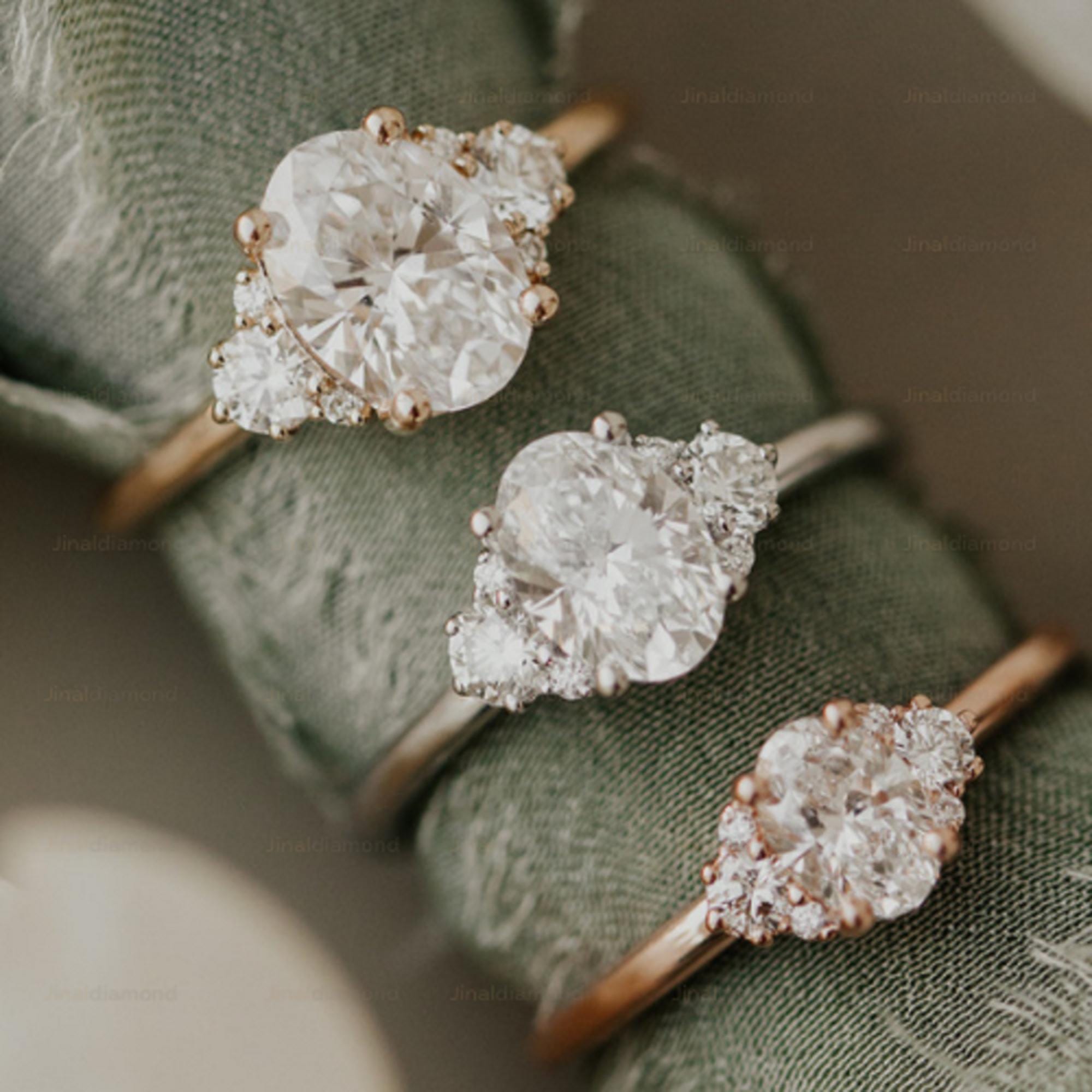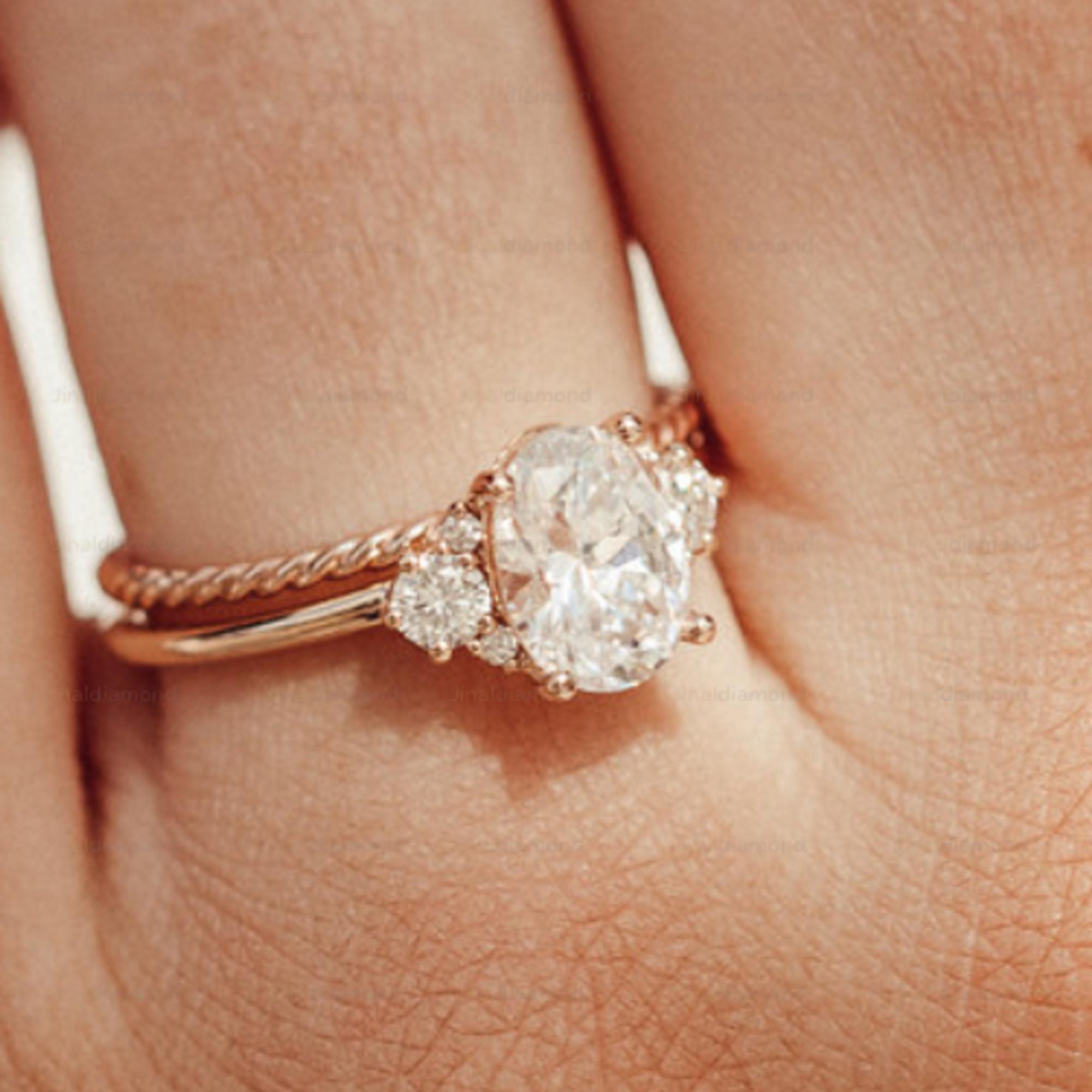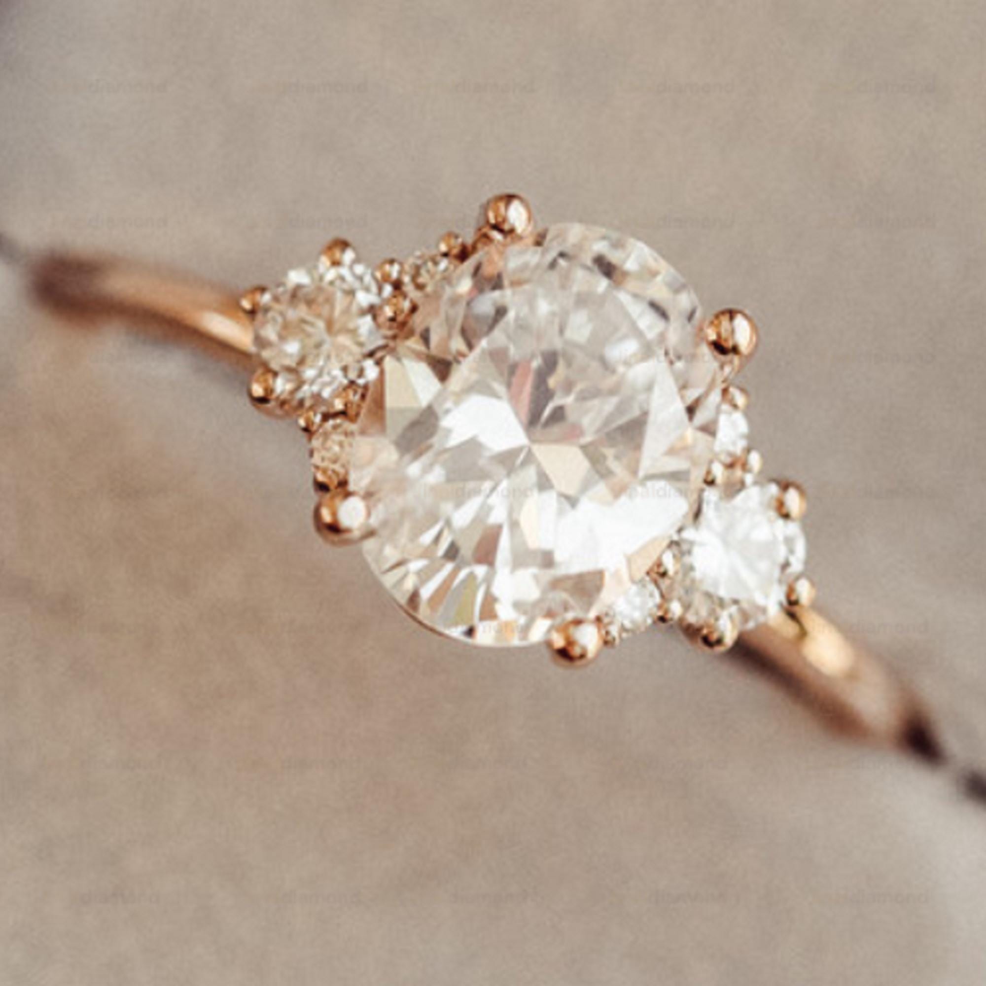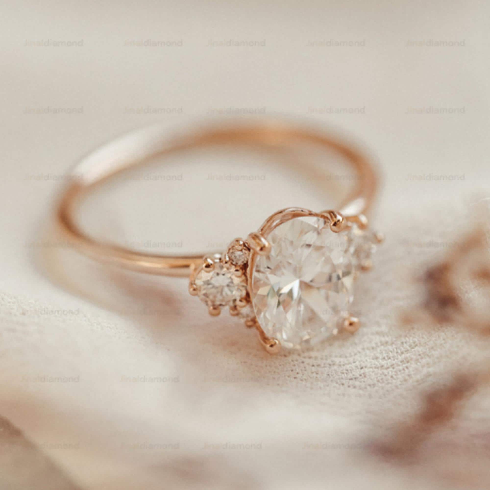 Oval Moissanite Engagement Ring 14k Rose Gold, Vintage Cluster Diamond Wedding Ring, Multi-Stone Bridal Ring, Art Deco Promise Ring for Her