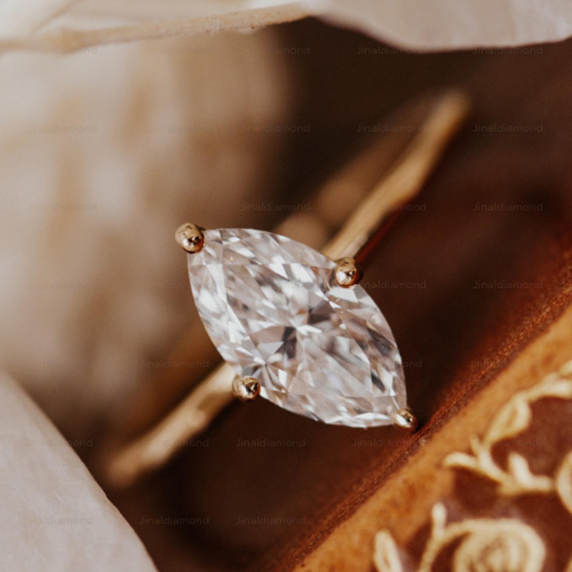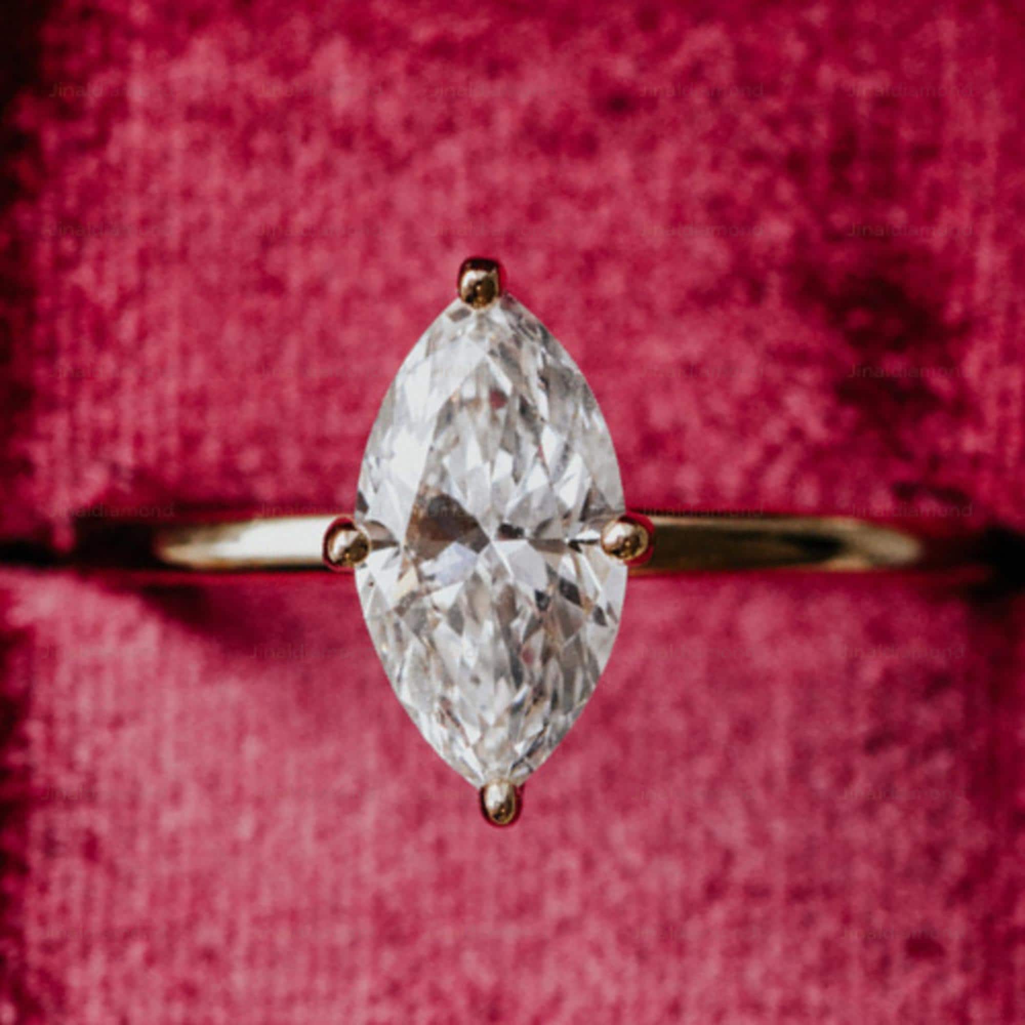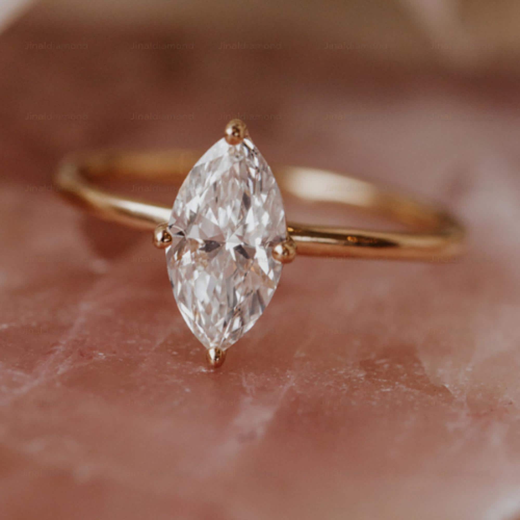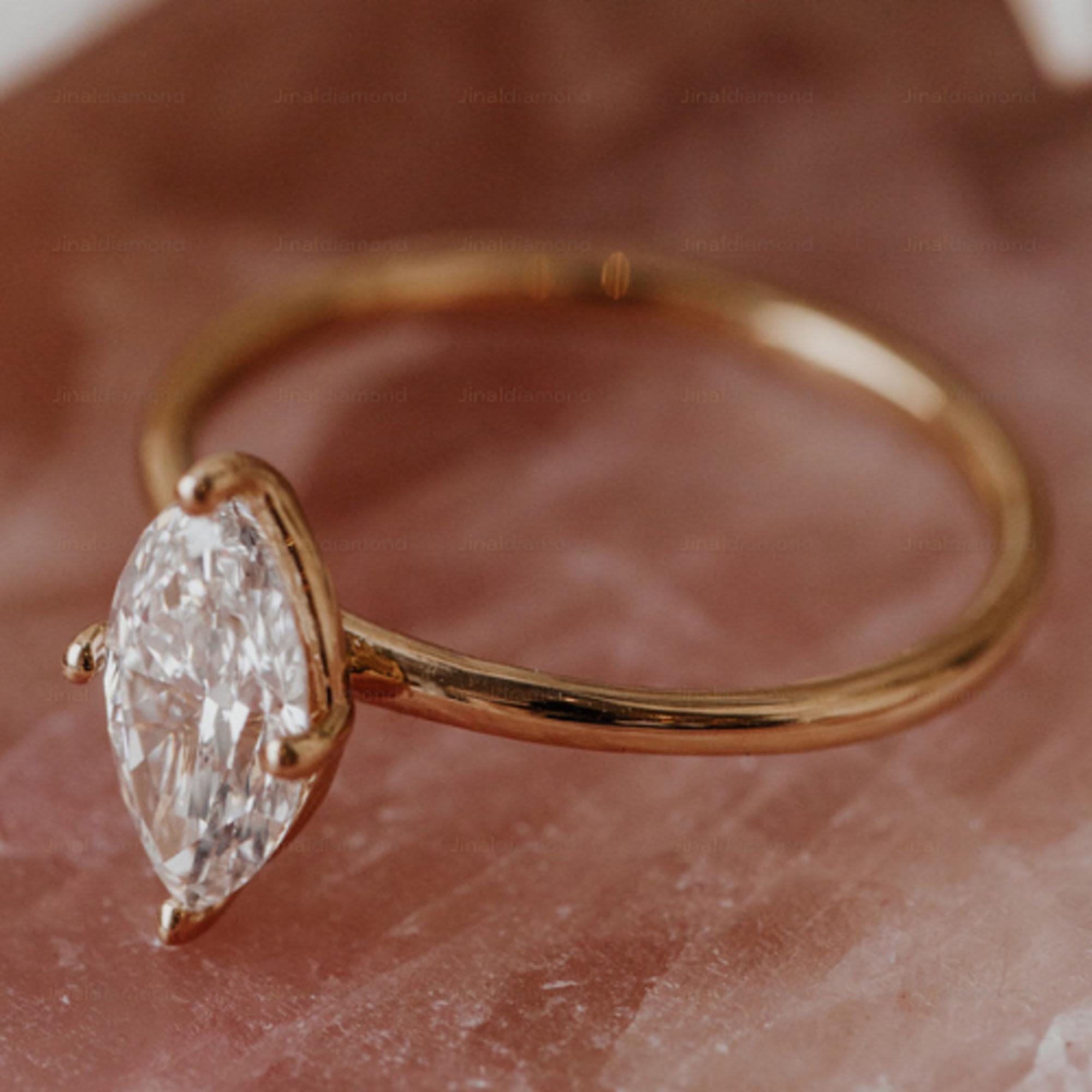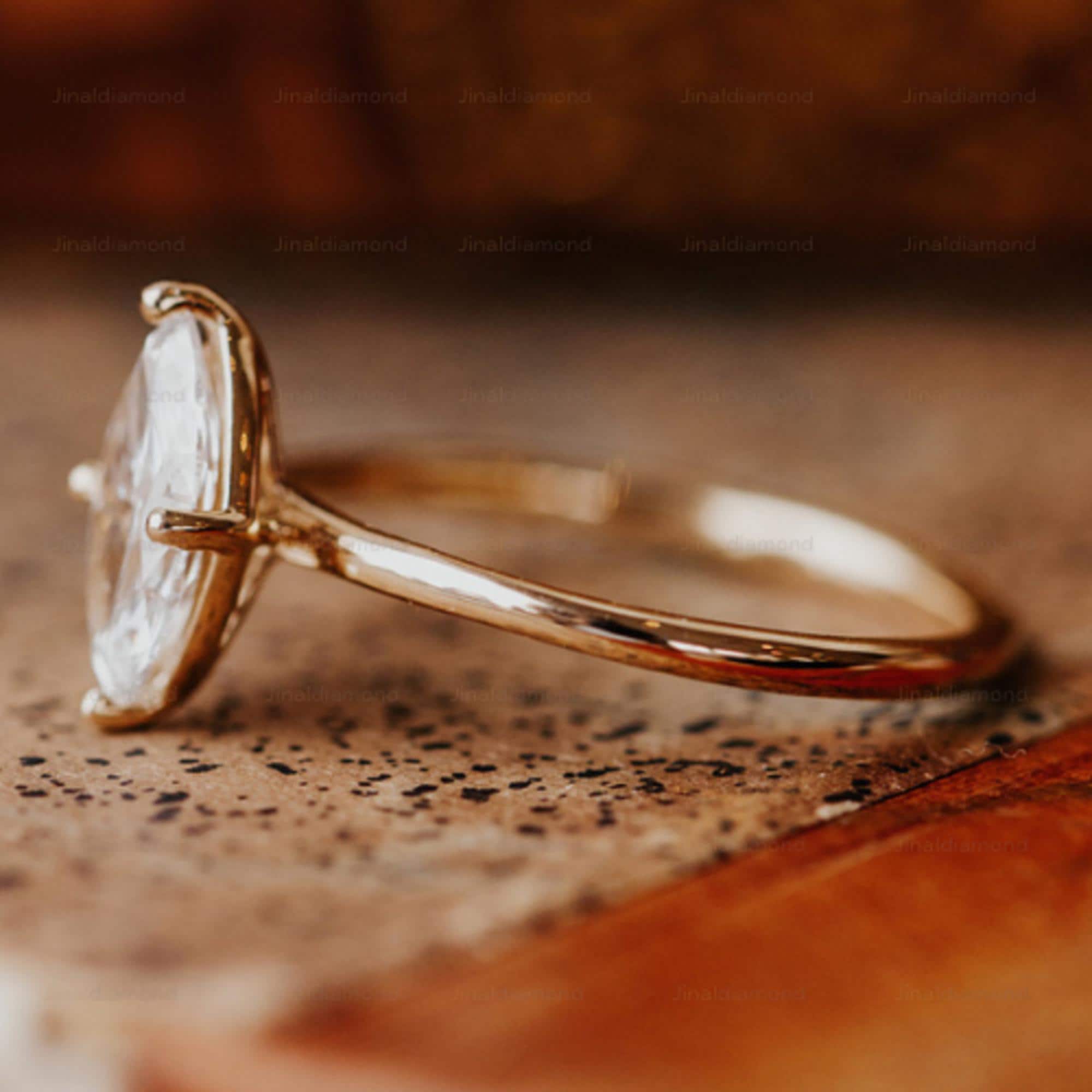 Marquise Cut Moissanite Engagement Ring, 14K Gold Minimalist Solitaire Ring for Women, Delicate Stackable Anniversary Gift Ring for Women