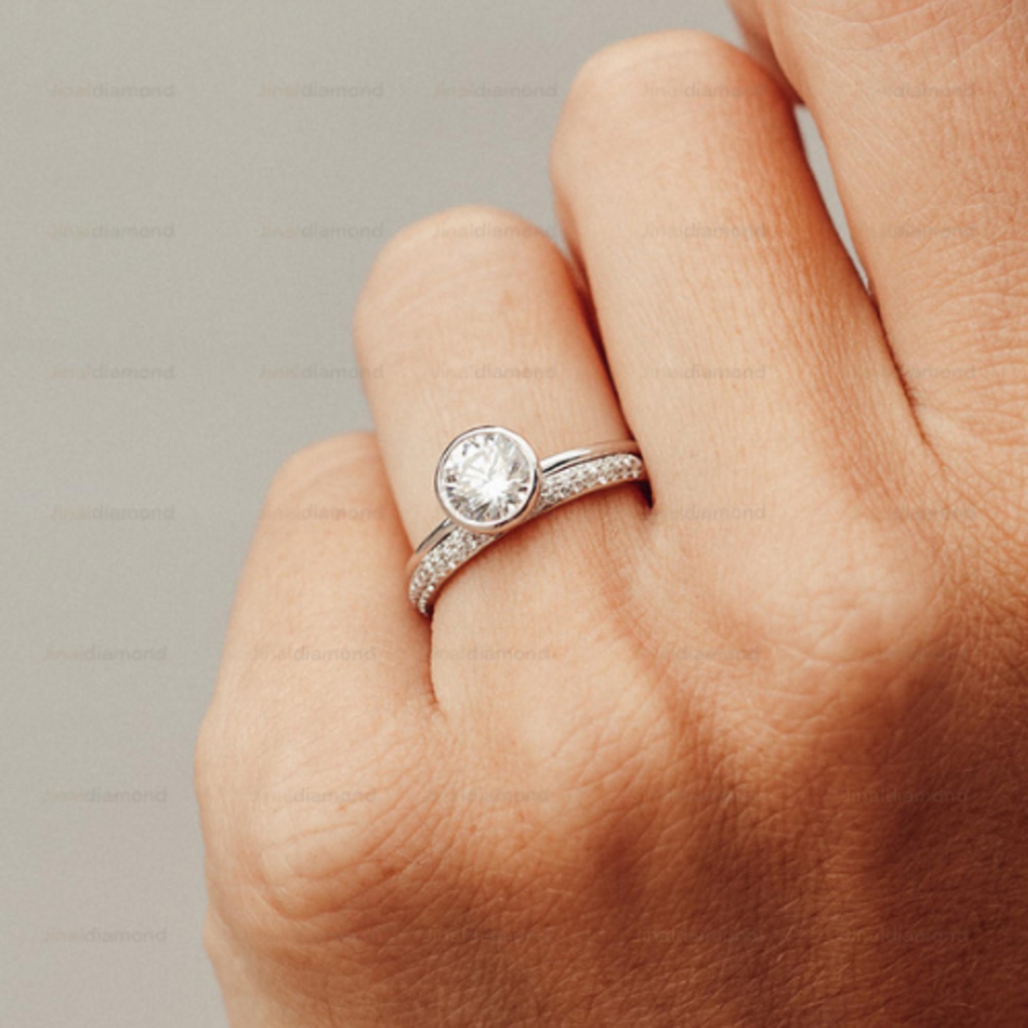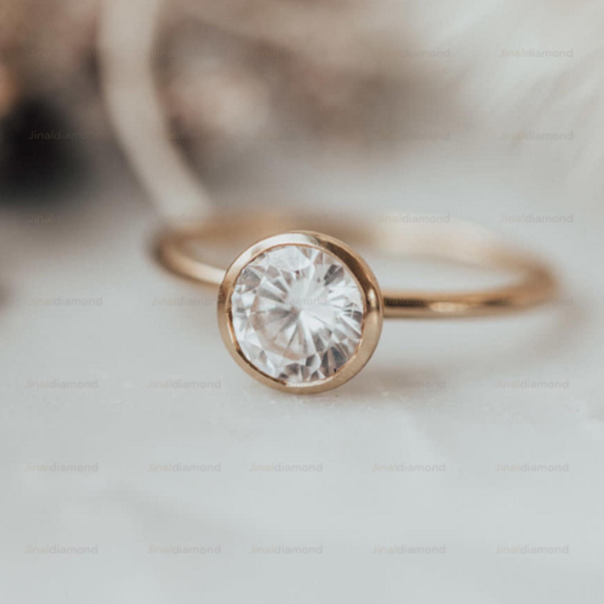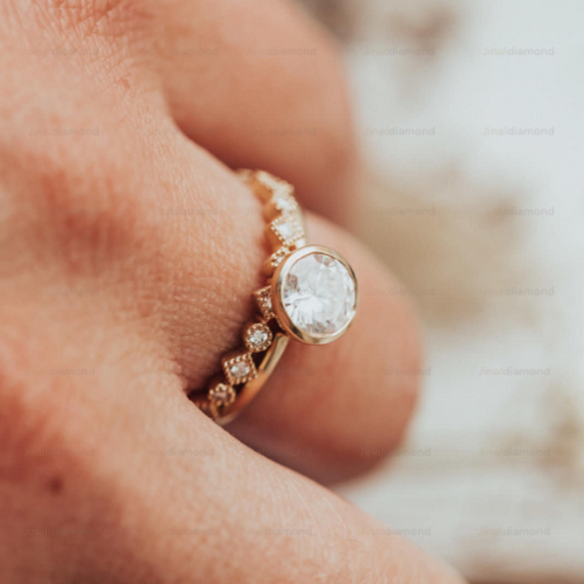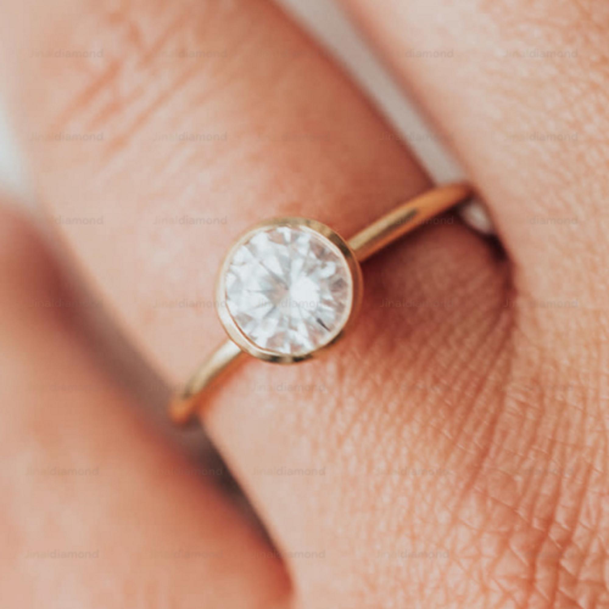 Minimalist Bezel Set Round Moissanite Engagement Ring in 14k Gold, Simple Solitaire Wedding Ring for Women, Modern Thin Gold Band Ring