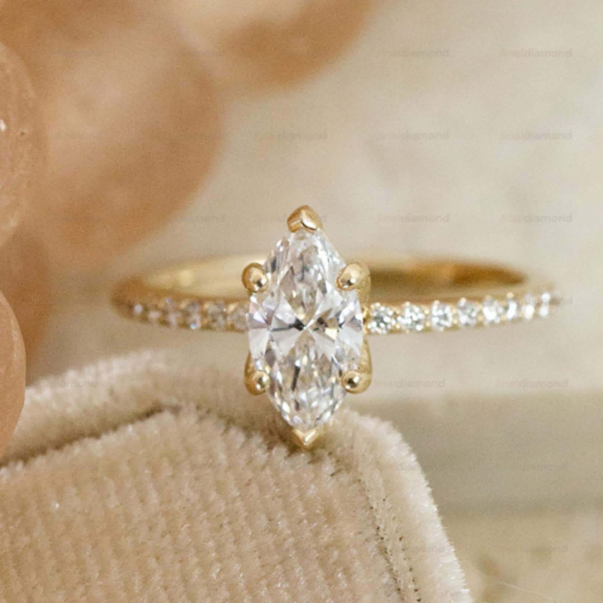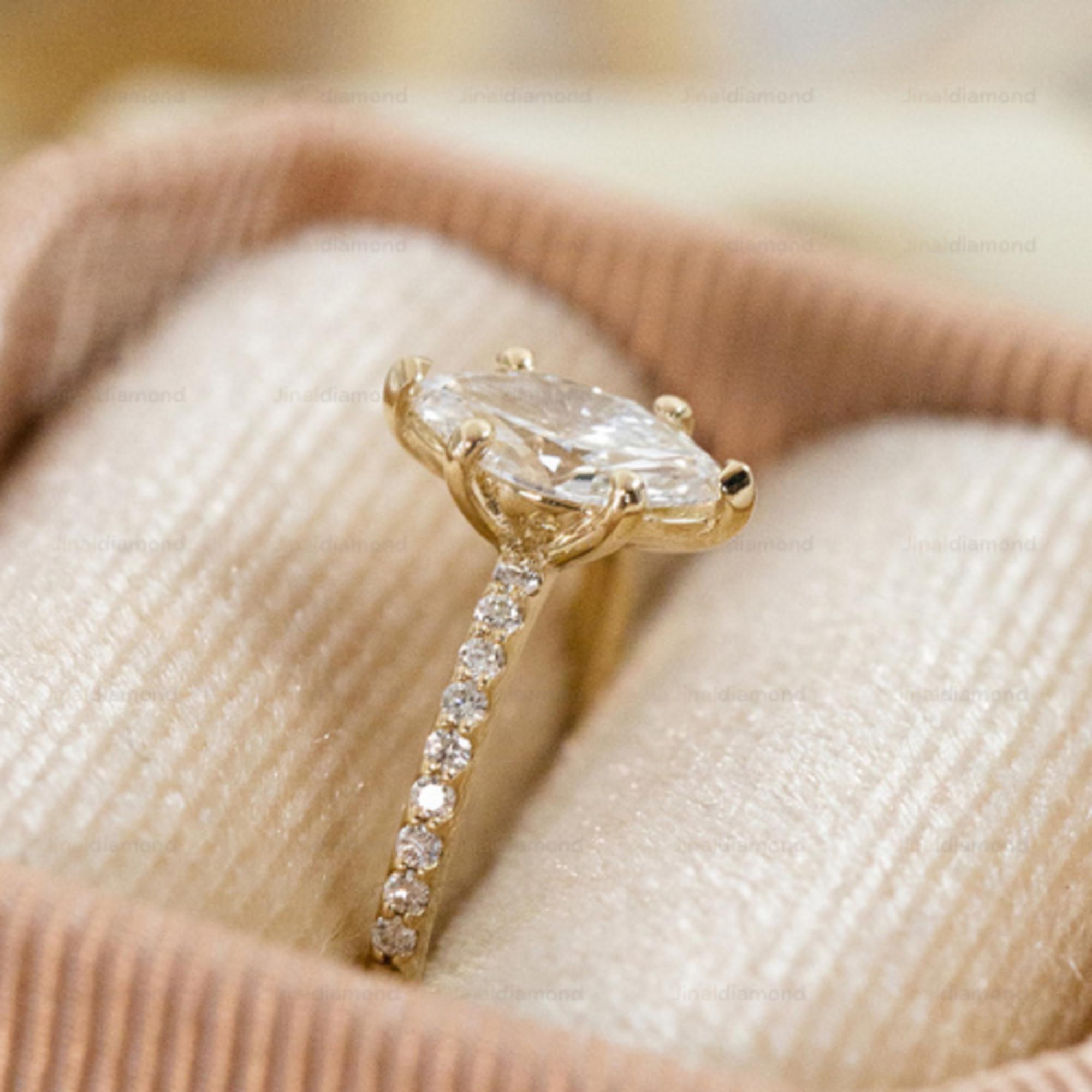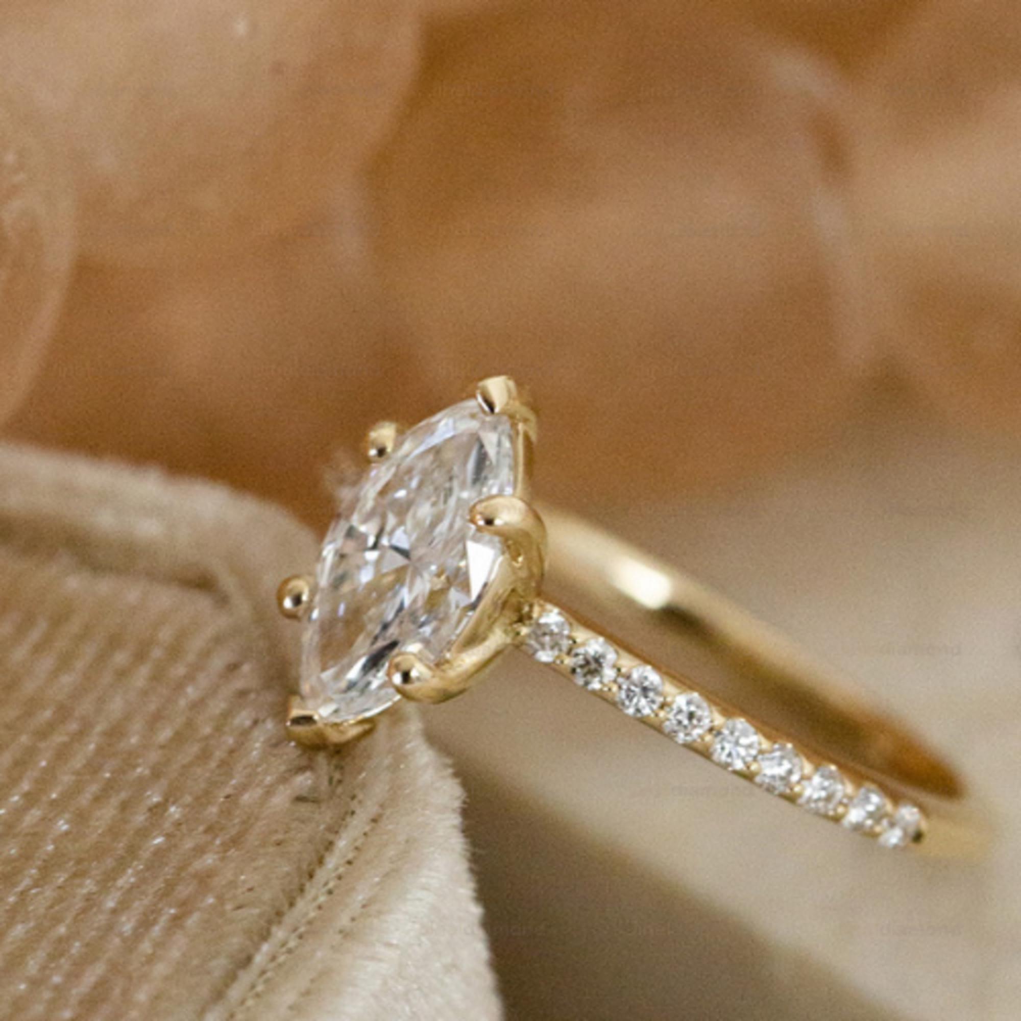 1.5 CT Marquise Cut Moissanite Stone Engagement Ring, 14k Solid Gold Wedding Ring, Delicate Anniversary Gift Ring, Stunning Ring for Women