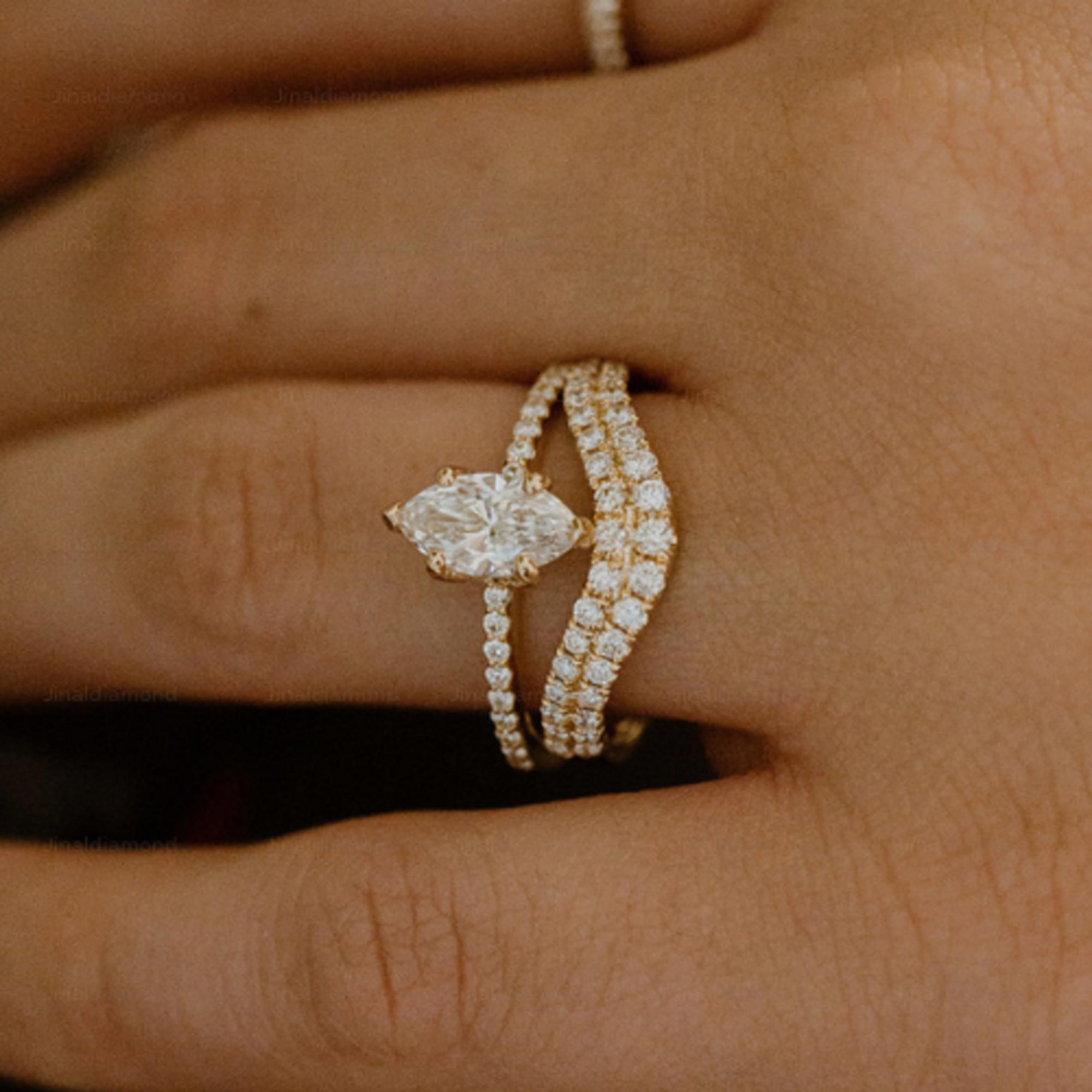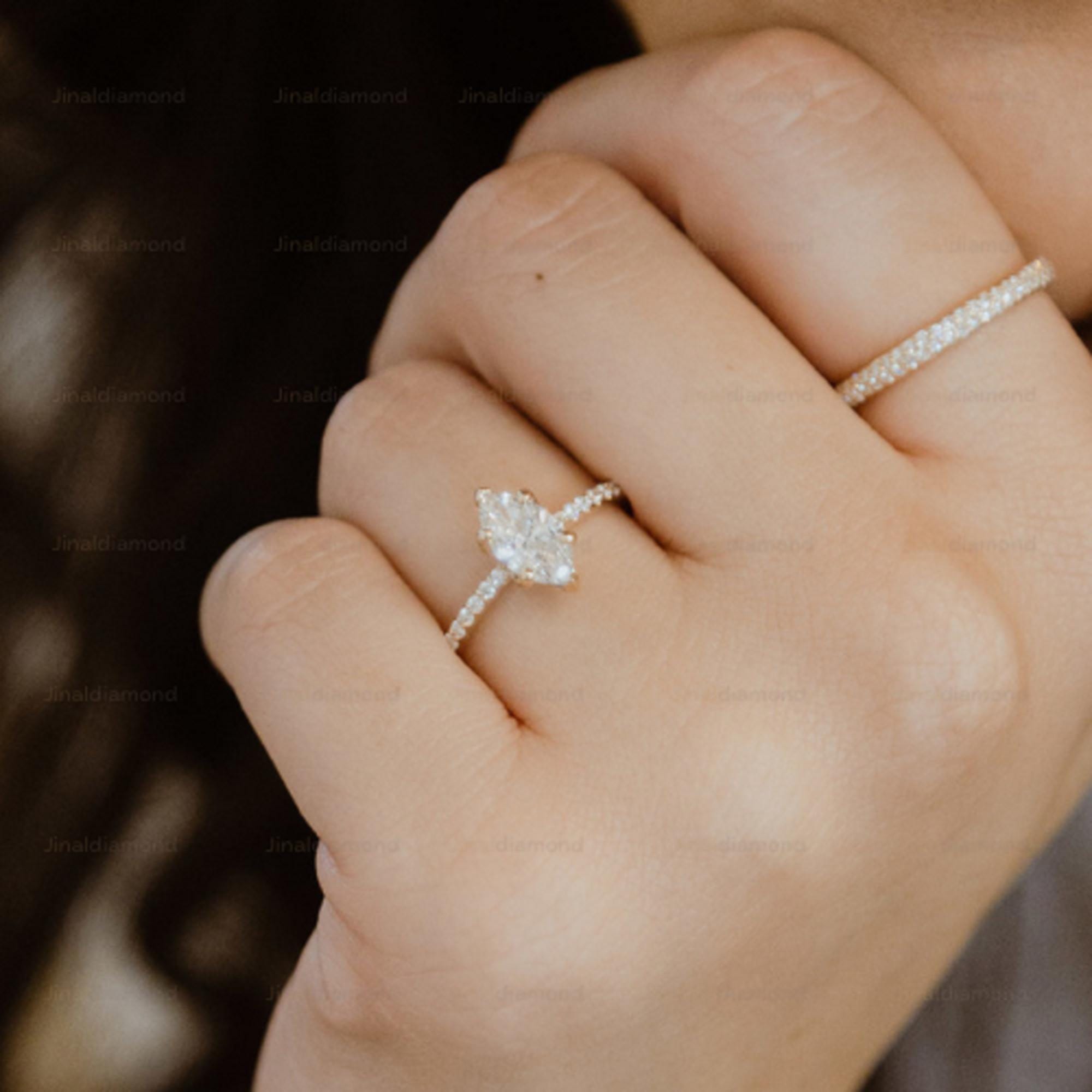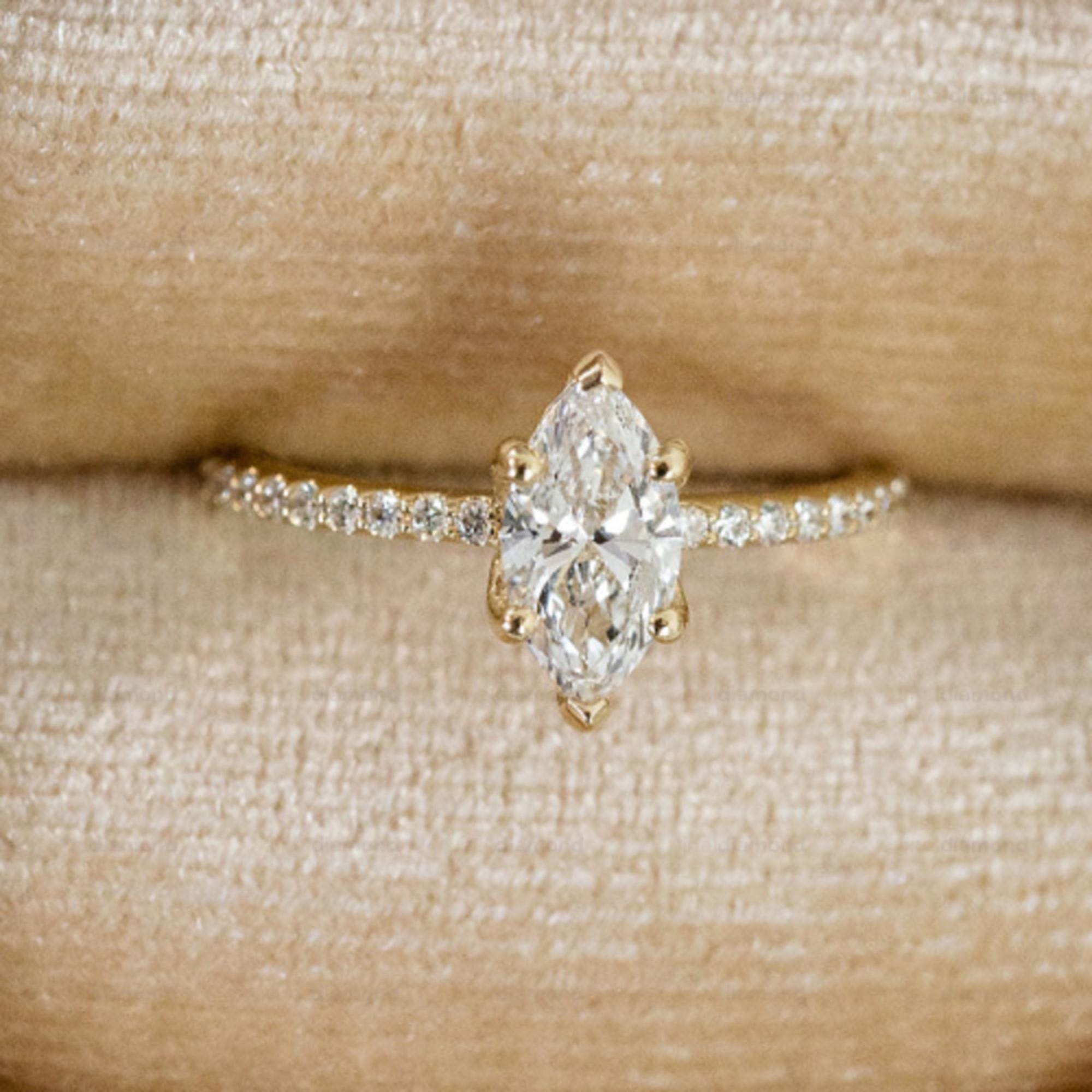 1.5 CT Marquise Cut Moissanite Stone Engagement Ring, 14k Solid Gold Wedding Ring, Delicate Anniversary Gift Ring, Stunning Ring for Women