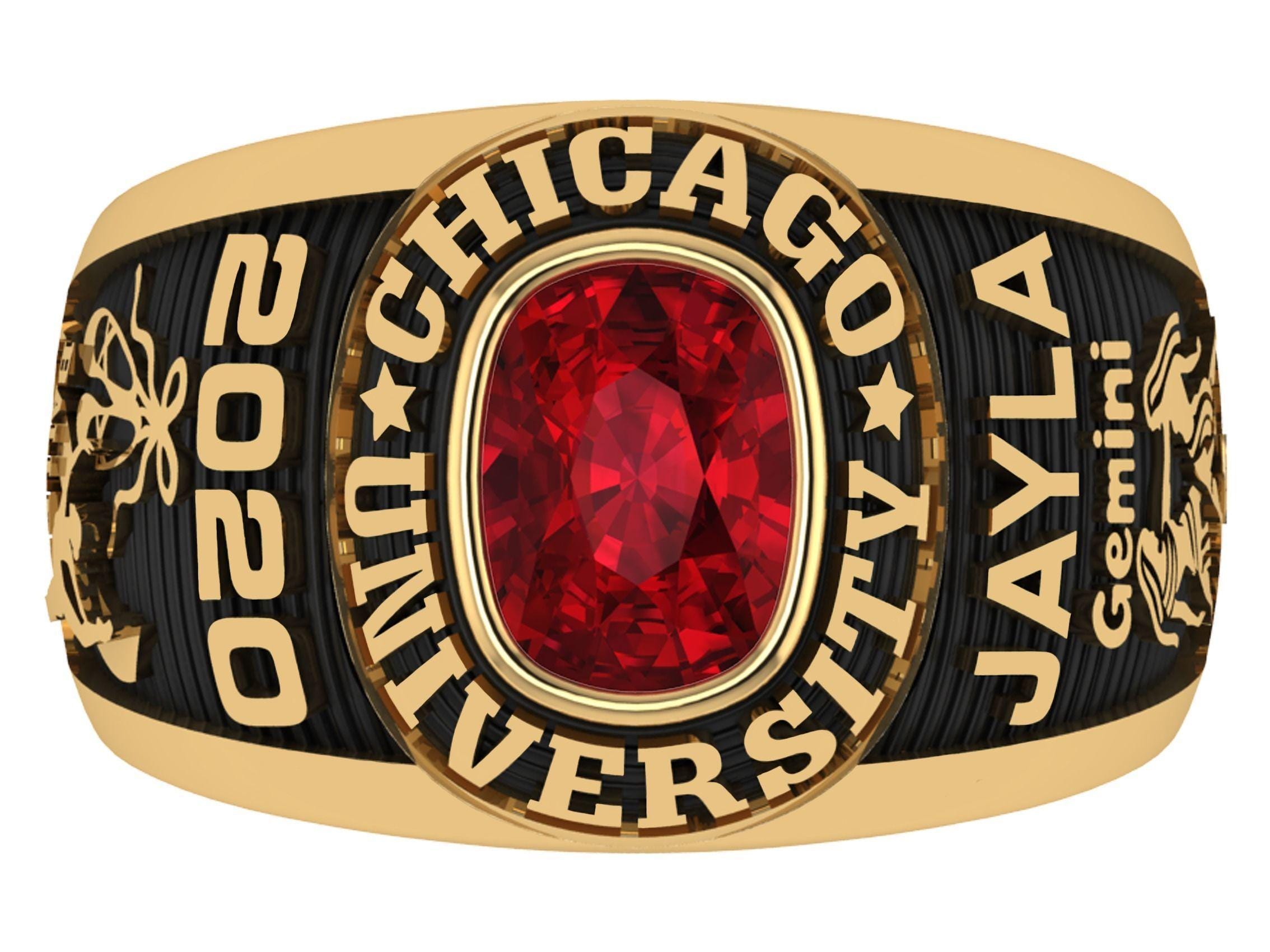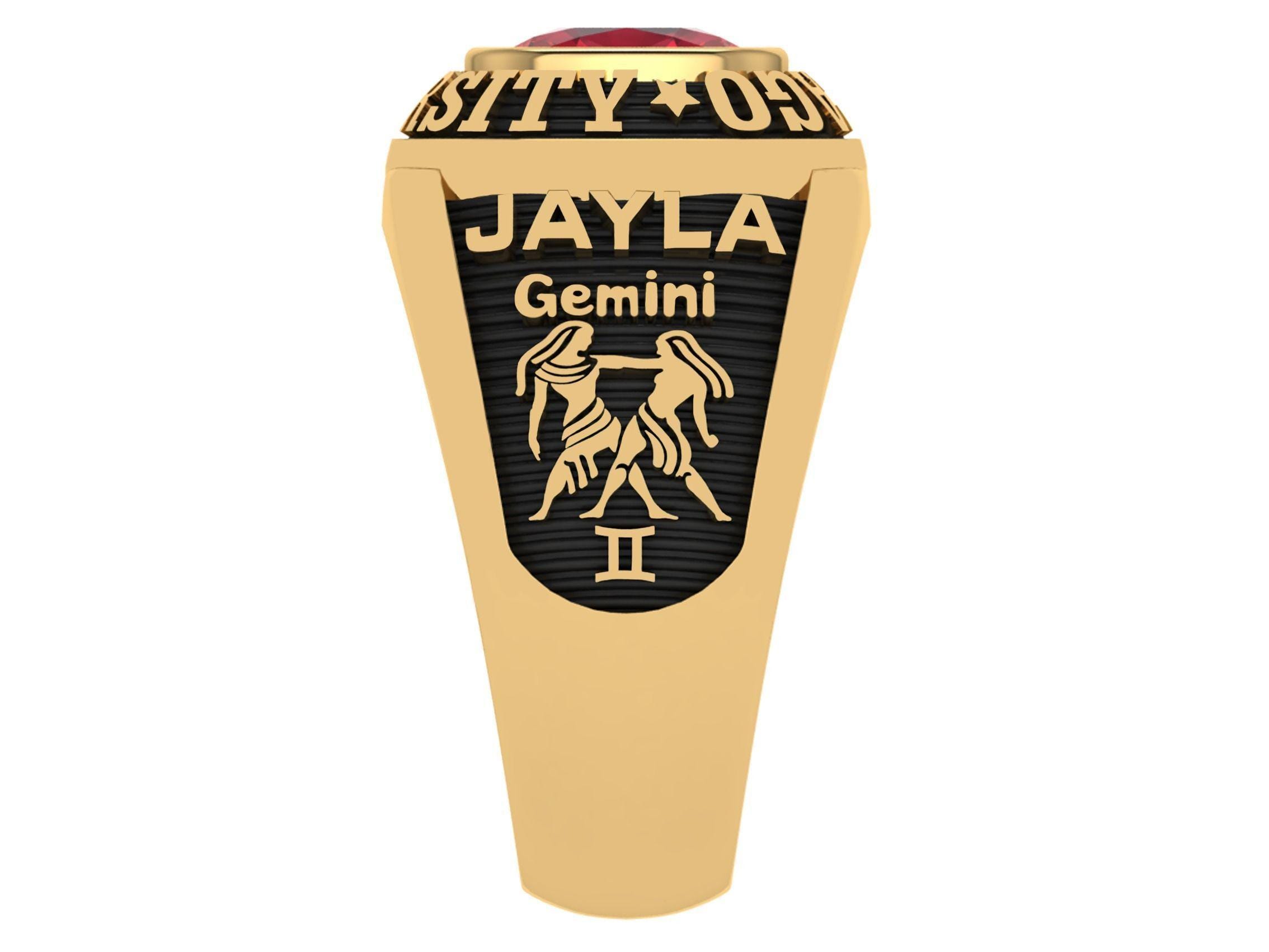 925 Silver Women's Handmade Custom High School Class Ring With Cushion Birthstone, Personalized Graduation Ring with Engraving Inside Band