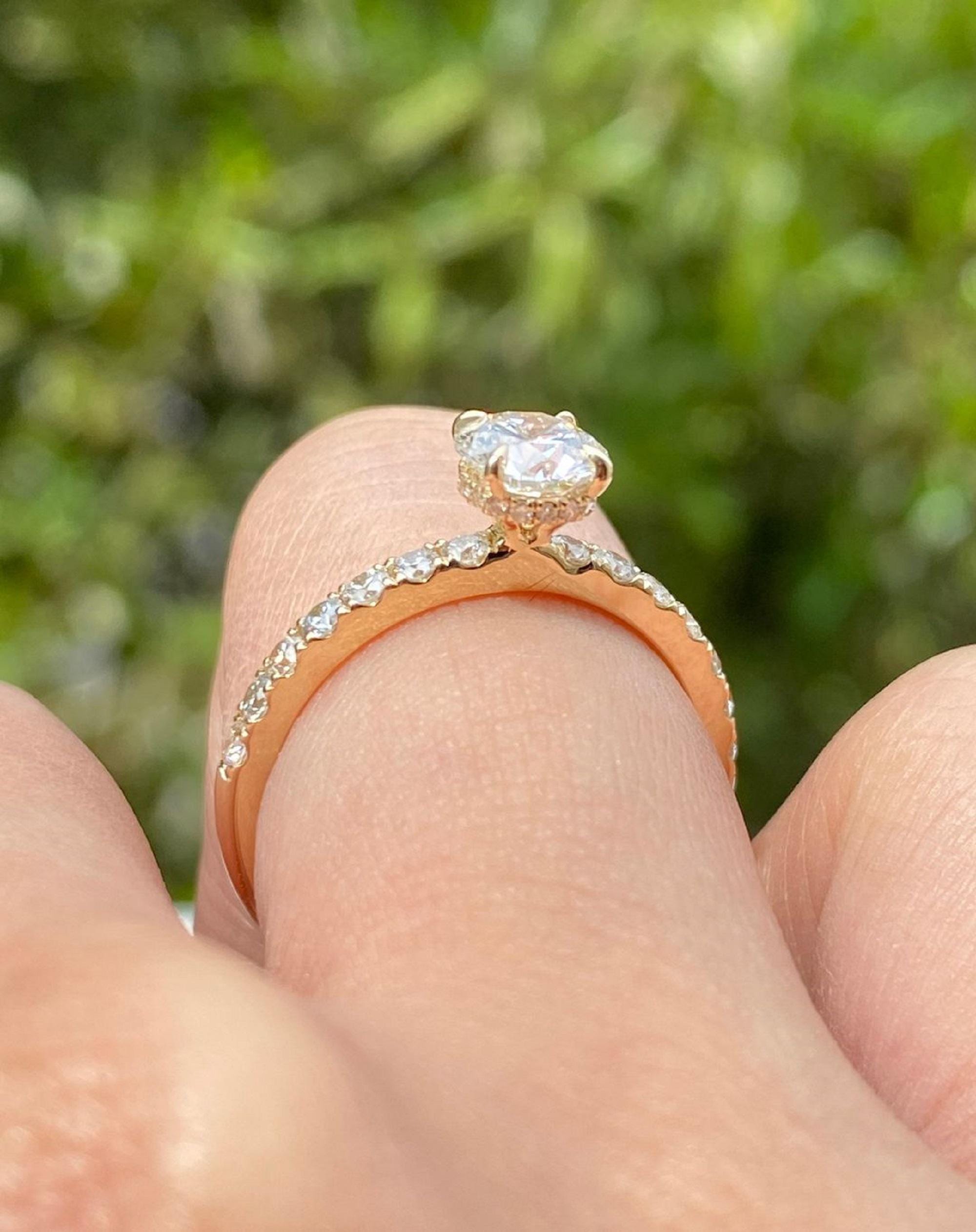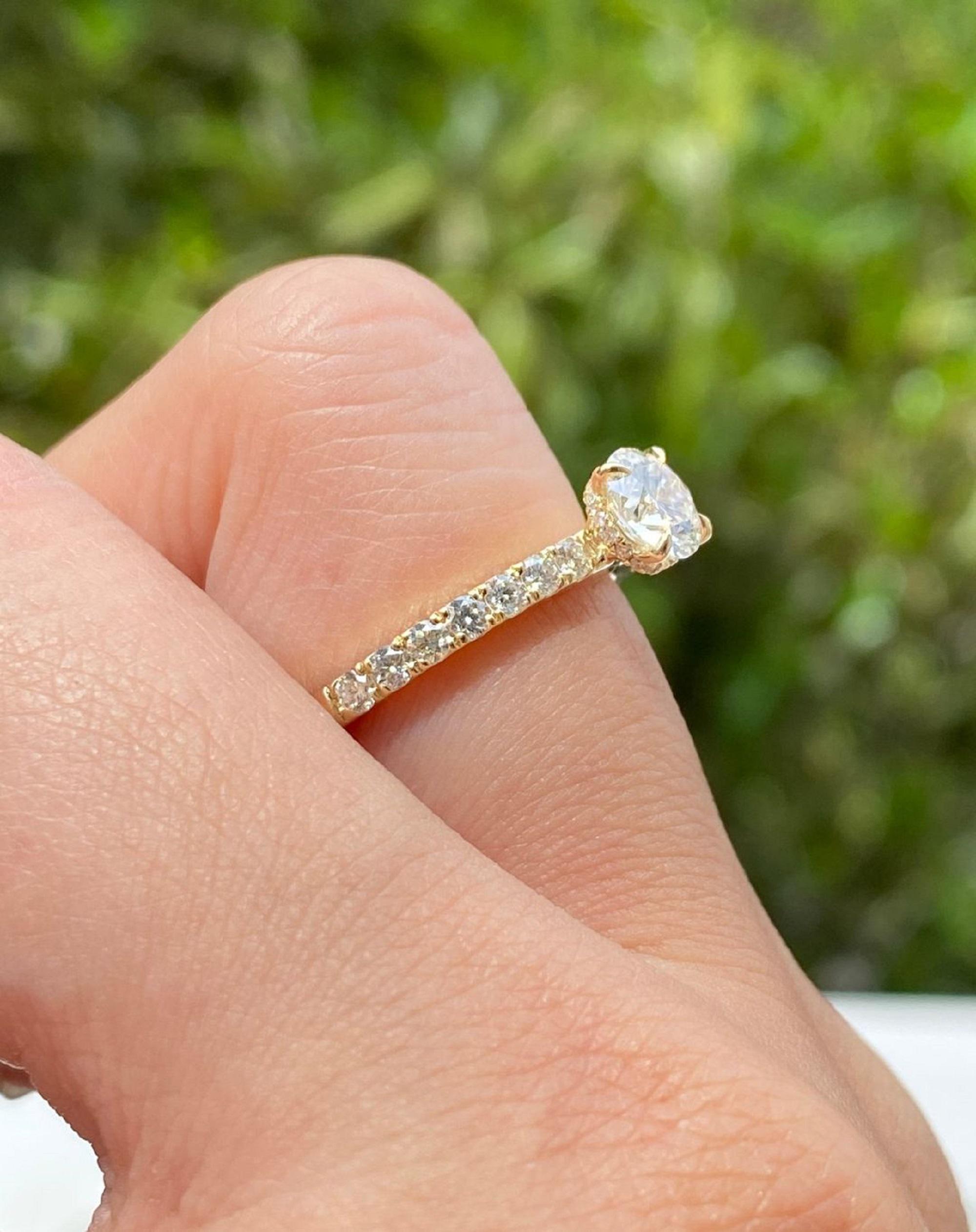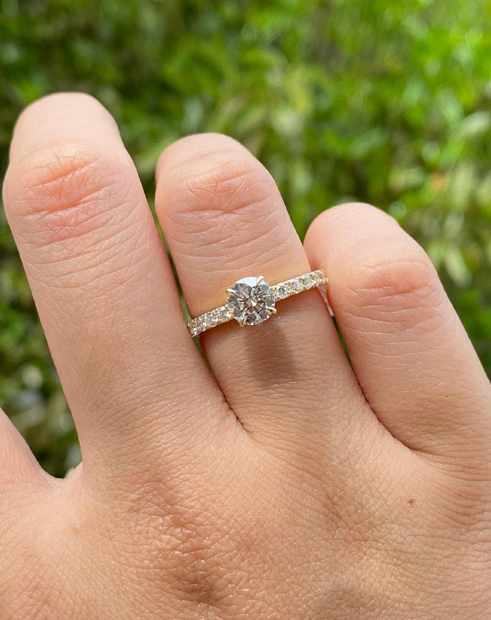 1 Ct Round Cut Solitaire with Accent Engagement Ring, 14k Solid Gold Wedding Ring, Delicate Anniversary Gift Ring, Stackable Ring for Women