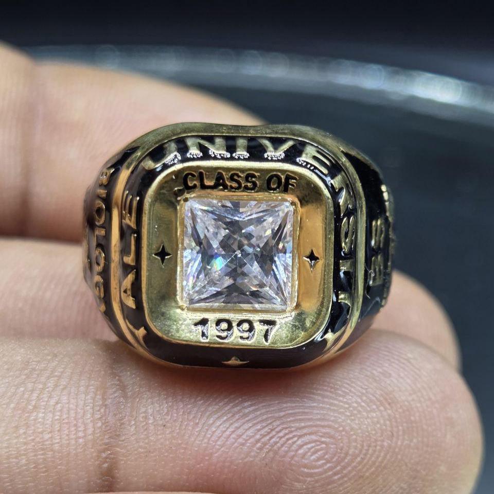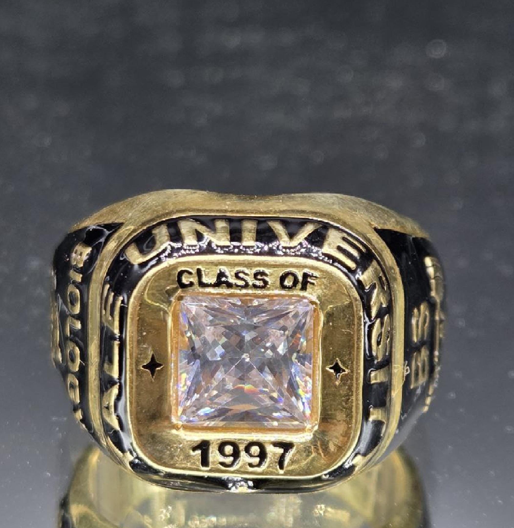 Handmade Custom 925 Sterling Silver College Class Ring 2025 Personalized Graduation Gift for Men and Women with Square Gemstone & Engraving