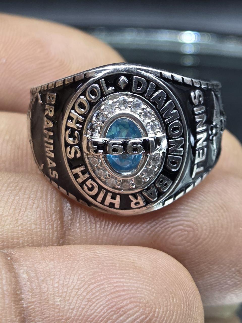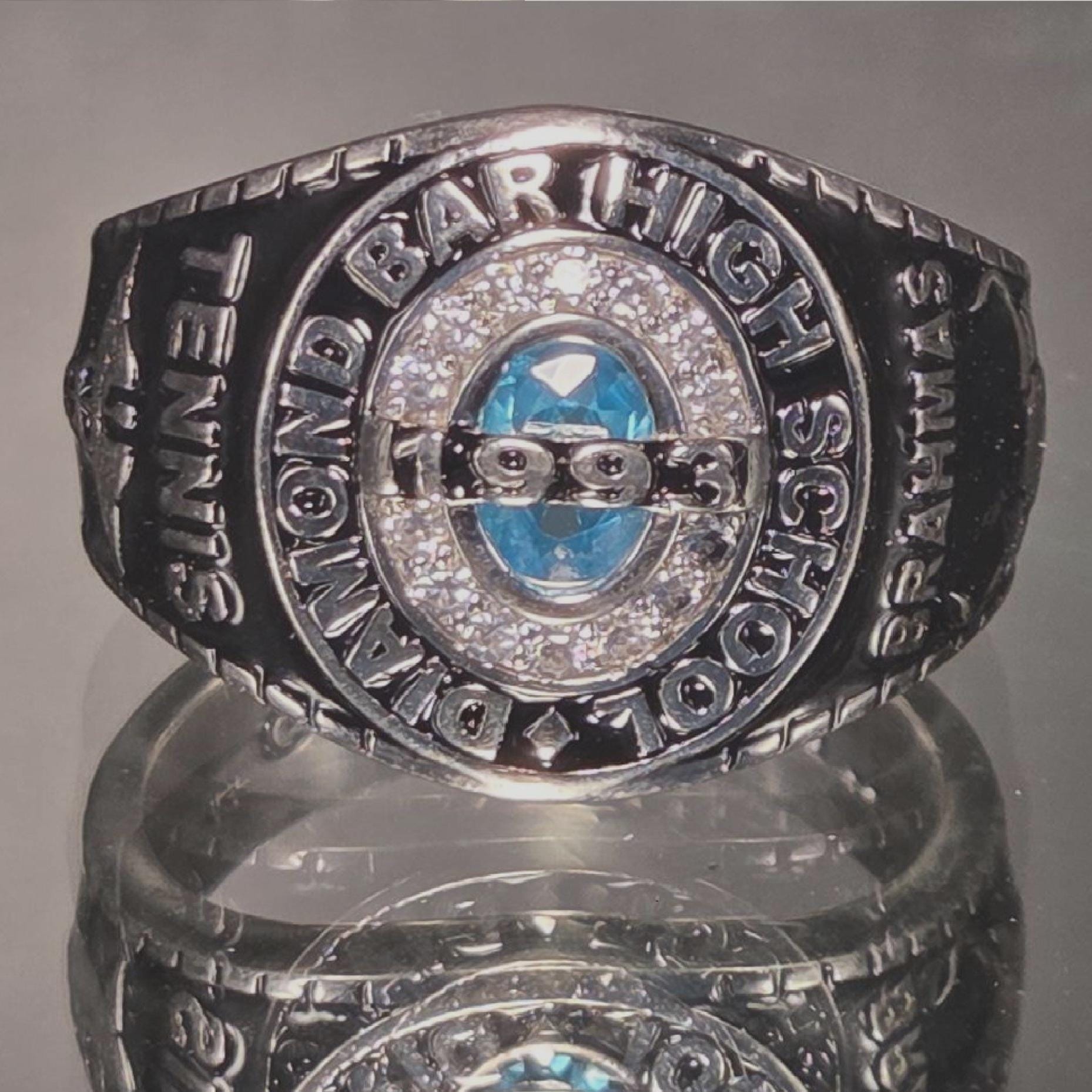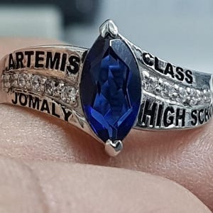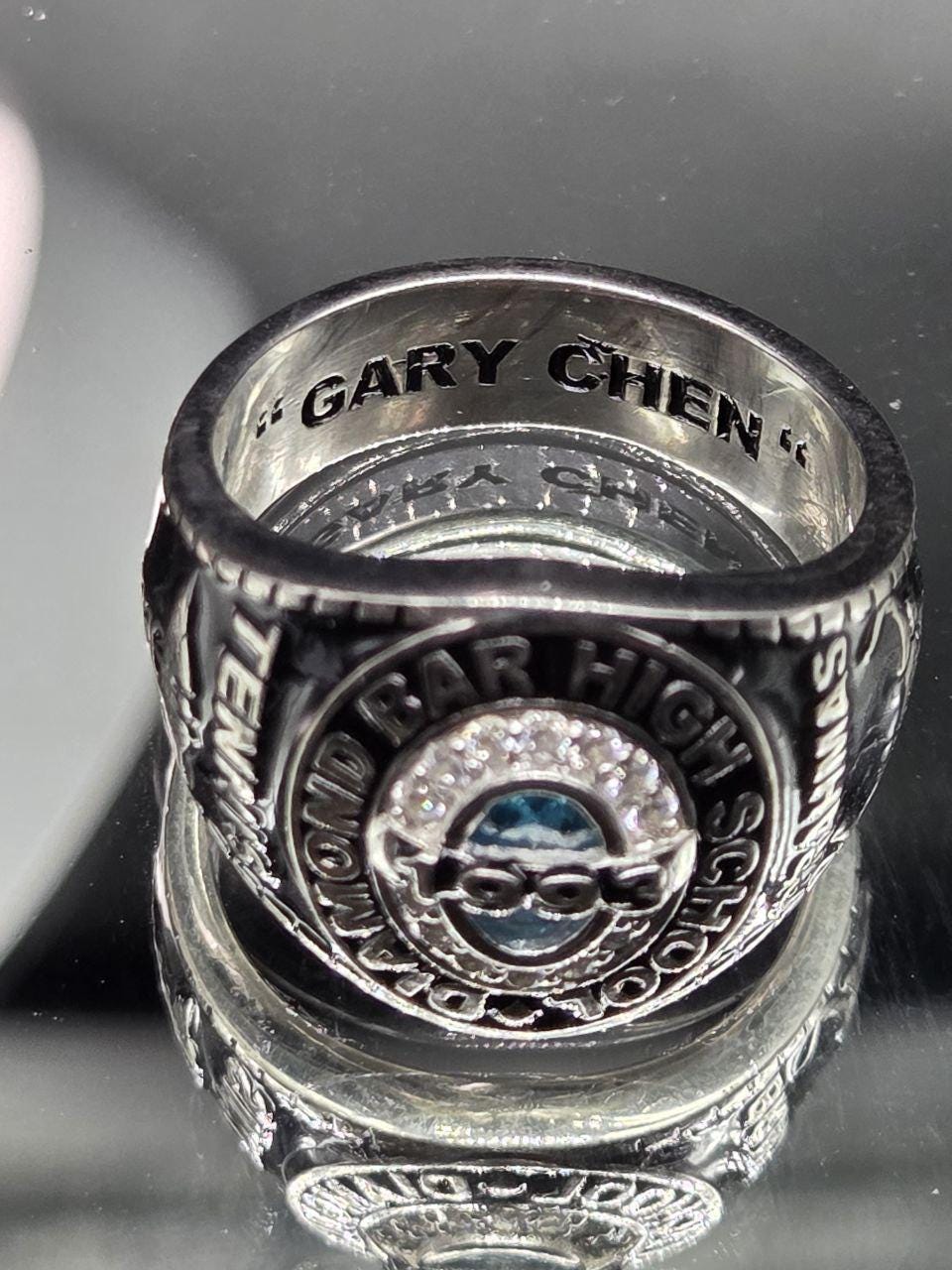 Custom High School College Class Ring for Men Sterling Silver School Ring with Blue Stone Graduation Class of Ring Personalized Signet Ring