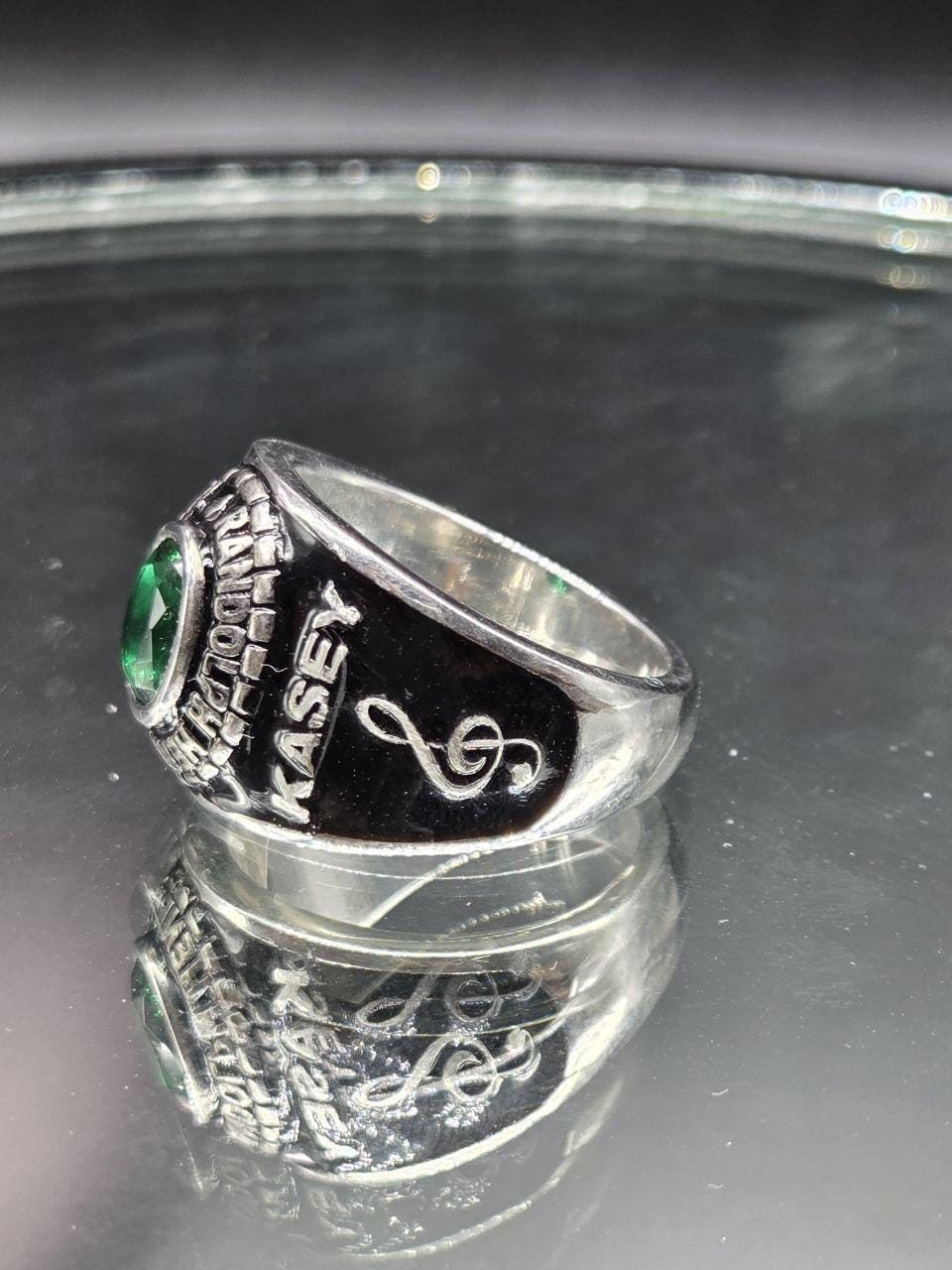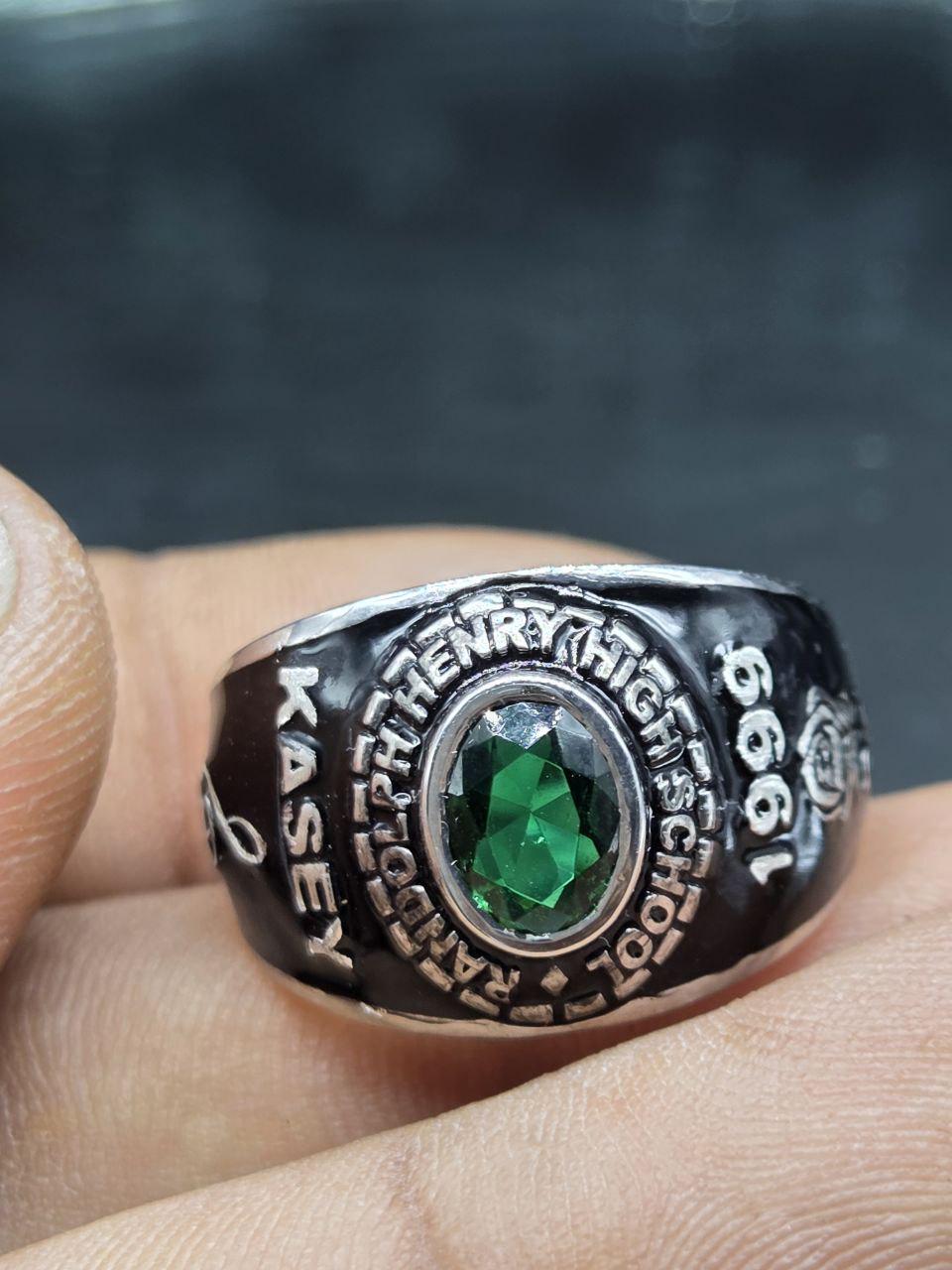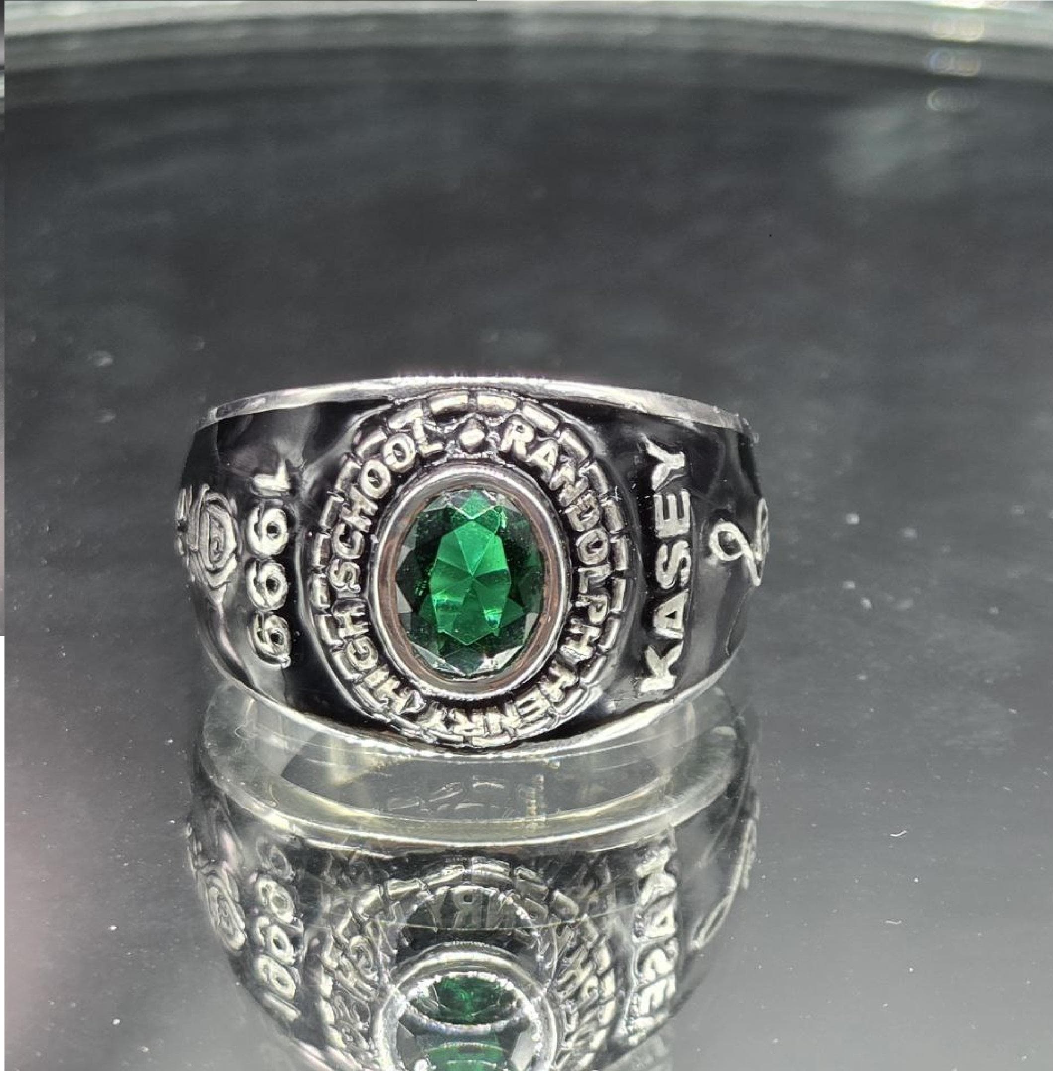 Custom High School College Class Ring for Men Sterling Silver School Ring with Green Stone Graduation Class of Ring Personalized Signet Ring