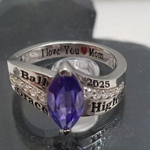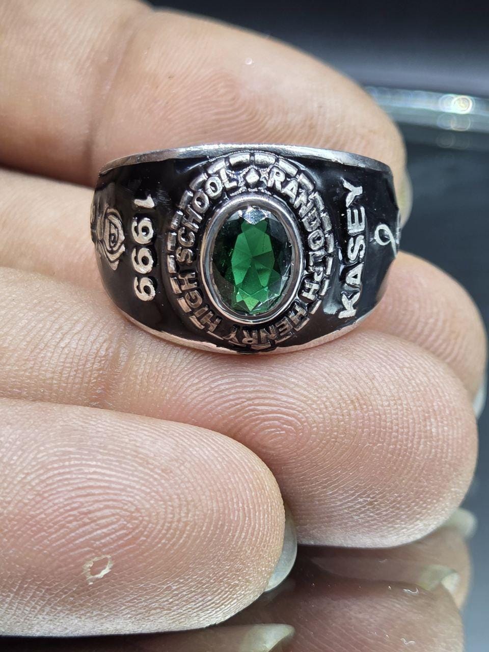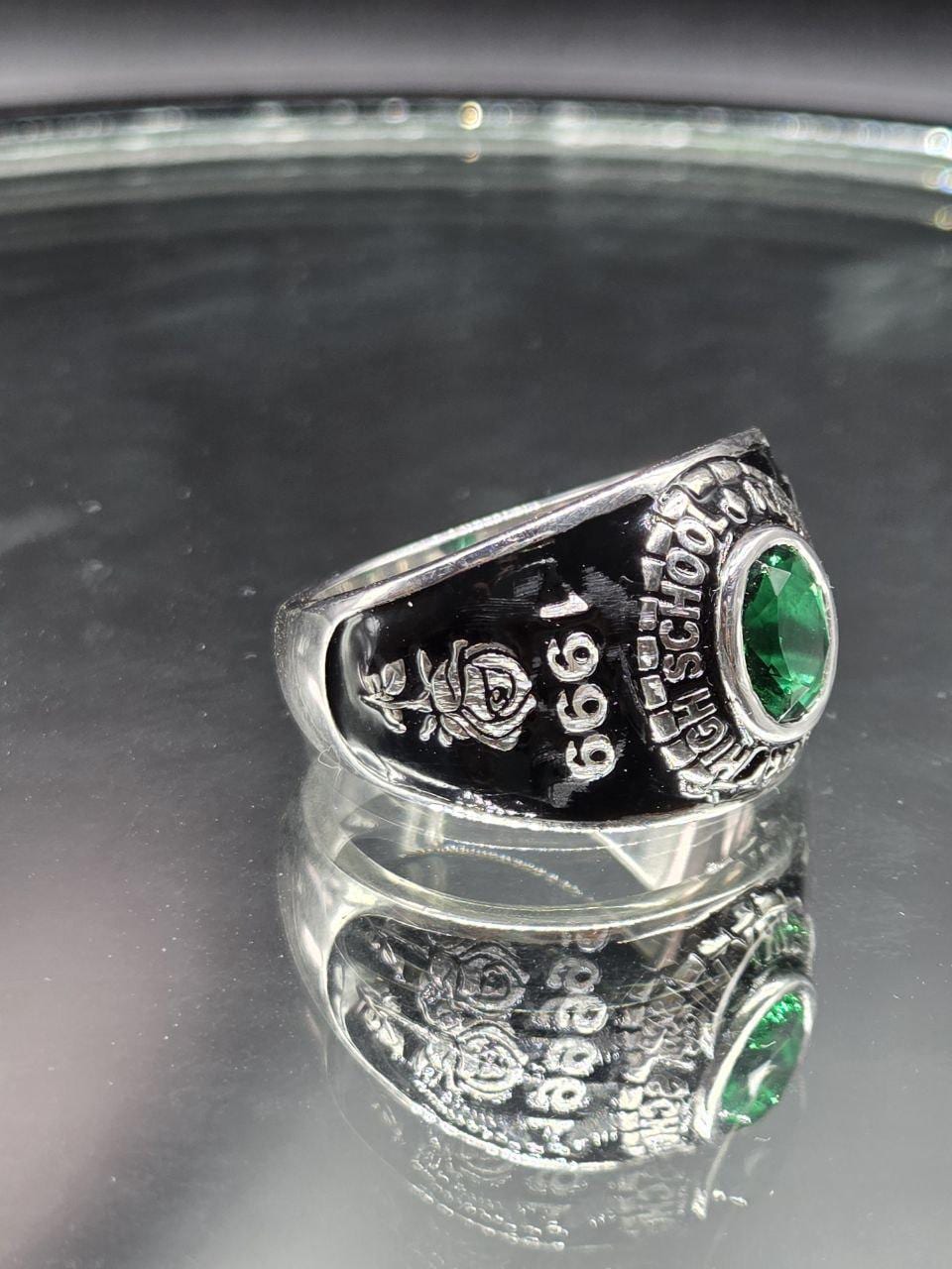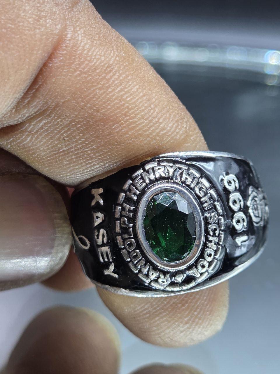 Custom High School College Class Ring for Men Sterling Silver School Ring with Green Stone Graduation Class of Ring Personalized Signet Ring