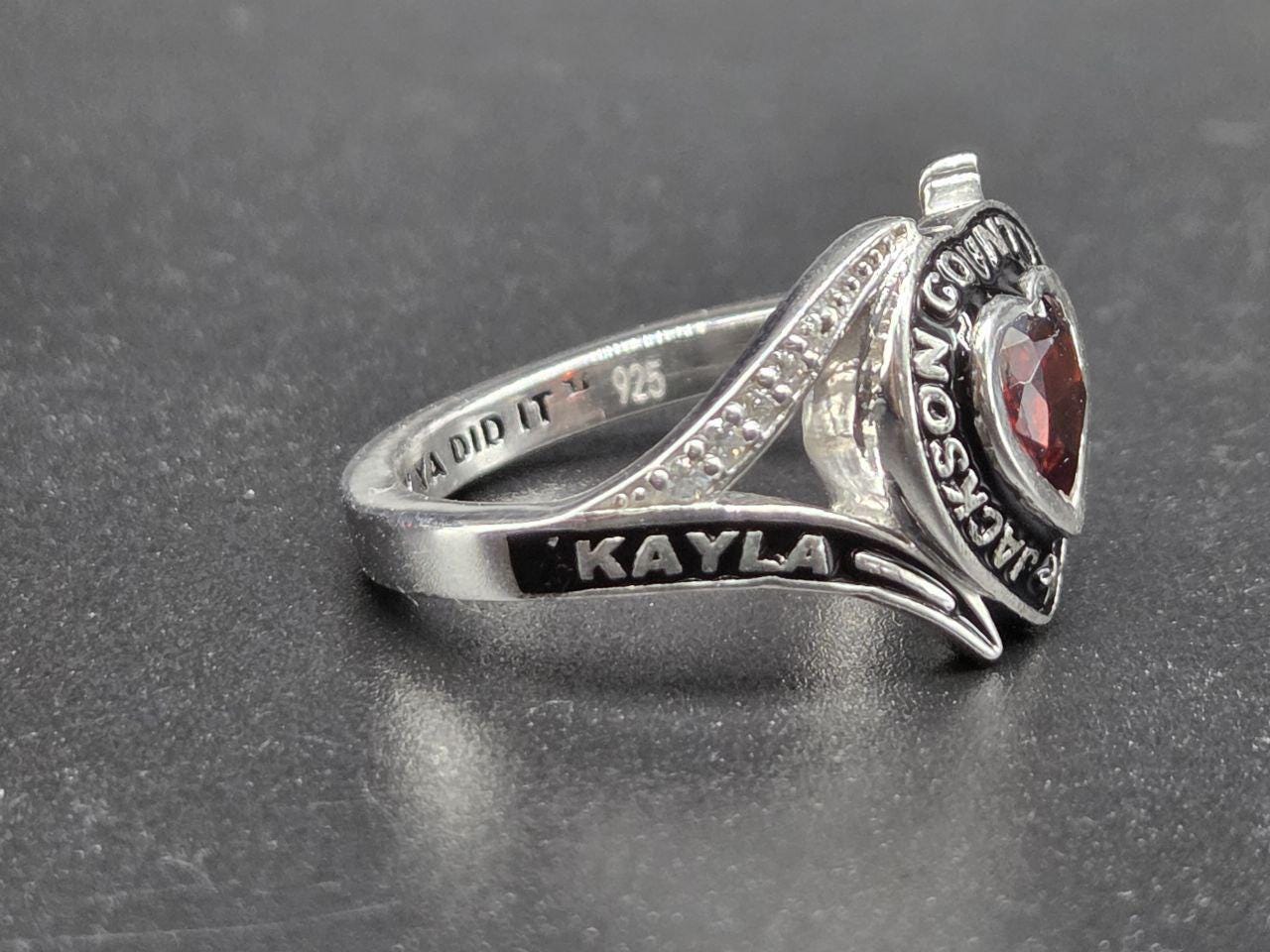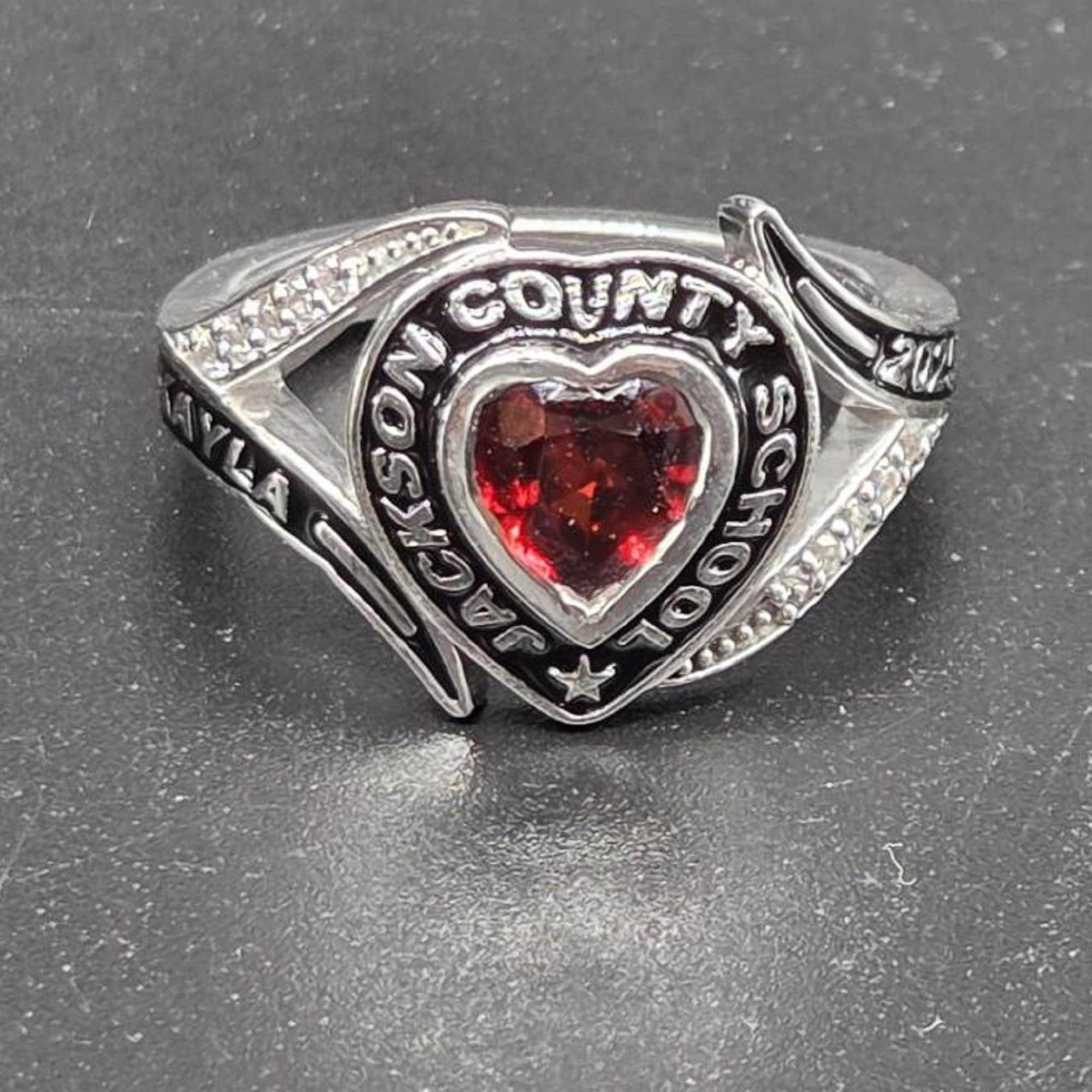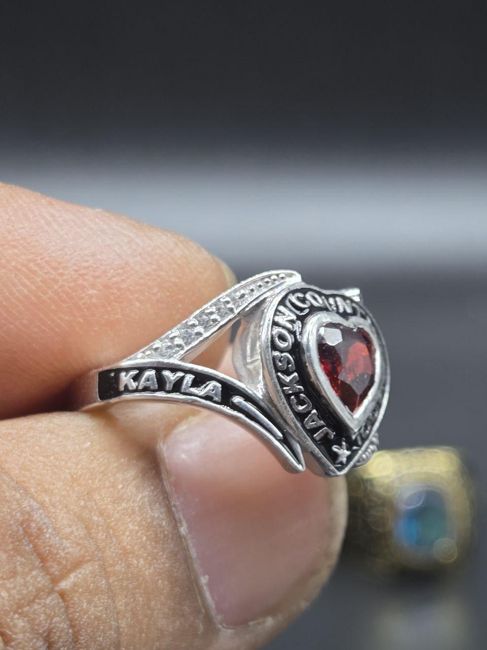 Custom 925 Sterling Silver with Heart BirthStone High School Class Ring Handmade Personalized Women's Graduation Ring Gift for her