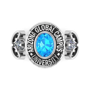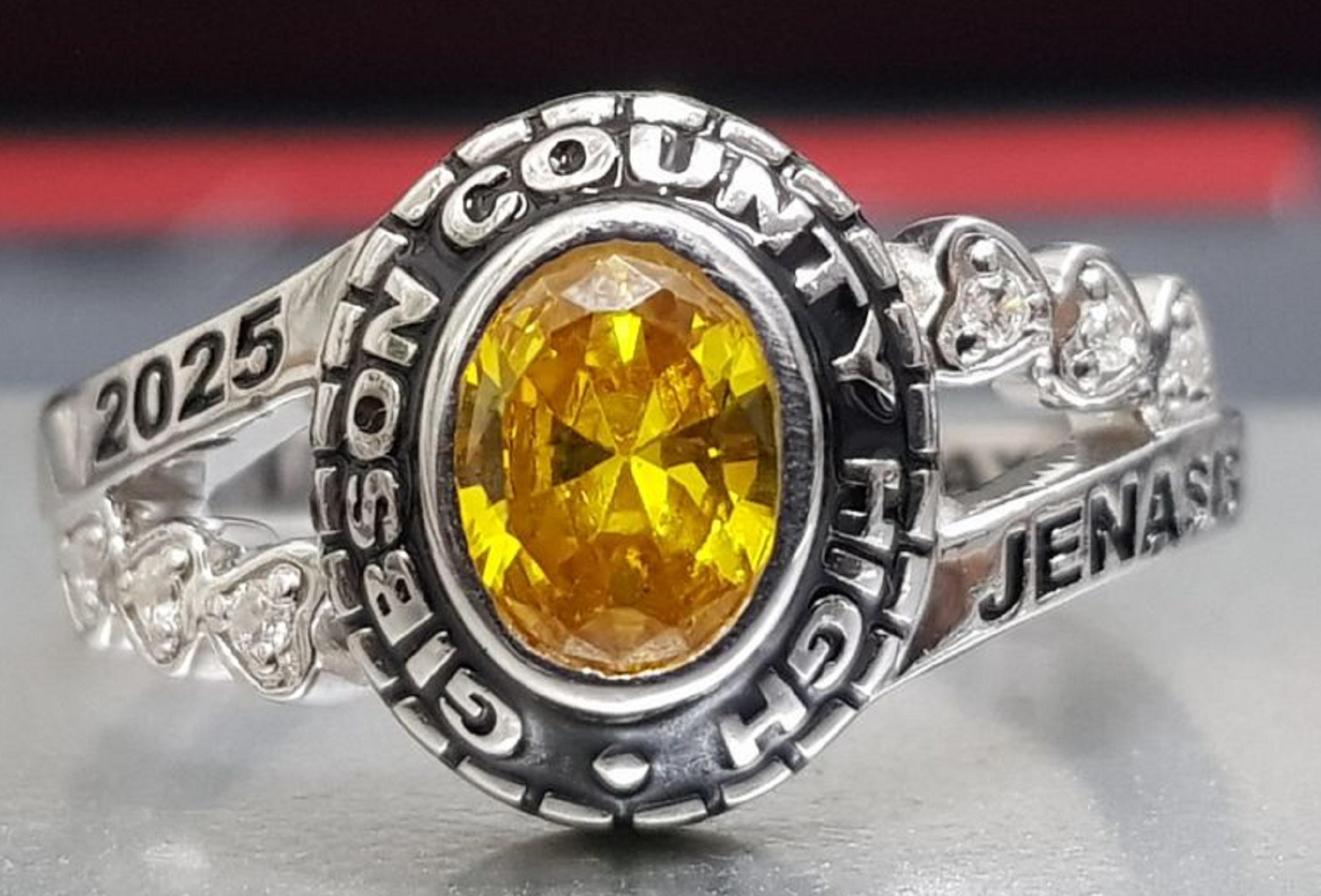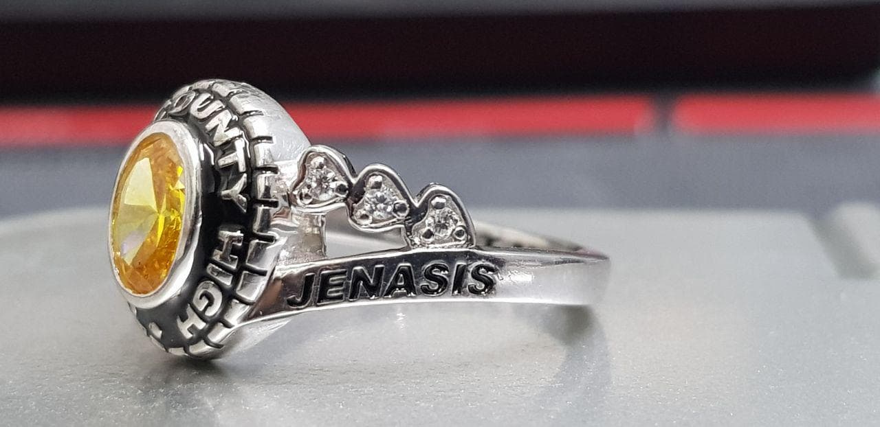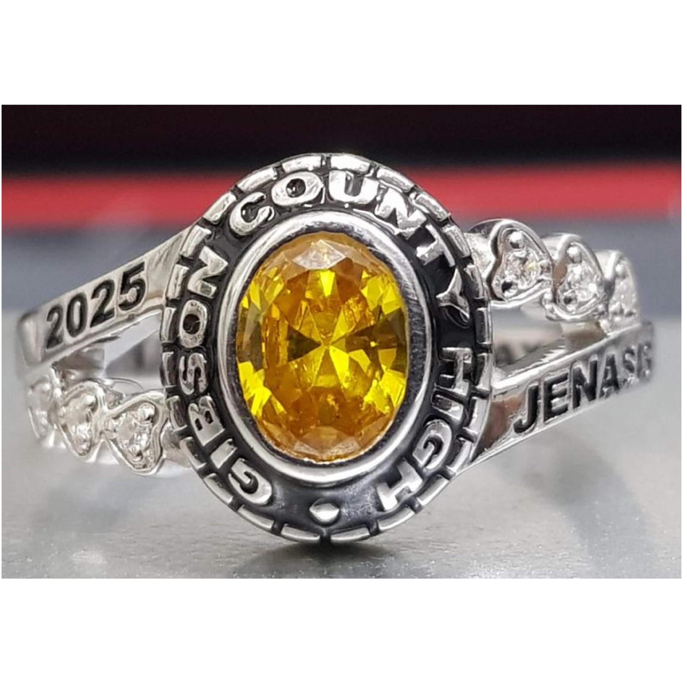 Women's 925 Silver Custom High School Class Ring 2025 Oval Custom Gemstone, School Name & Engraving Handmade Heart Band Graduation Ring