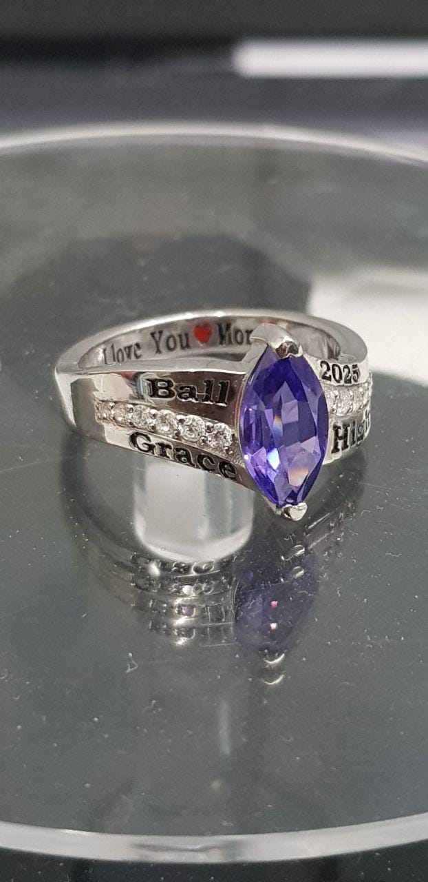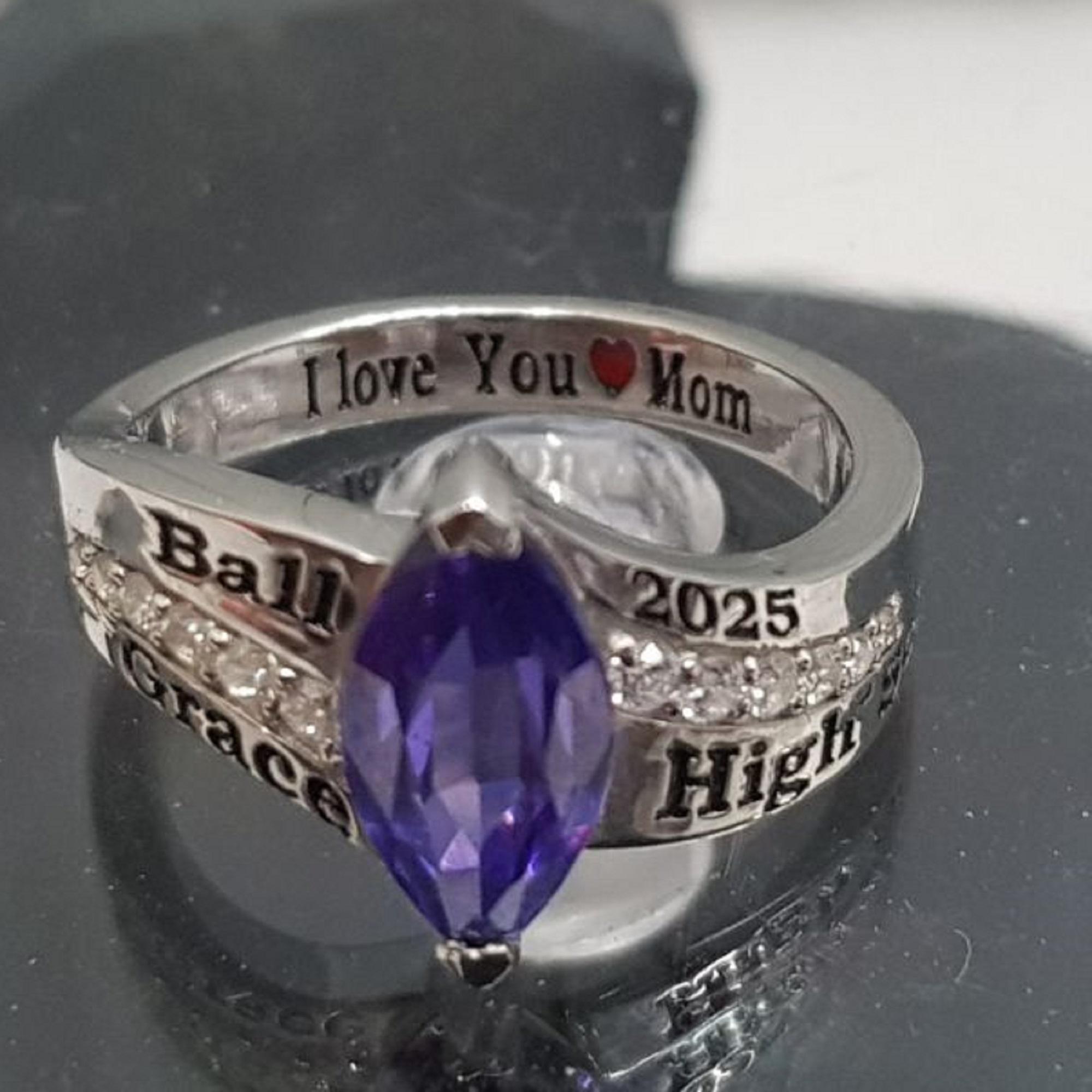 Womenโ€™s Custom 925 Sterling Silver Marquise Birthstone High School Class Ring Handmade Personalized Graduation Gift