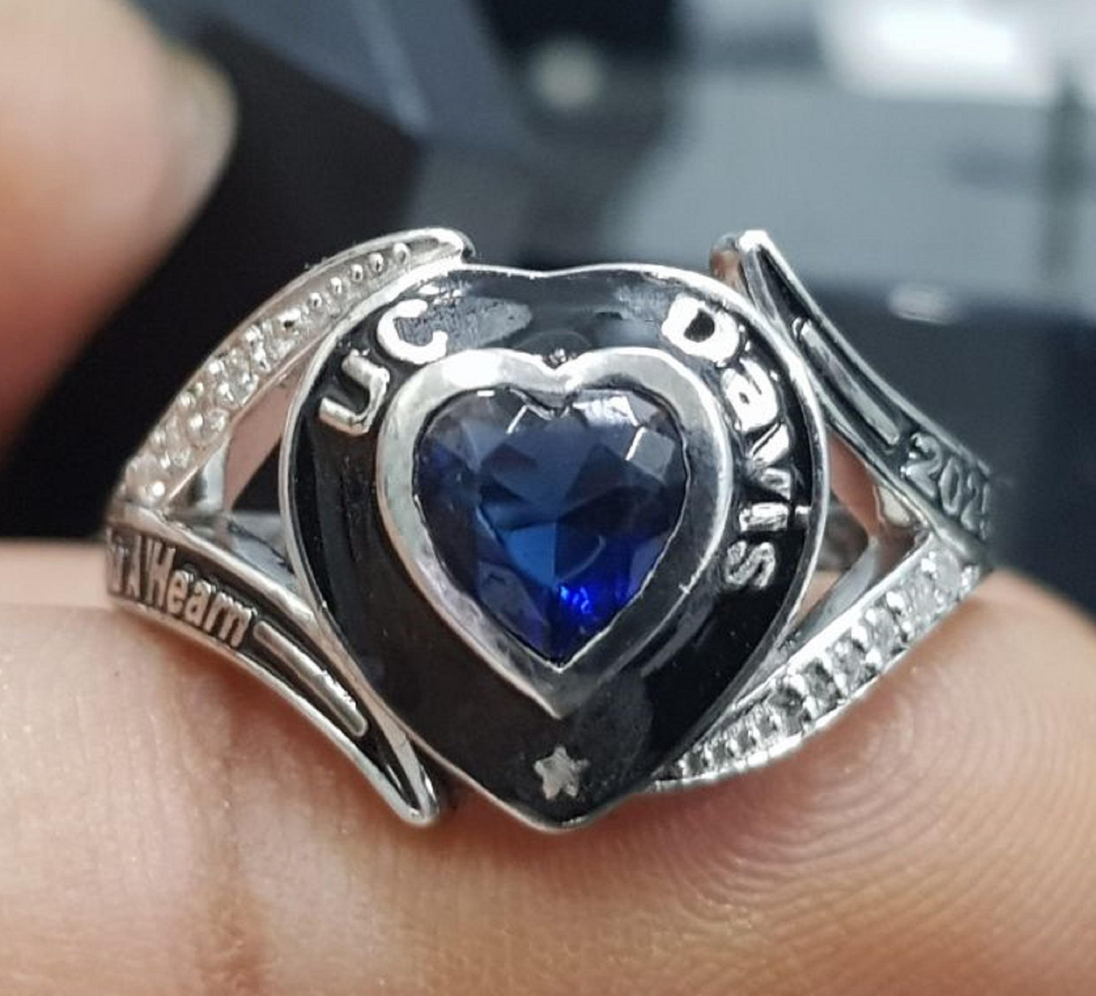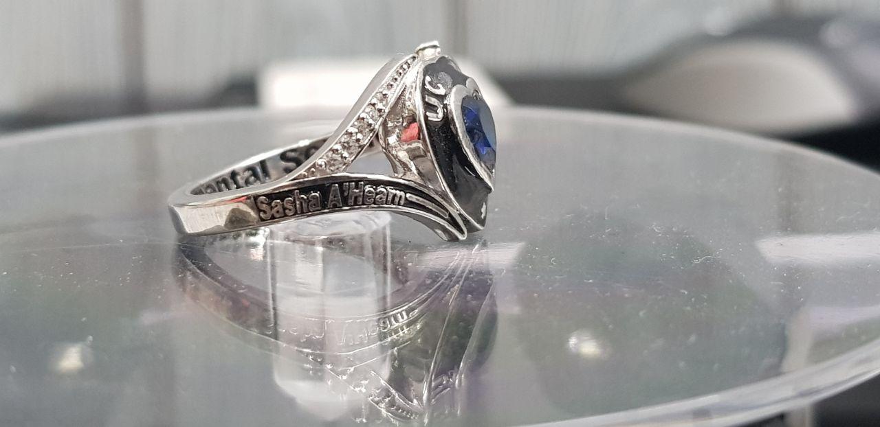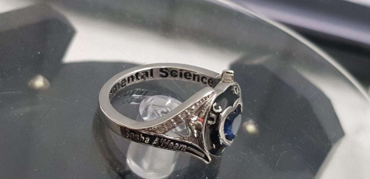 Womenโ€™s College High School Class Ring 925 Sterling Silver with Heart Gemstone & Custom Engraving Handmade Unique Band Graduation Ring