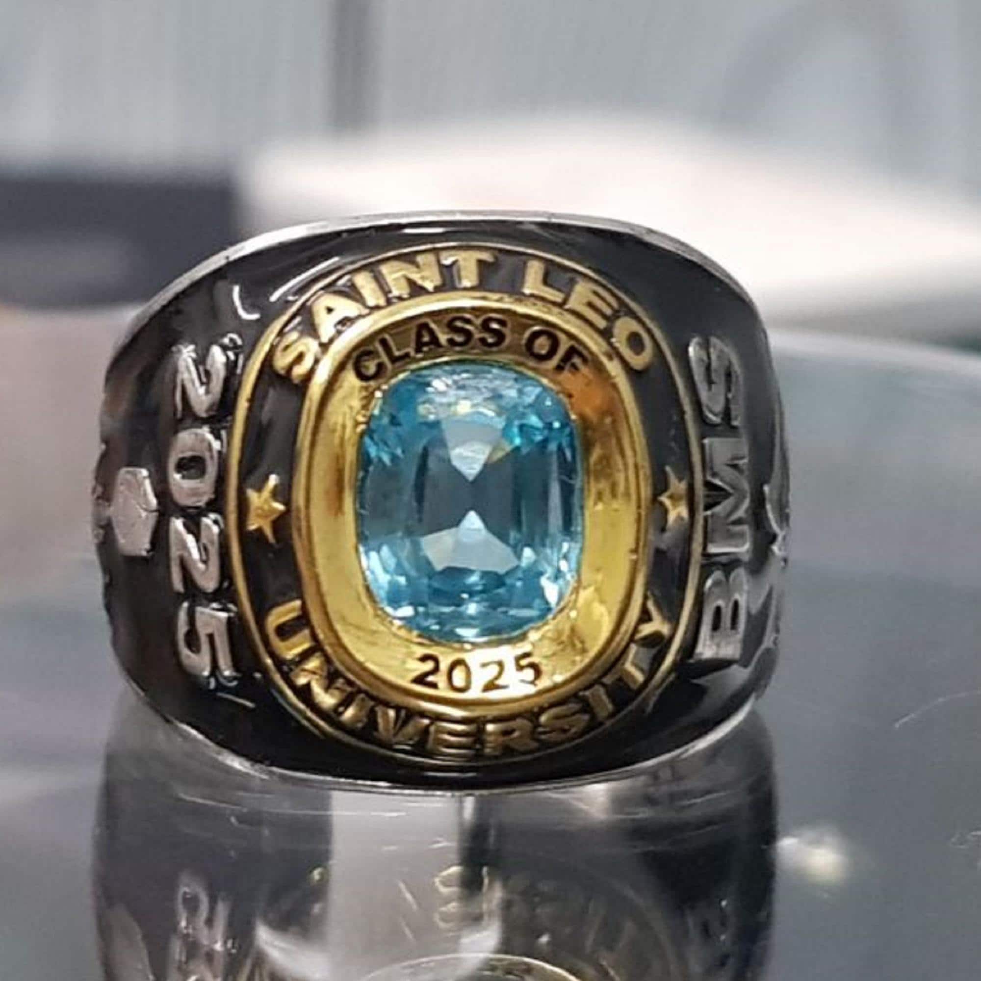 Handmade Custom 925 Sterling Silver College Class Ring 2026 Personalized Graduation Gift for Men Women with Cushion Gemstone