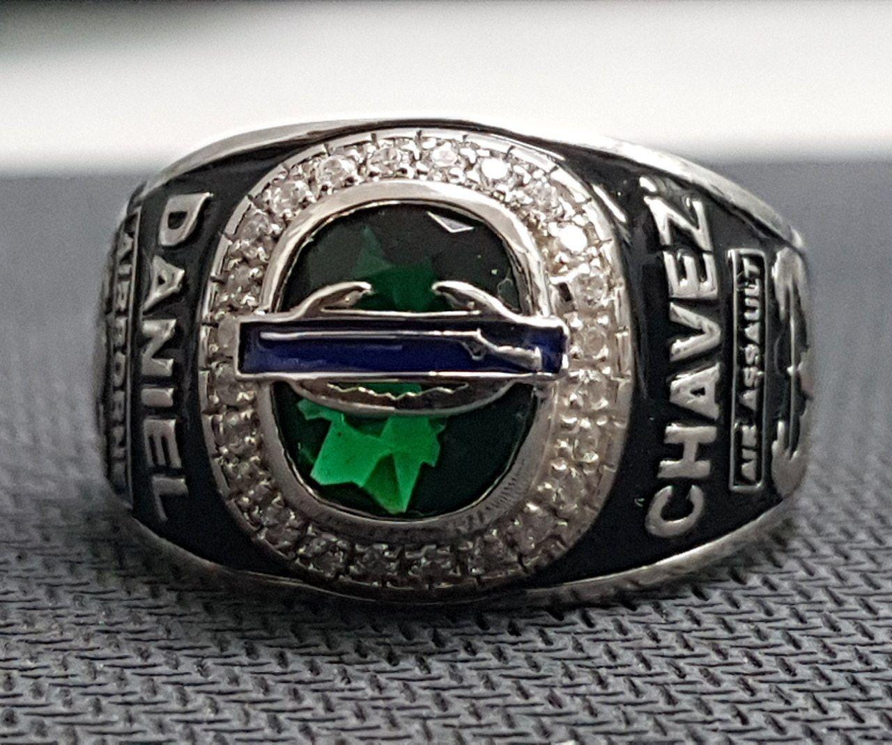 Custom High School College Class Ring for Men Sterling Silver School Ring Emerald Stone Graduation Class of Ring Personalized Signet Ring