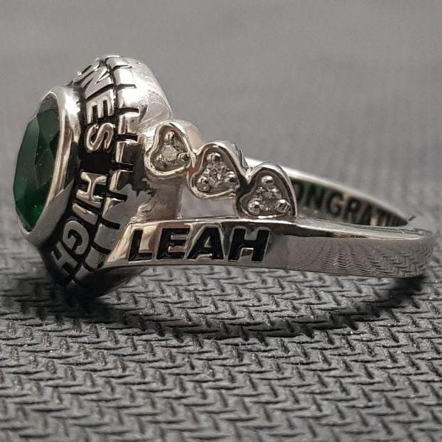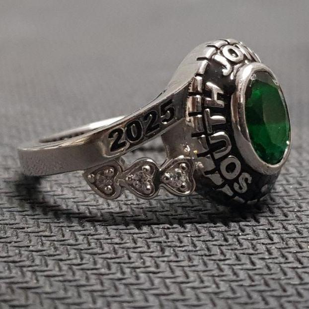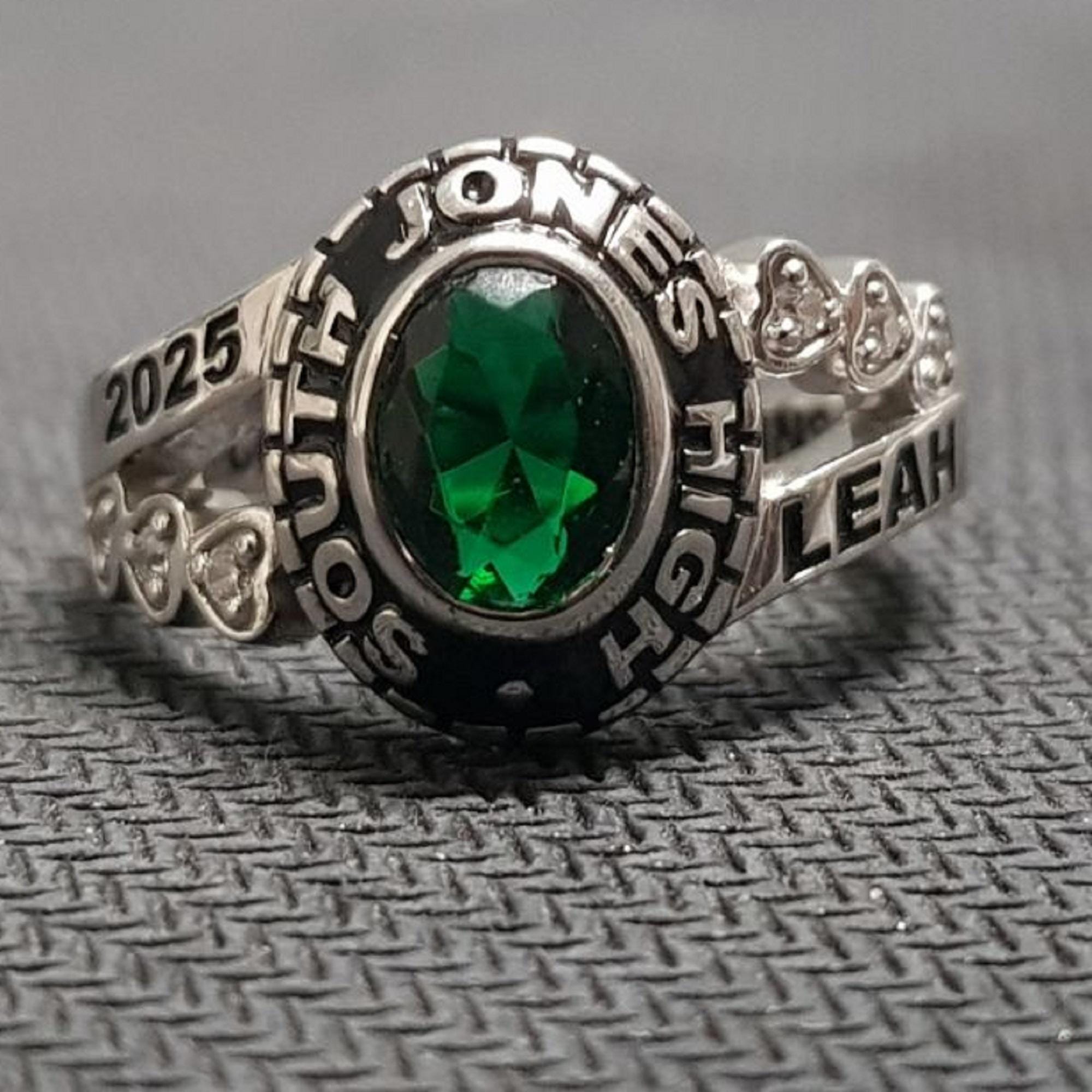 2025 High School Class Ring 925 Sterling Silver, Green Gemstone College Graduation Ring, Personalized University Senior School Ring Gift