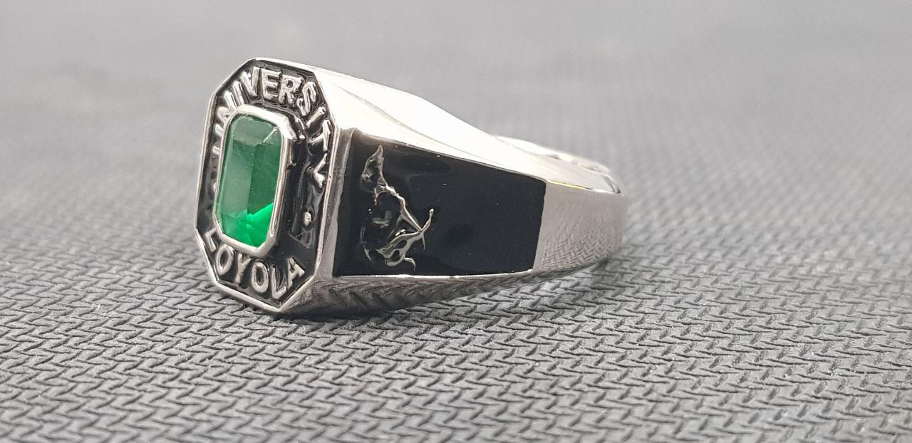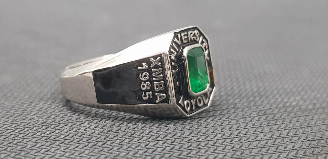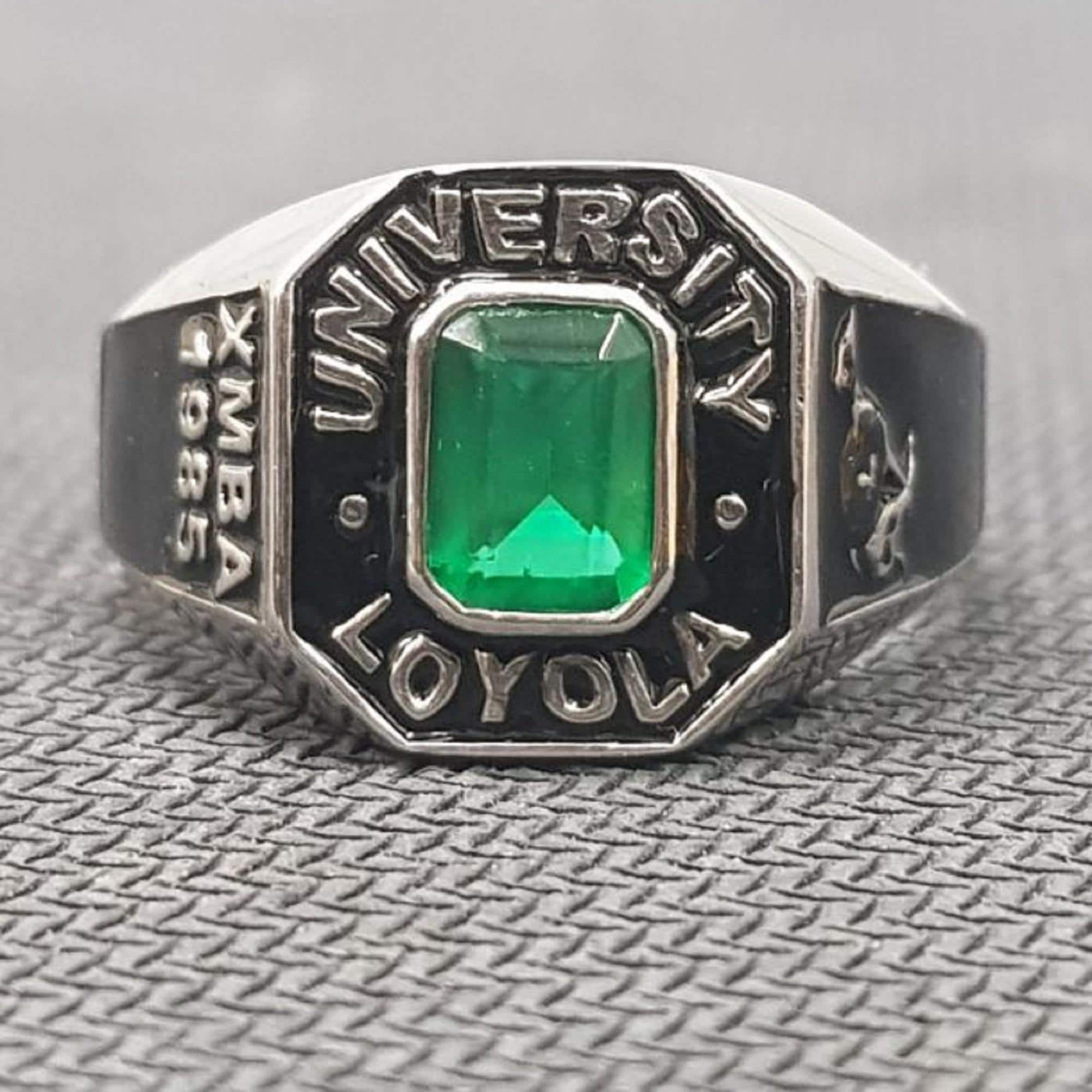 University of Loyola Class Ring 1985 Vintage Sterling Silver Graduation Ring with Green Gemstone College Alumni Signet Ring
