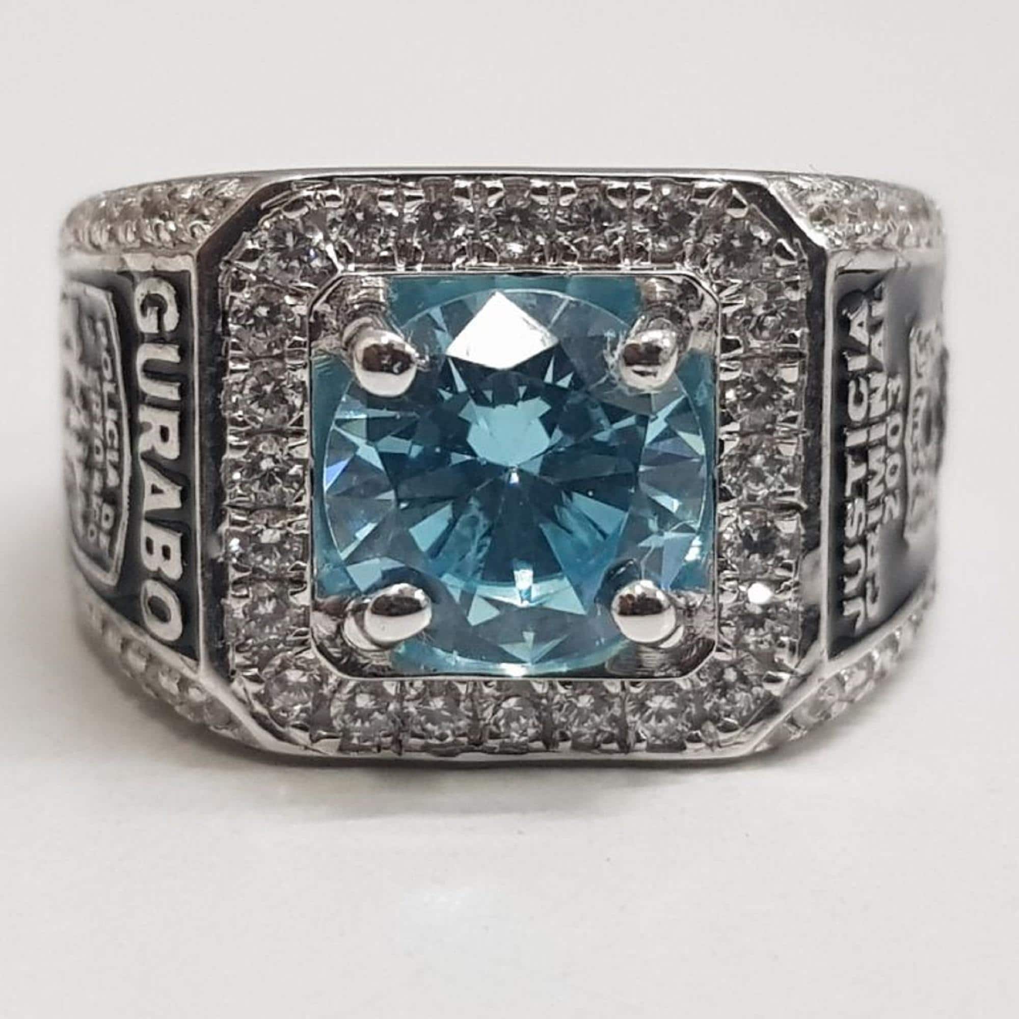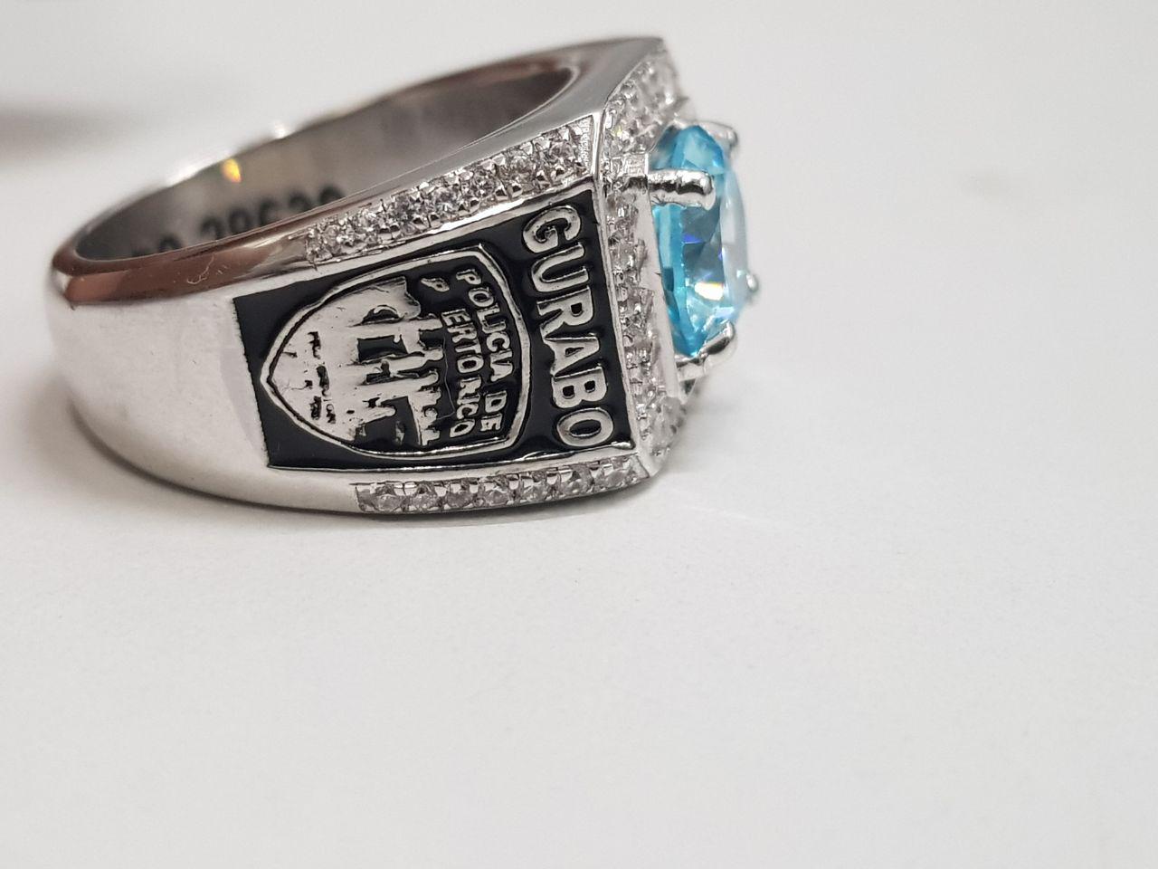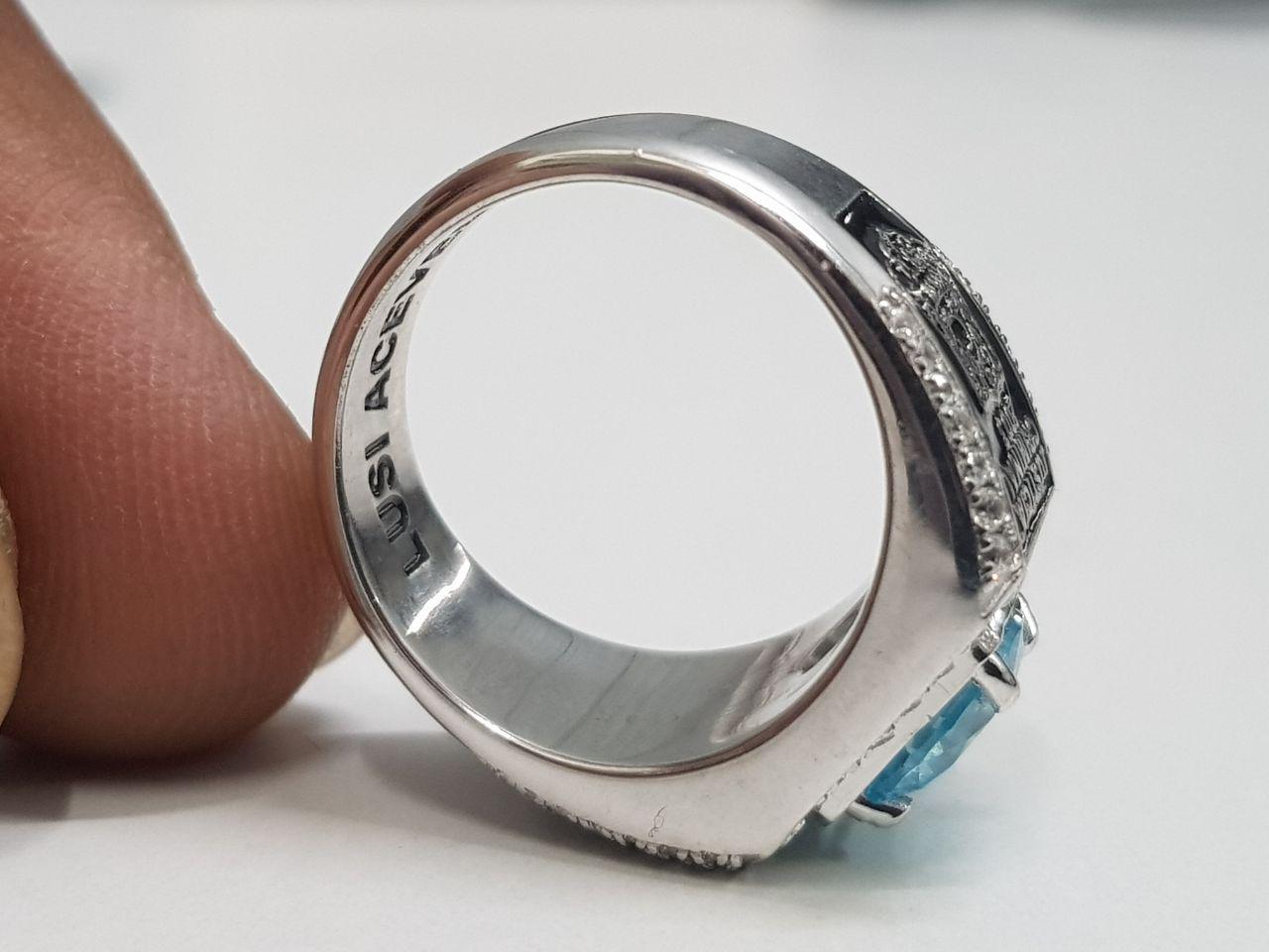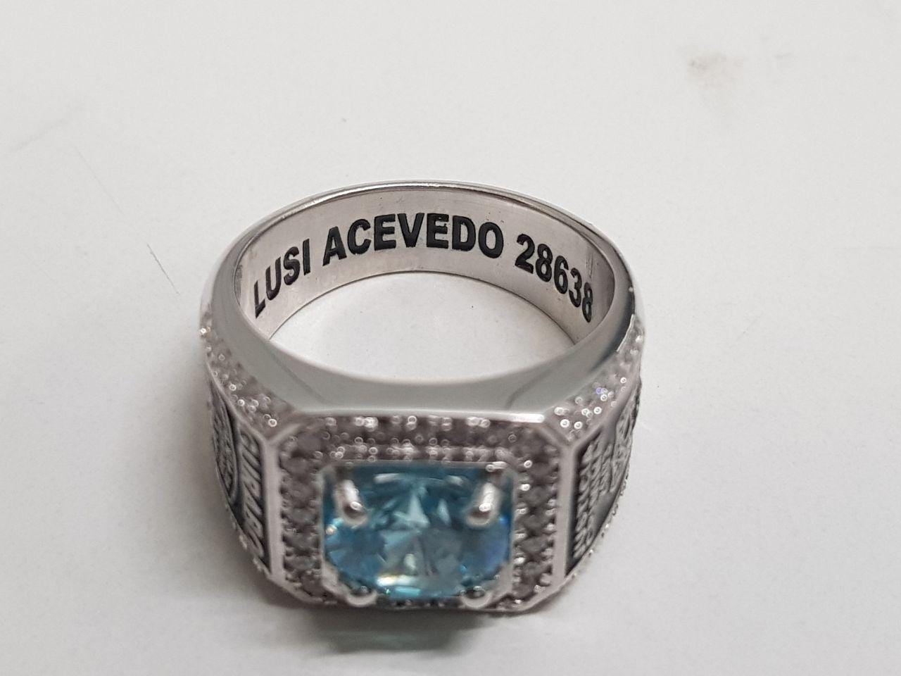 High School Class Ring Silver, Graduation College Alumni Ring with Blue Gemstone, Custom School Signet Ring for Men Women