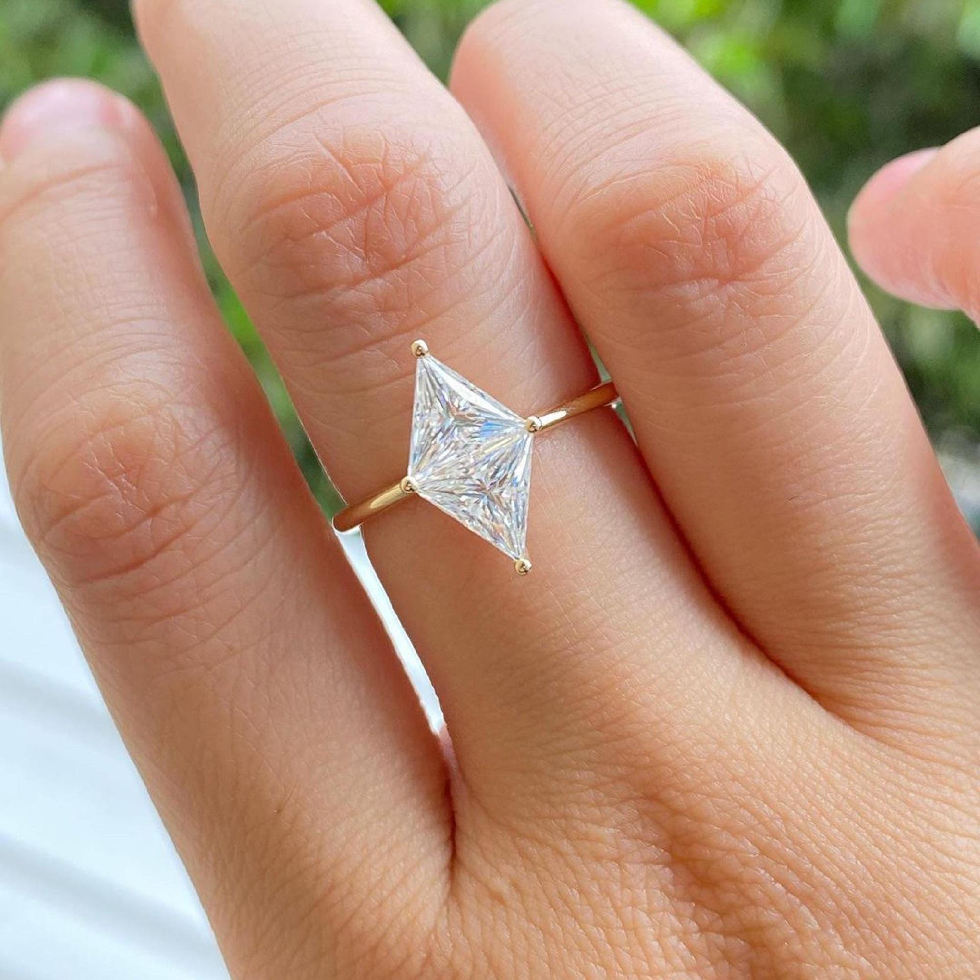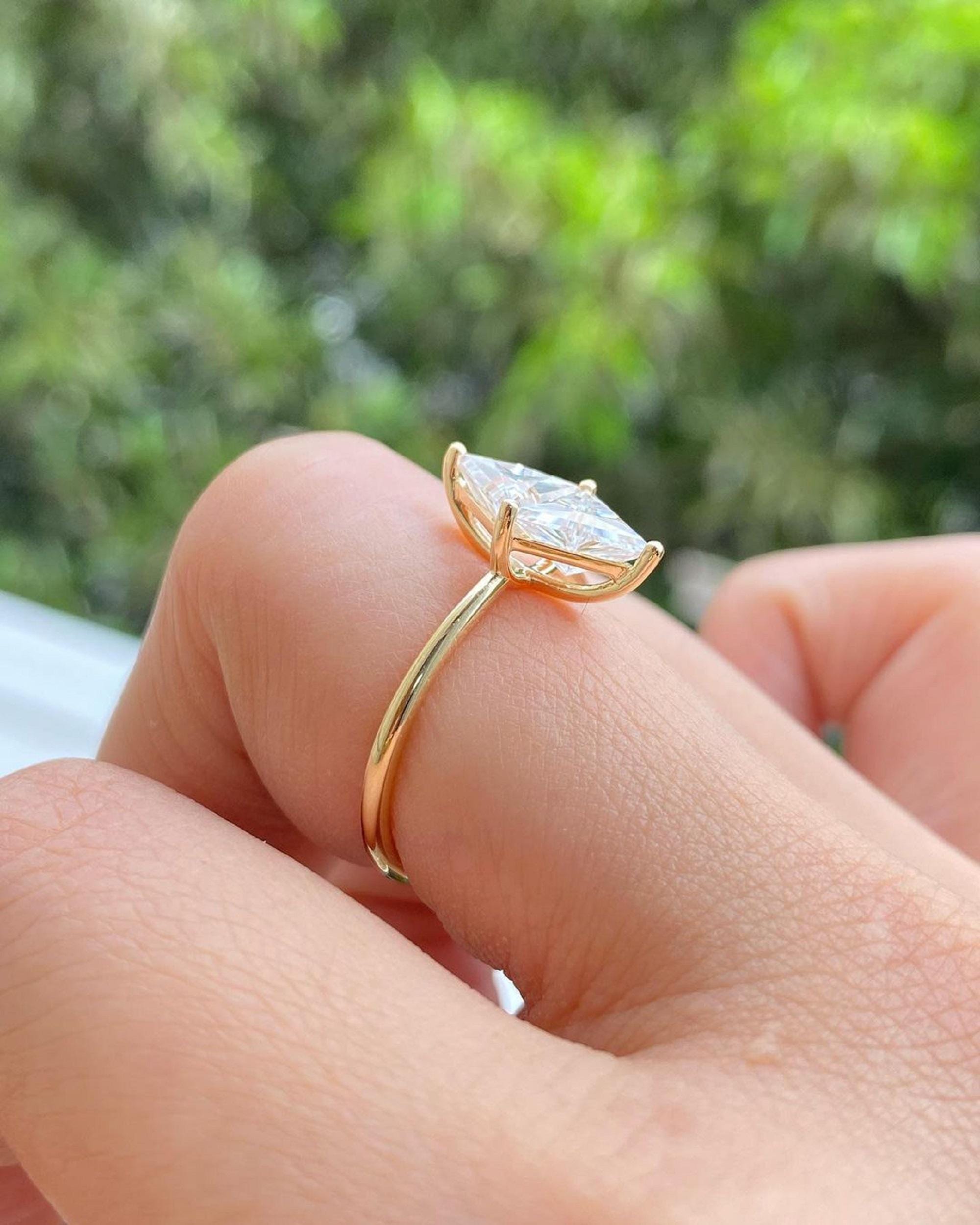 2CT Trilliant Cut Moissanite Engagement Ring, Unique Geometric Solitaire Ring, Minimalist Solid Gold 10K 14K 18K Handmade Bridal Jewelry