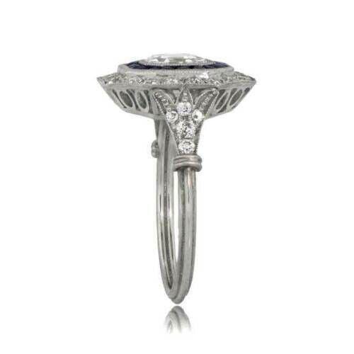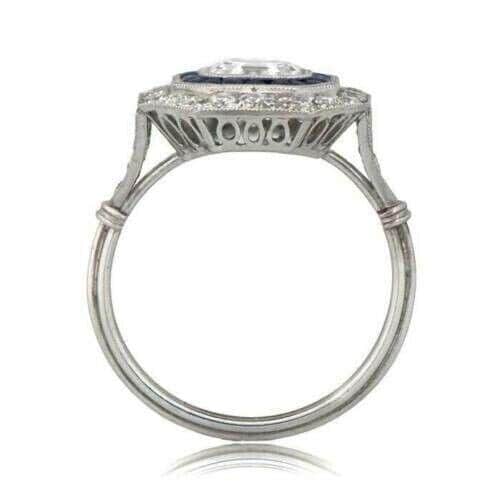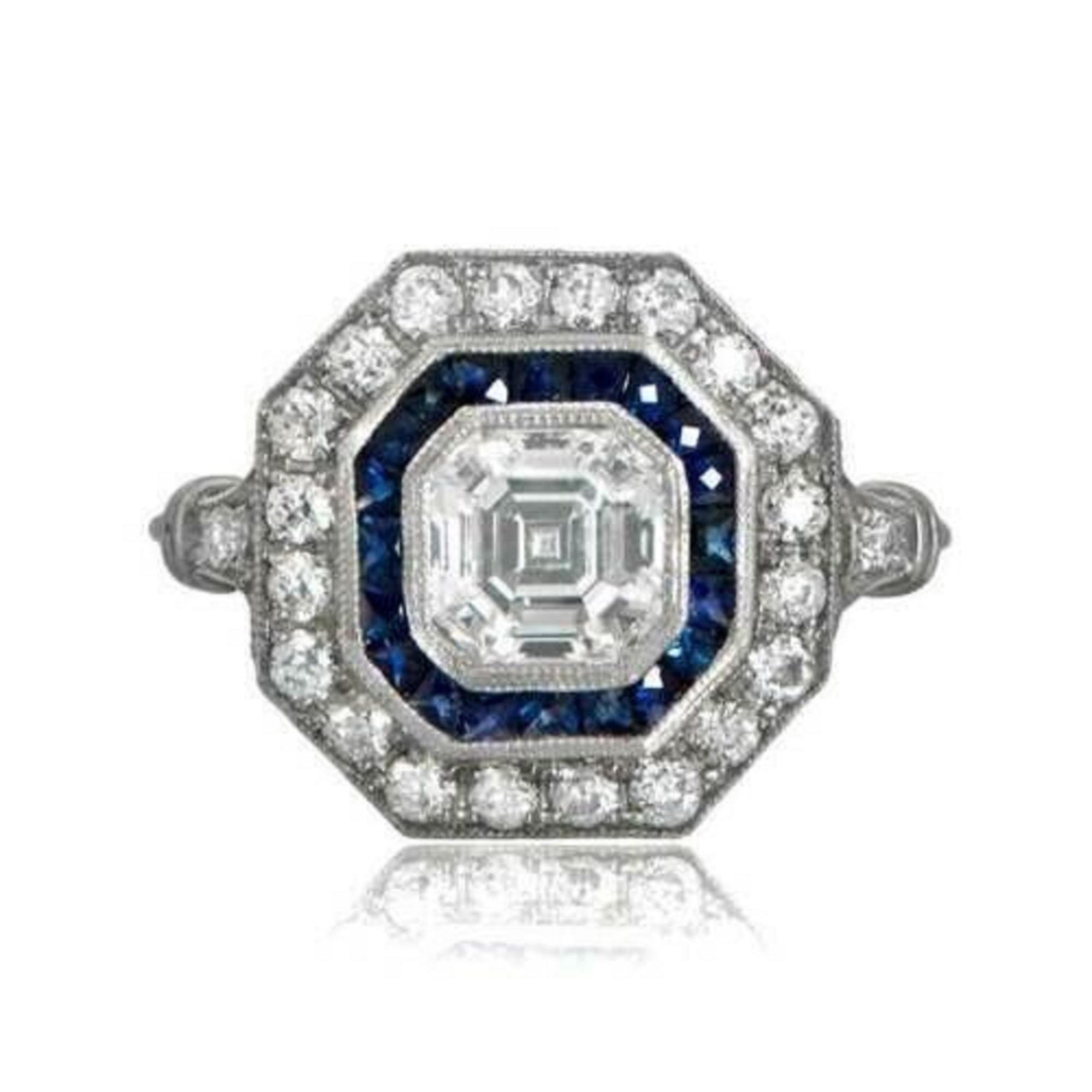 1CT Art Deco Asscher Cut Engagement Ring Blue Sapphire Halo Ring Octagon Halo Diamond Ring Vintage Style Bridal Ring White Gold Promise Ring