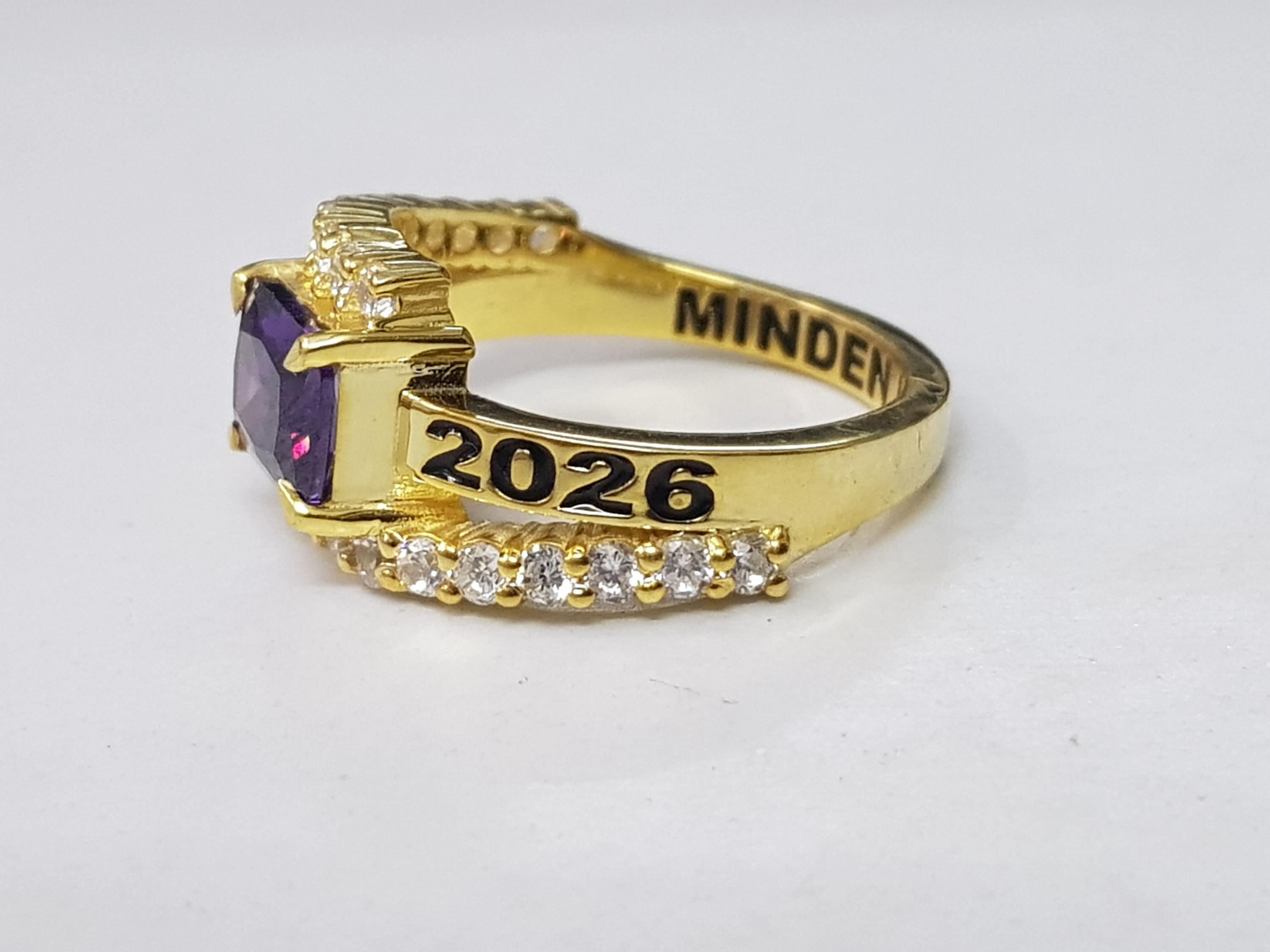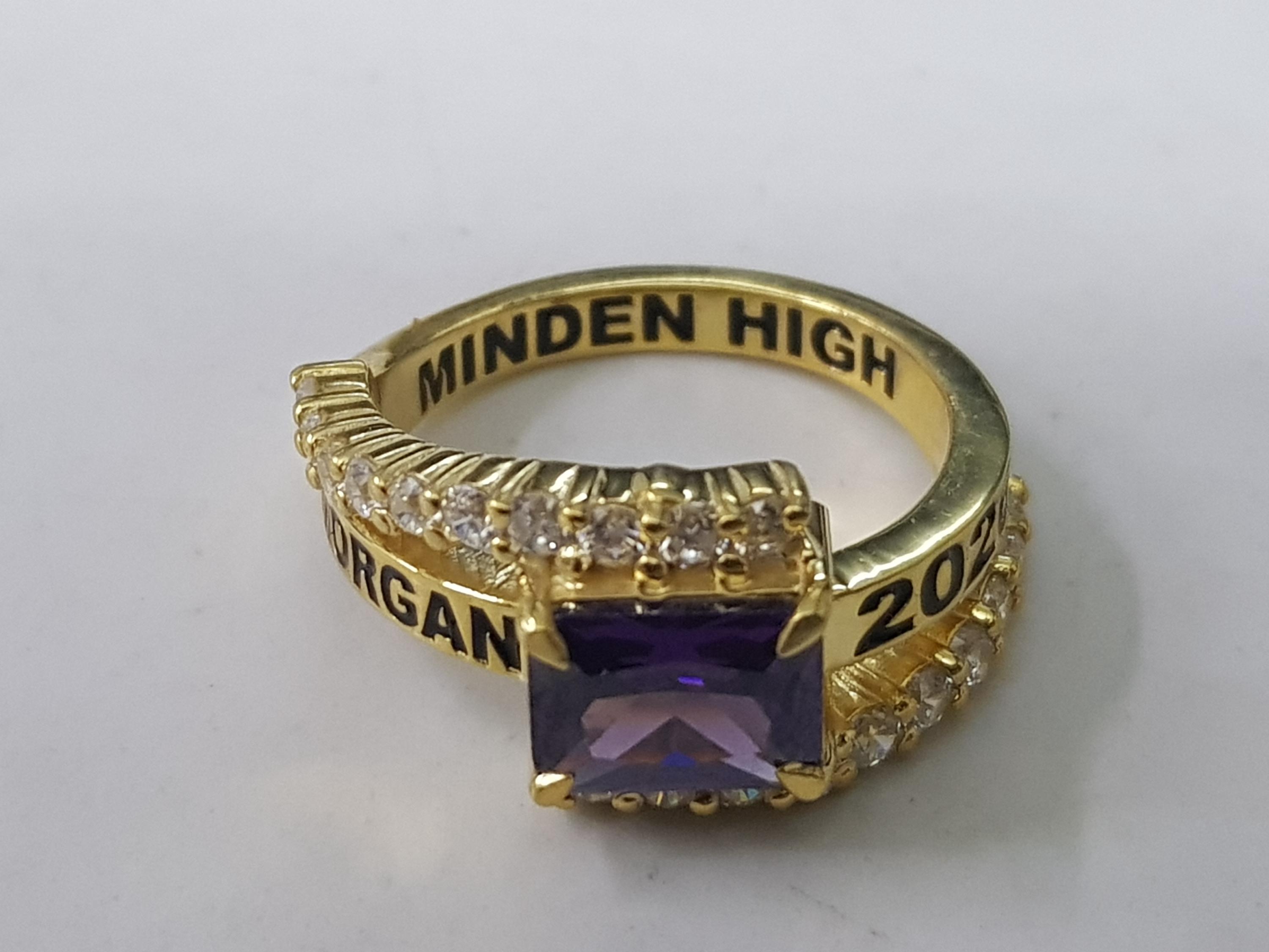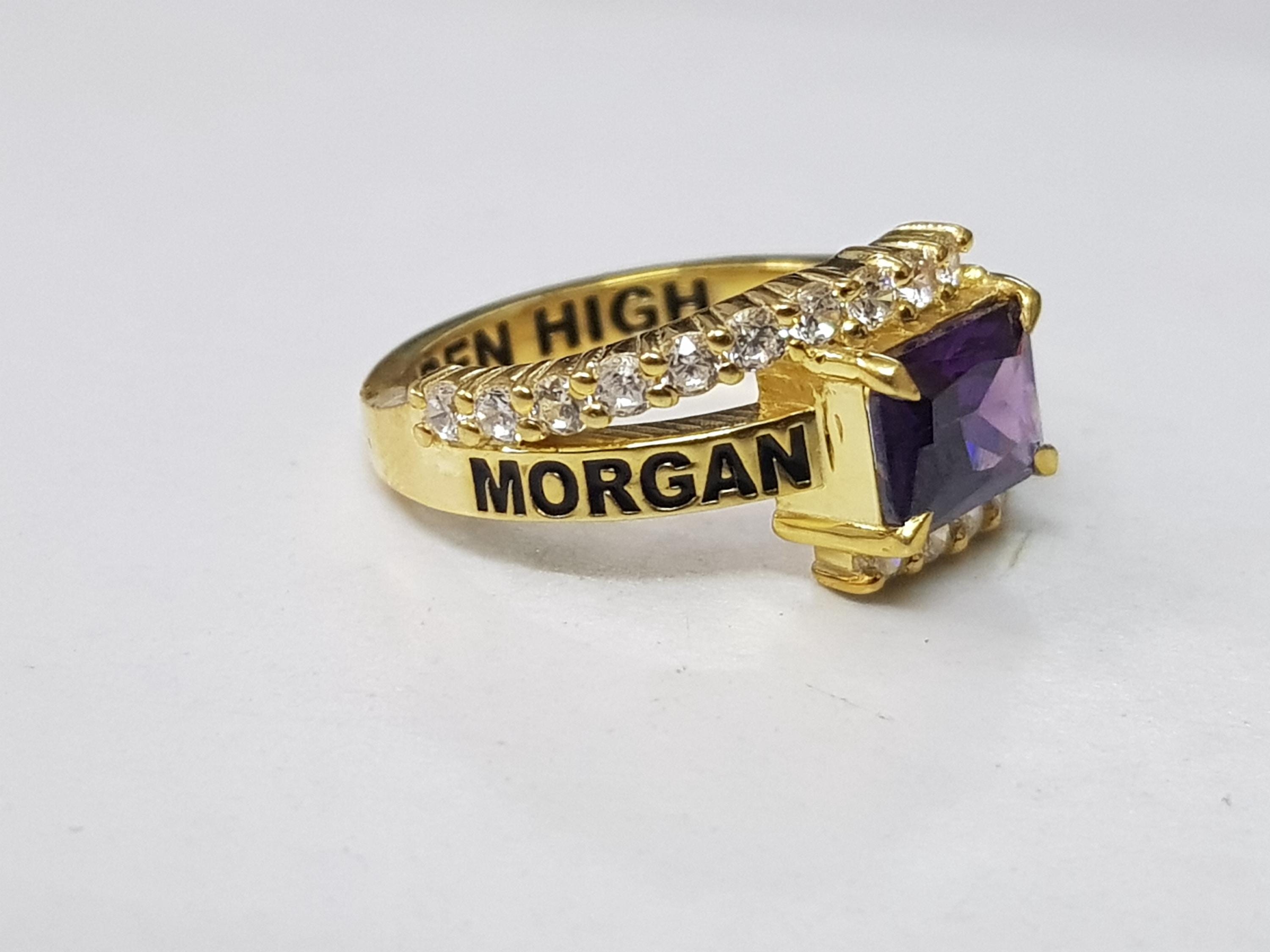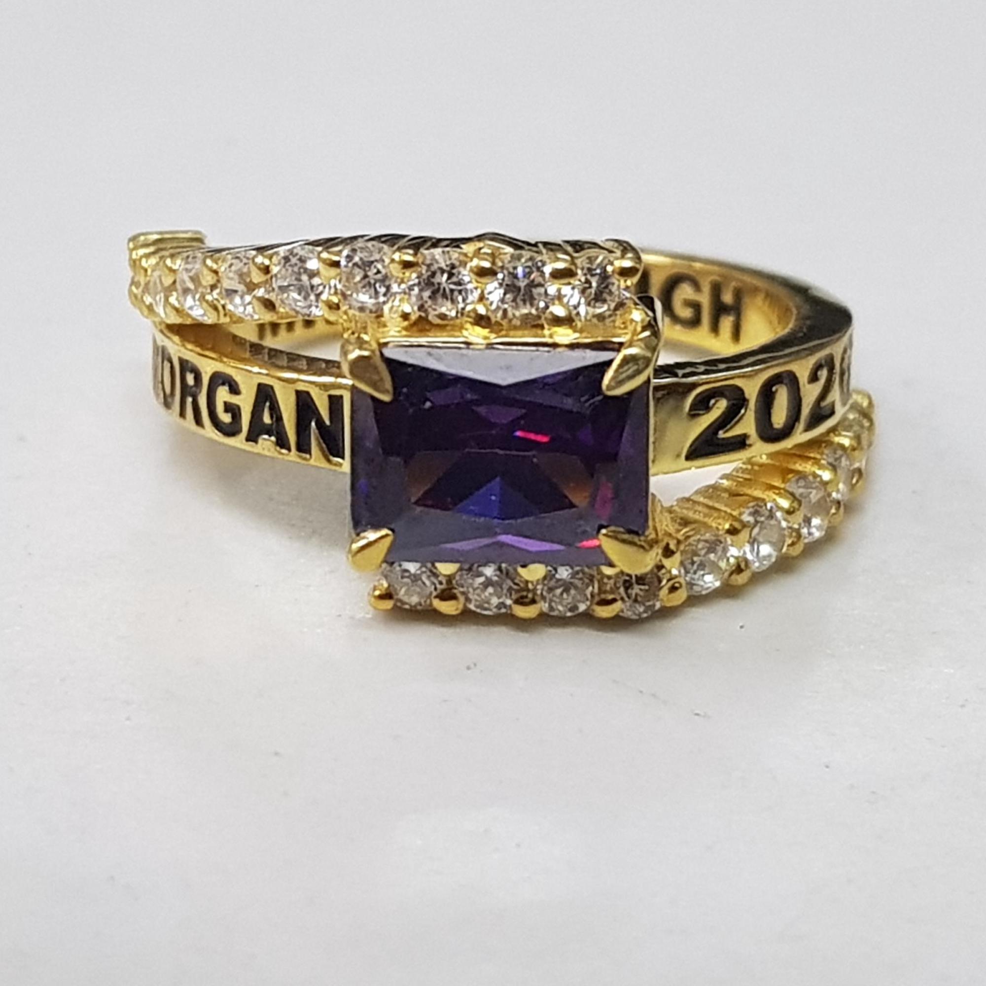 Customize Rectangle Birthstone High School Class Ring in 925 Sterling Silver, Double Row Band Pave Setting Handmade Graduation Ring for Her