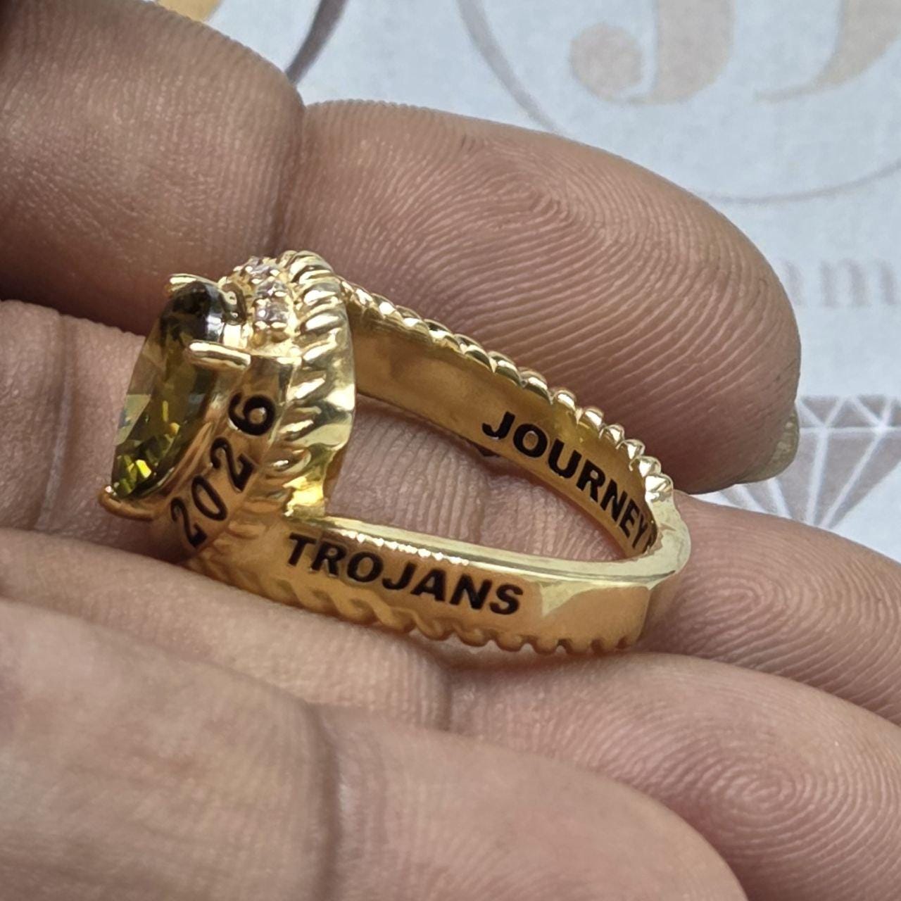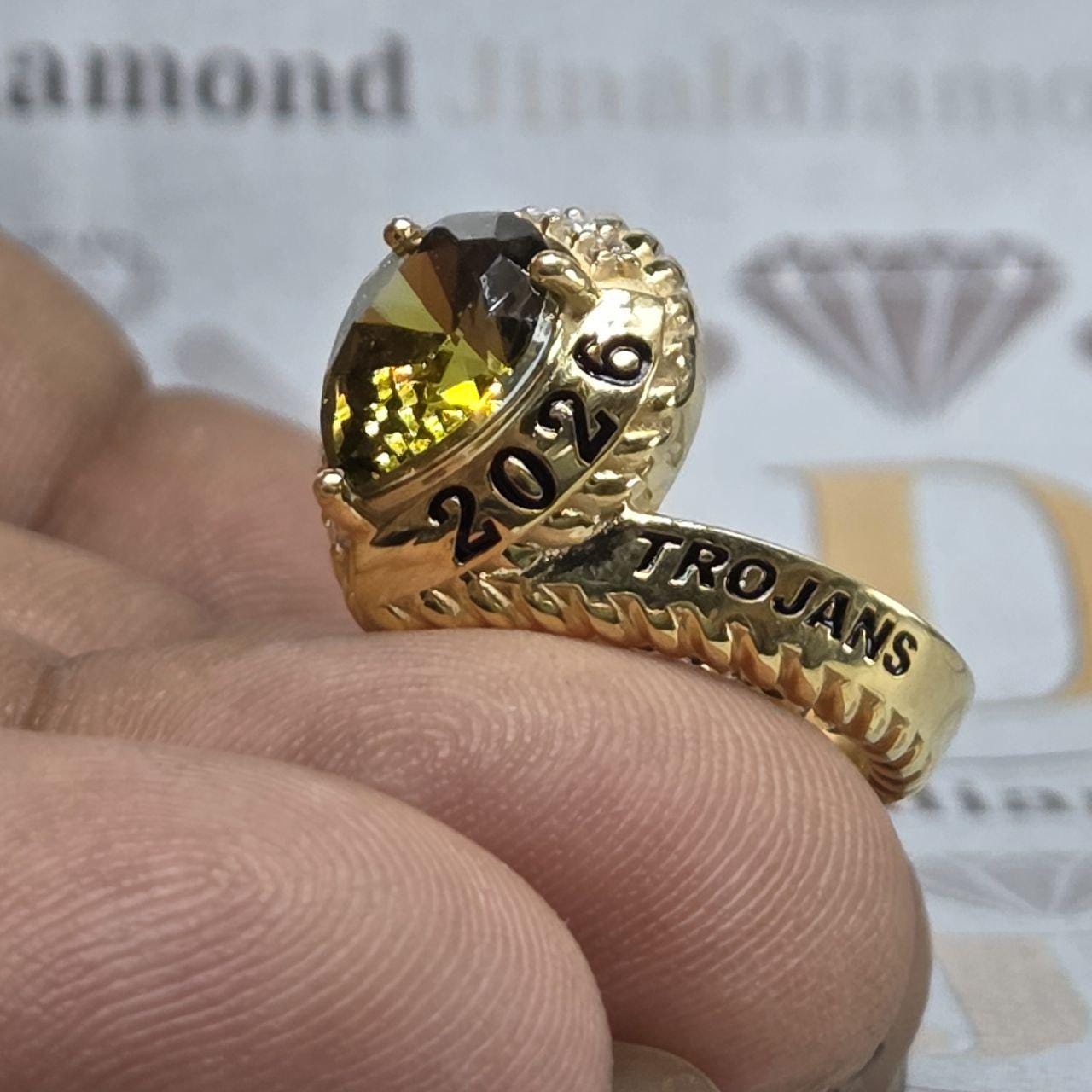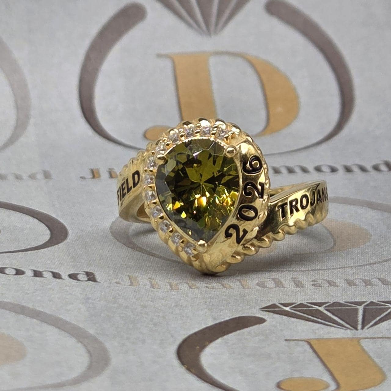 Customized 2026 Women High School Class Ring in 925 Sterling Silver Handmade Bypass opening Pear Gemstone Graduation Ring CZ Stone Ring