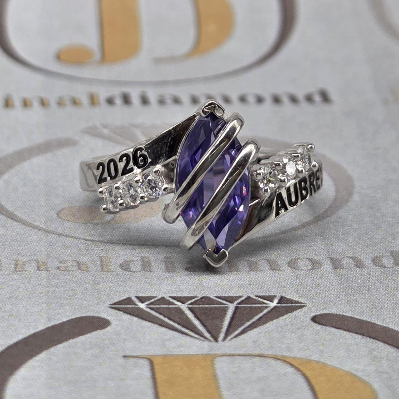 Marquise Birthstone High School Class Ring For Women, Handmade Graduation Ring in 925 Sterling Silver, Bypass Opening CZ Stone Ring for Her