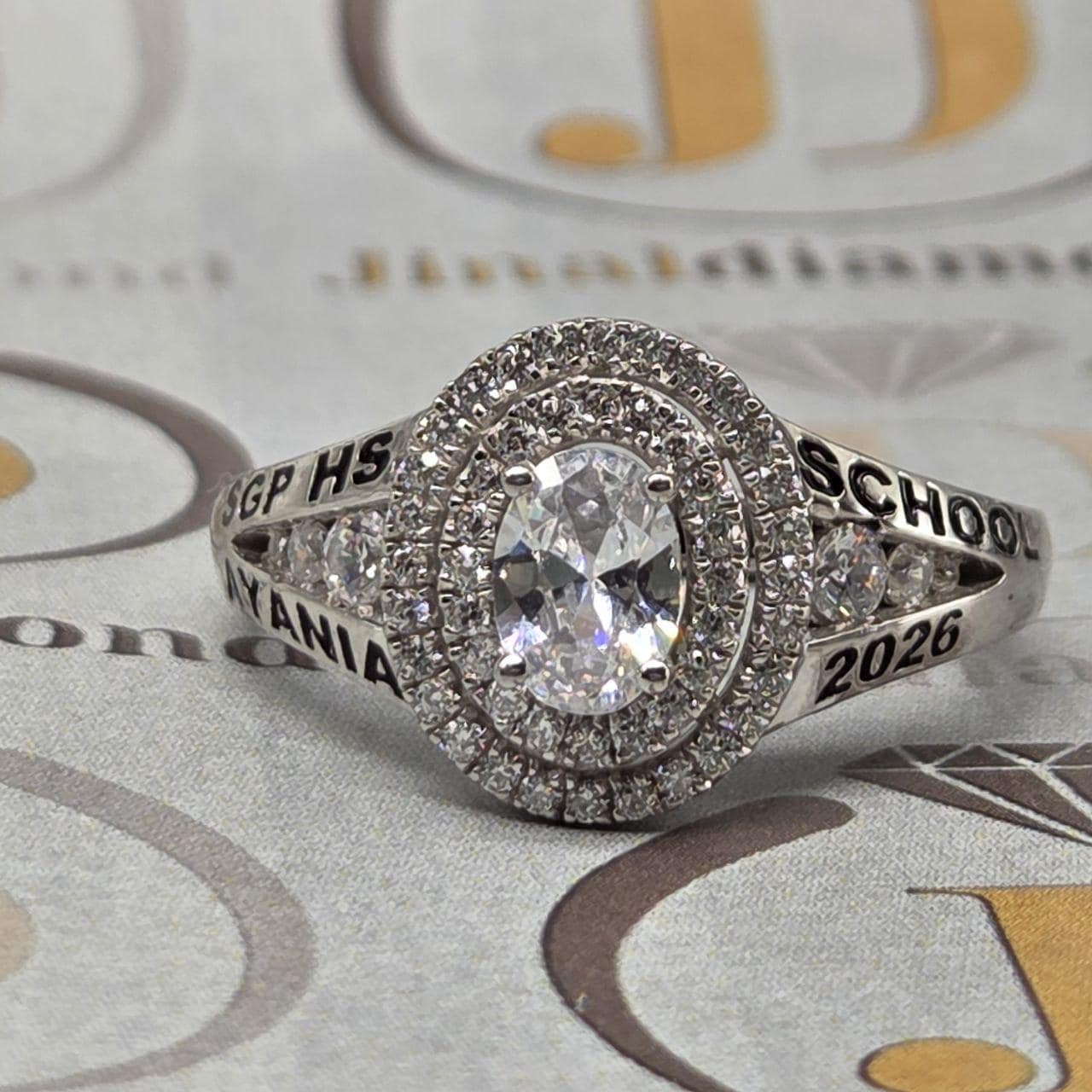 Customized Oval Birthstone High School Class Ring in 925 Sterling Silver | Handmade Women Graduation Ring | Split Shank Opening Ring For Her