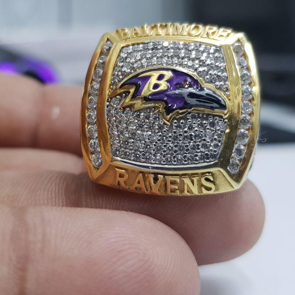 Baltimore Ravens Men's 1/2 CTW D/VVS Moissanite Two-Tone Gold Plated & 925 Sterling Silver Handmade Championship Ring by Jinaldiamond