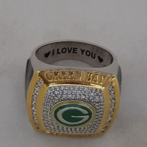 Green Bay Packers Championship Ring Replica Football Fan Ring Iced CZ Statement Ring Sports Collectible Jewelry Gift By Jinaldiamond
