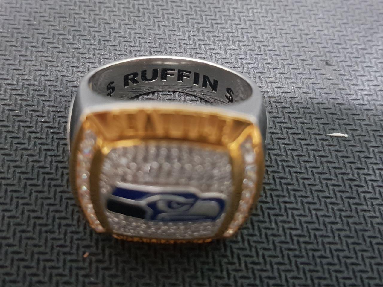 Seattle Seahawks Men's 1/2 CTW D/VVS Moissanite Two-Tone Gold Plated & 925 Sterling Silver Handmade Championship Ring by Jinaldiamond