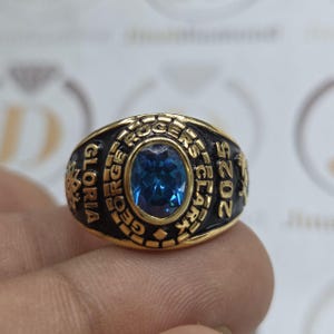 Personalized High School Graduation Ring, Custom Class Ring with Marquise Birthstone, Name & Year Engraved, Unique School Gift, 925 Silver
