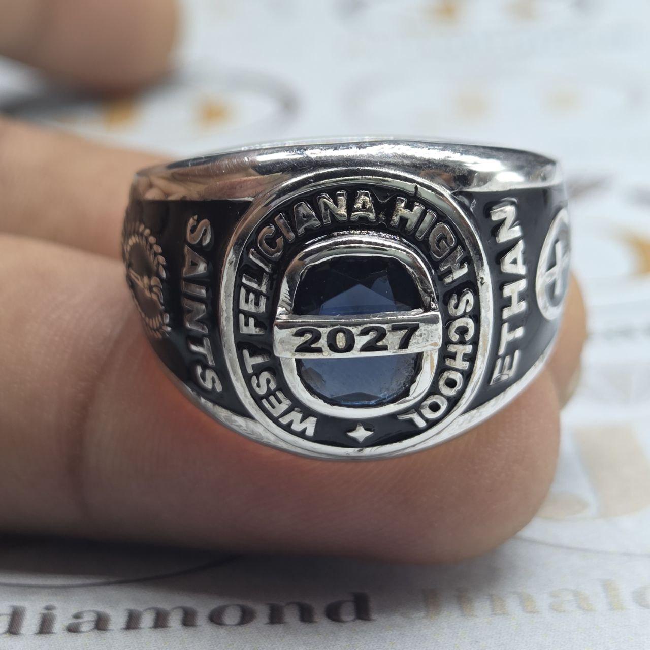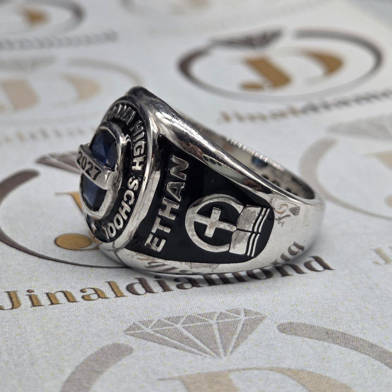 Bezel Set Handmade Class Ring For Women Men | 925 Silver | Custom Gemstone, Name, Year & Pattern Graduation Ring, CZ Stone Gift Ring for Her