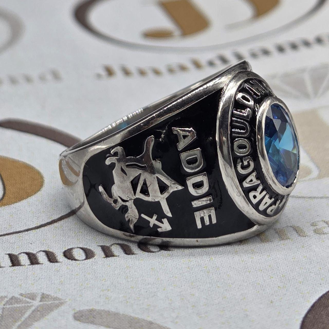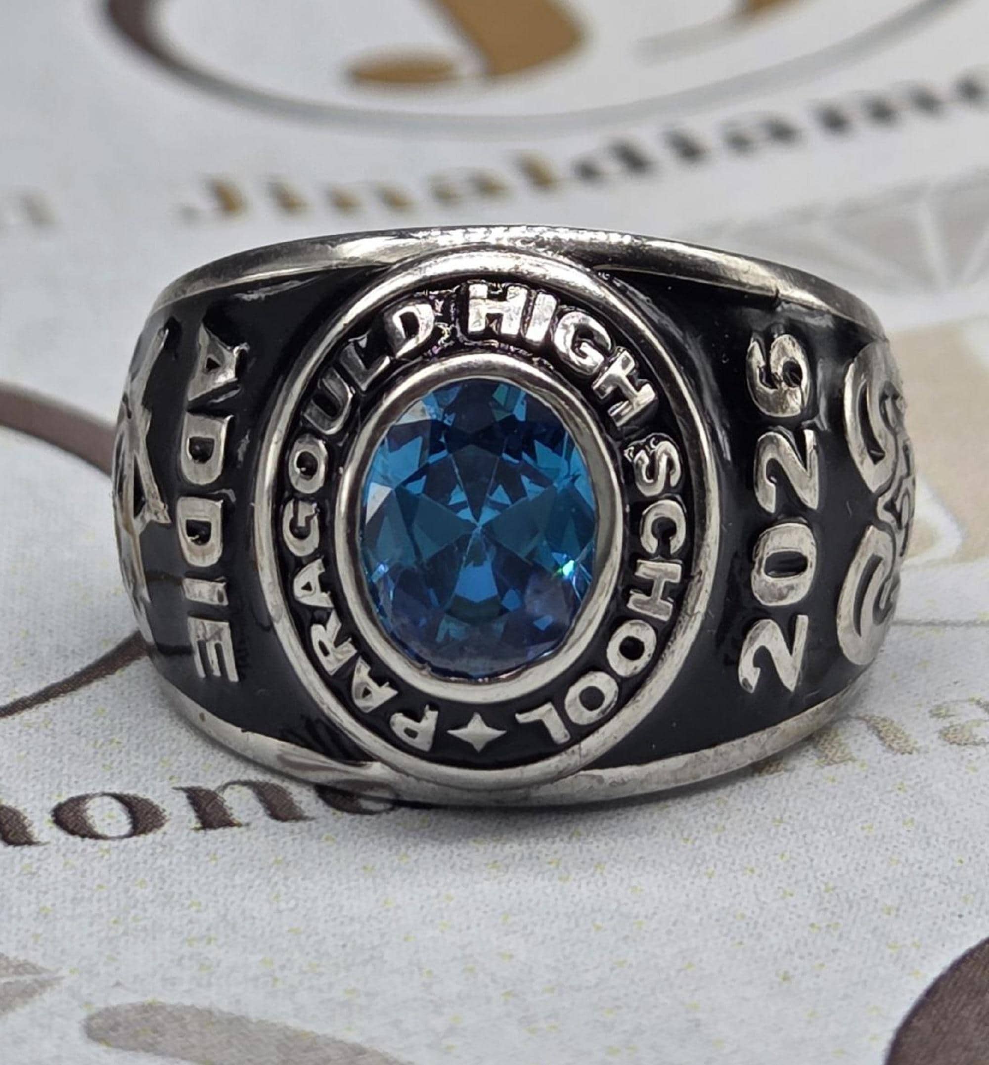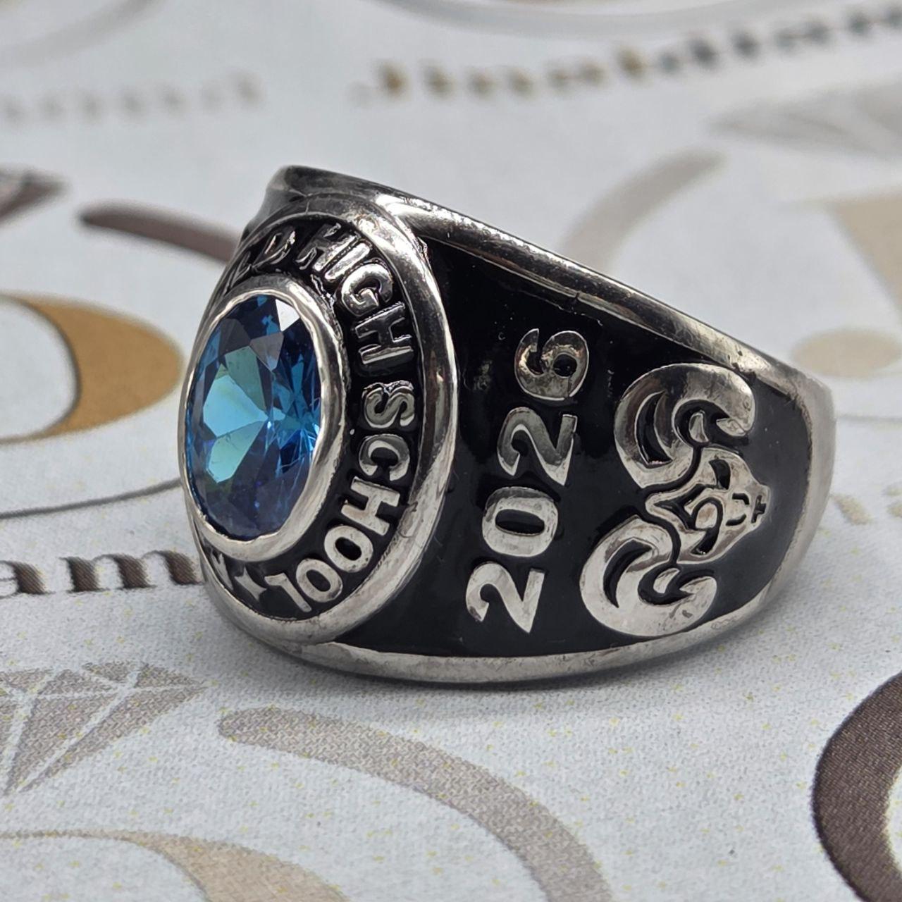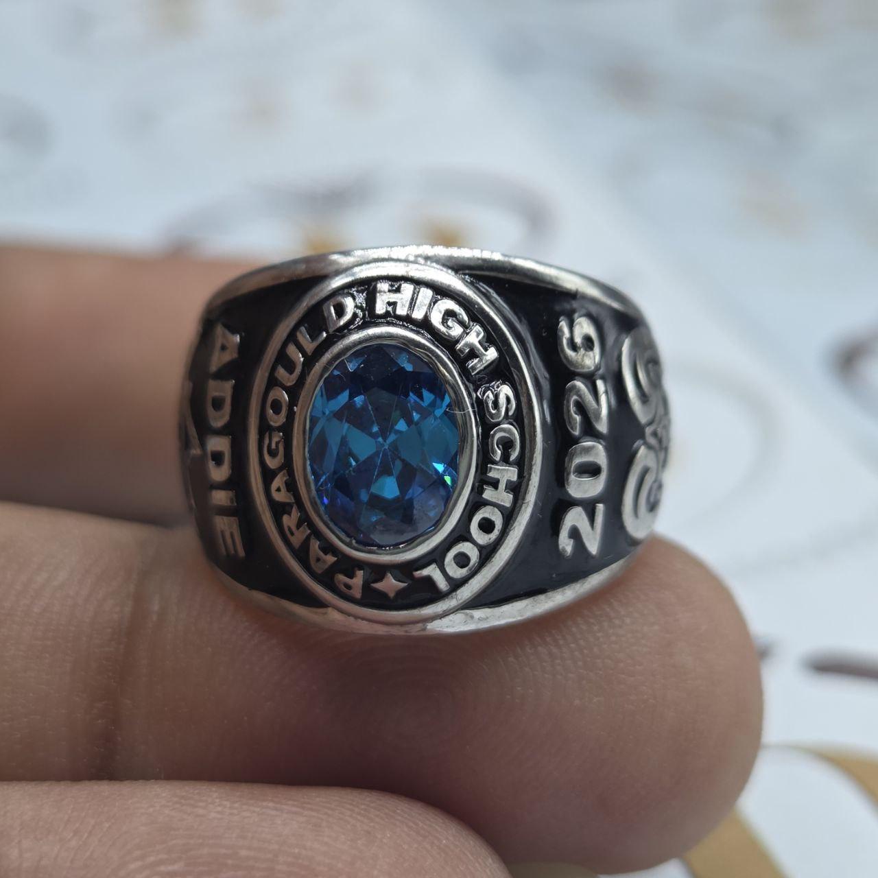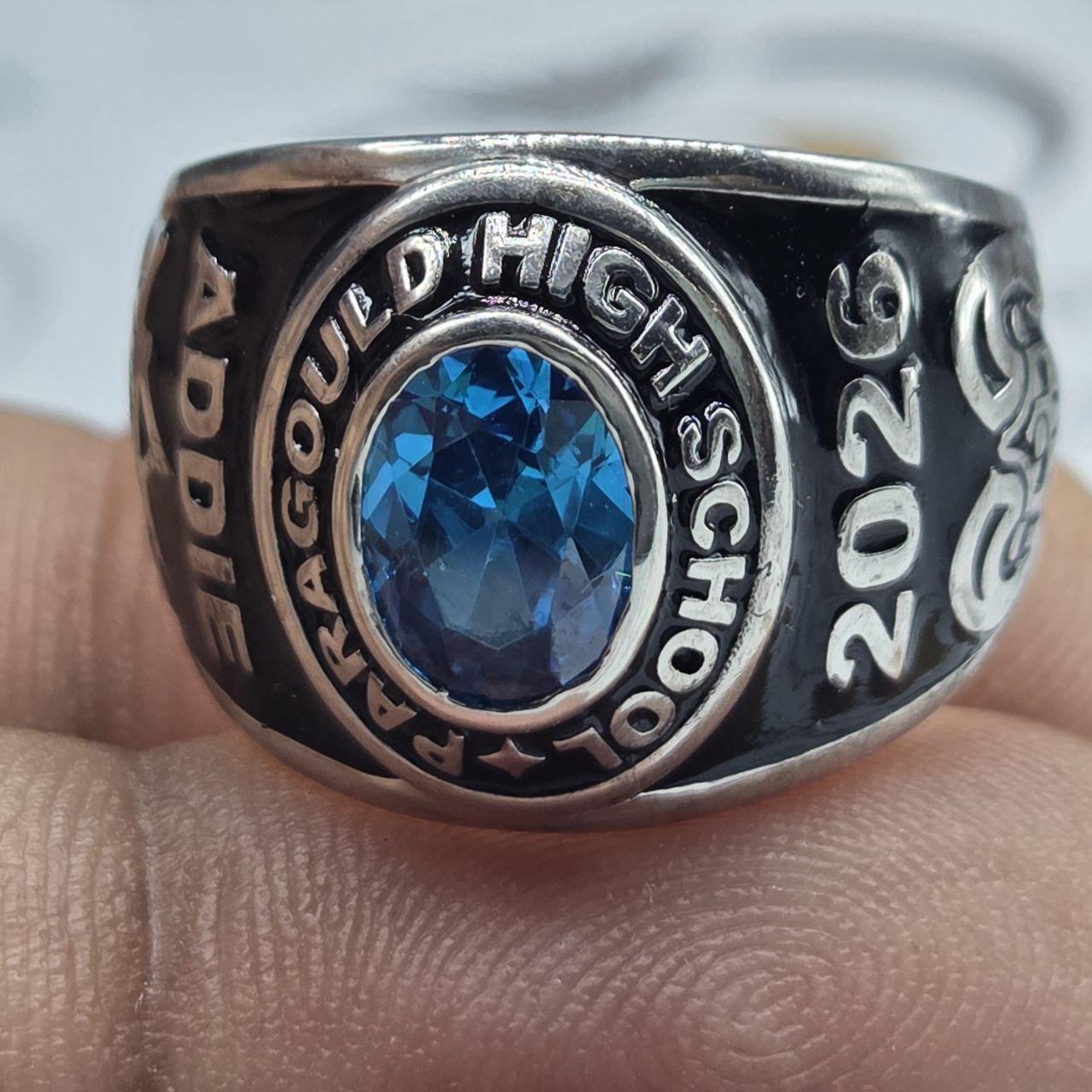 Custom Paragould High School Class Ring 2026 Menโ€™s Graduation Ring with Blue Gemstone โ€“ Personalized Silver Gift Custom Name, Year & Pattern