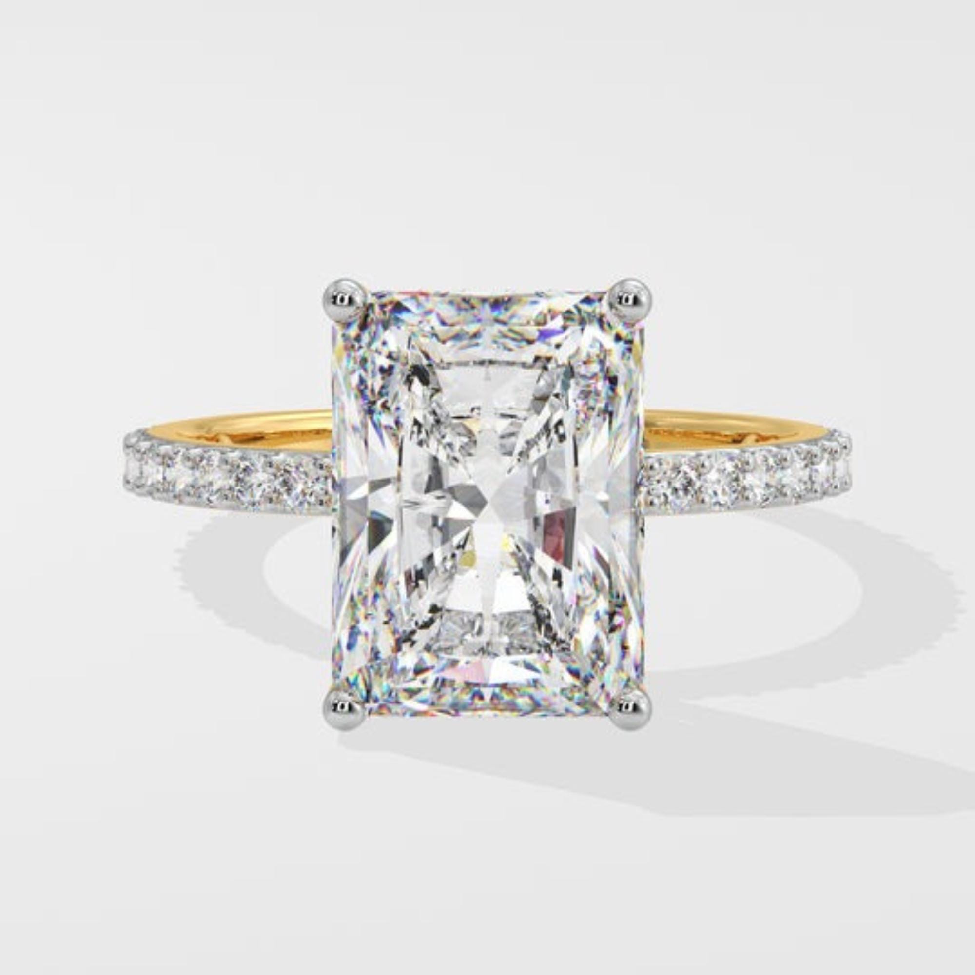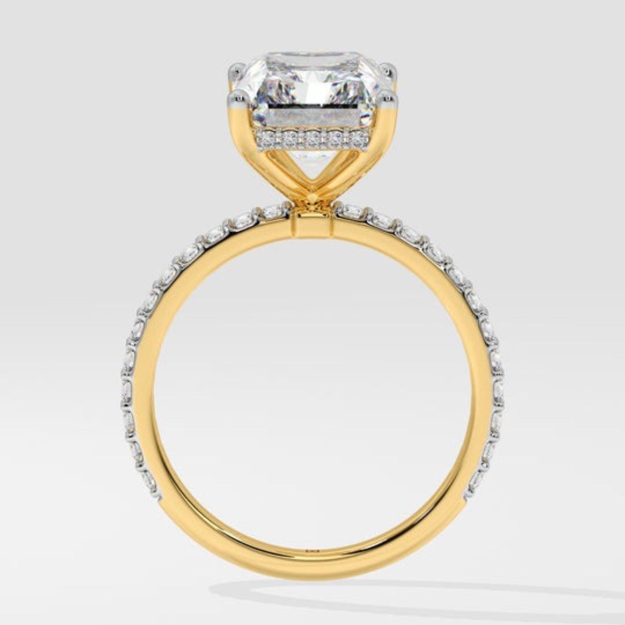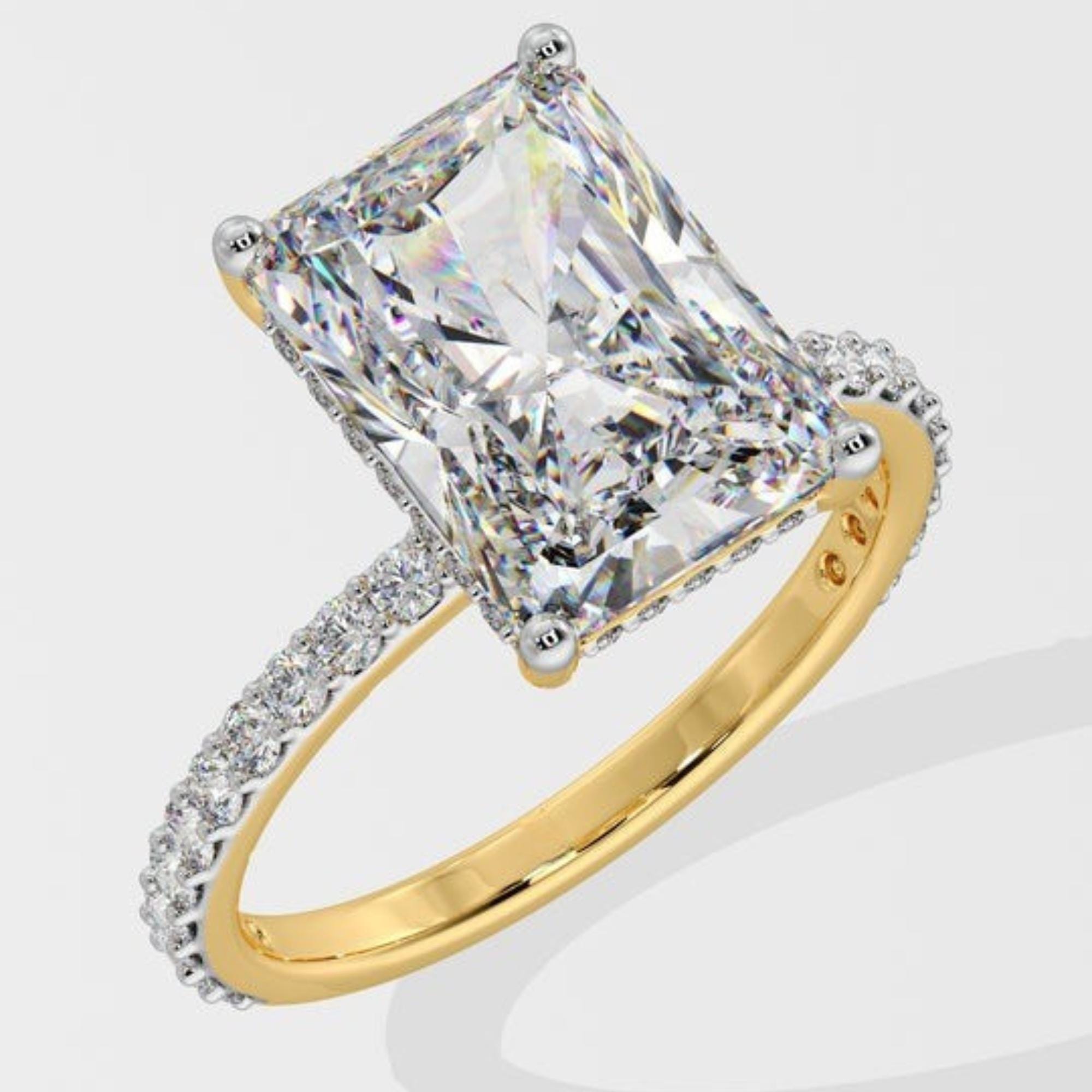 4CT Radiant Moissanite Engagement Ring Solid Gold Solitaire Hidden Halo Wedding Ring Classic Handmade Bridal Proposal Ring, Stunning Ring