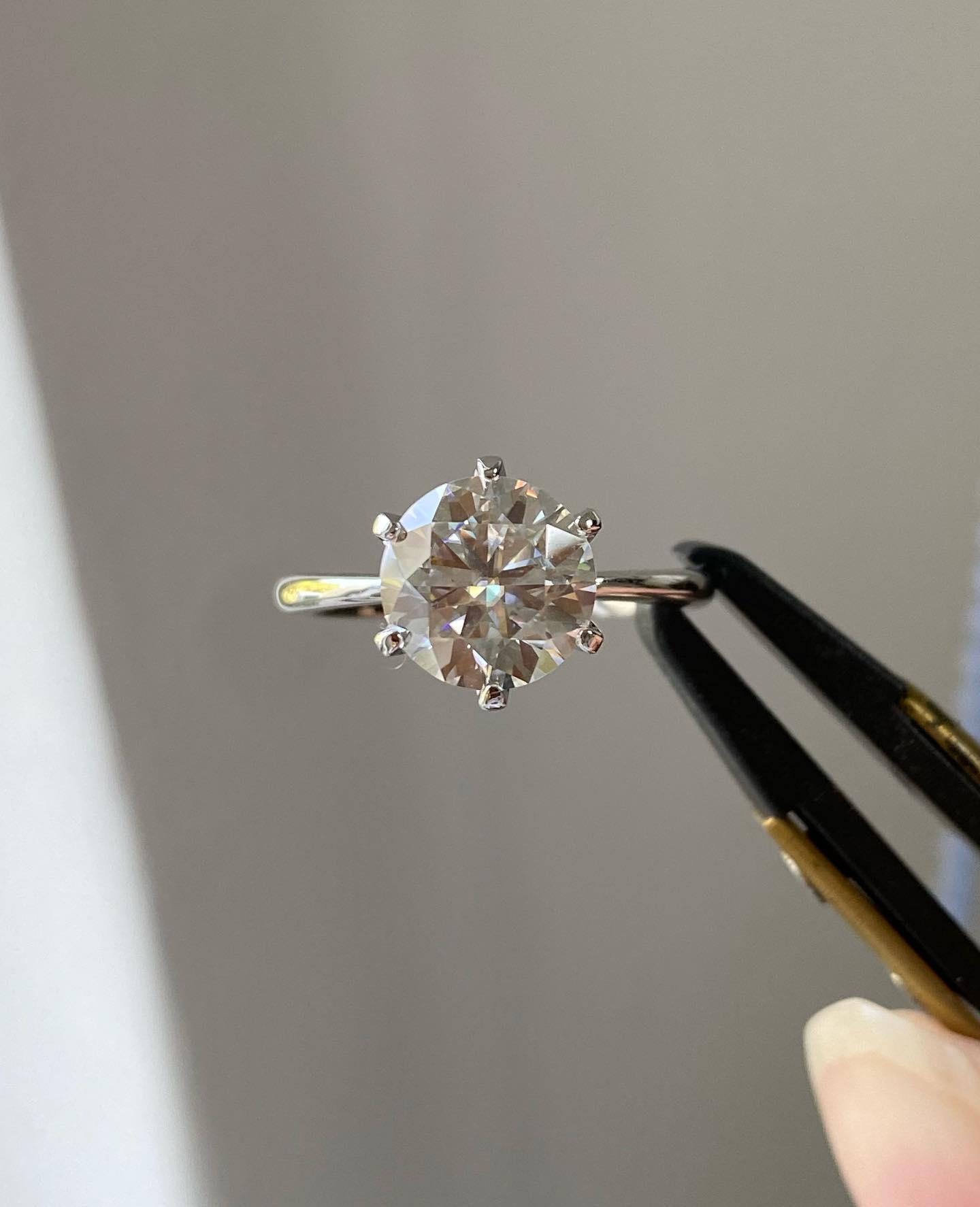 2.0 Round Moissanite Solitaire Engagement Ring, Delicate 6 Prong Wedding Ring, White Gold Promise Ring, Dainty Anniversary Gift Ring for Her