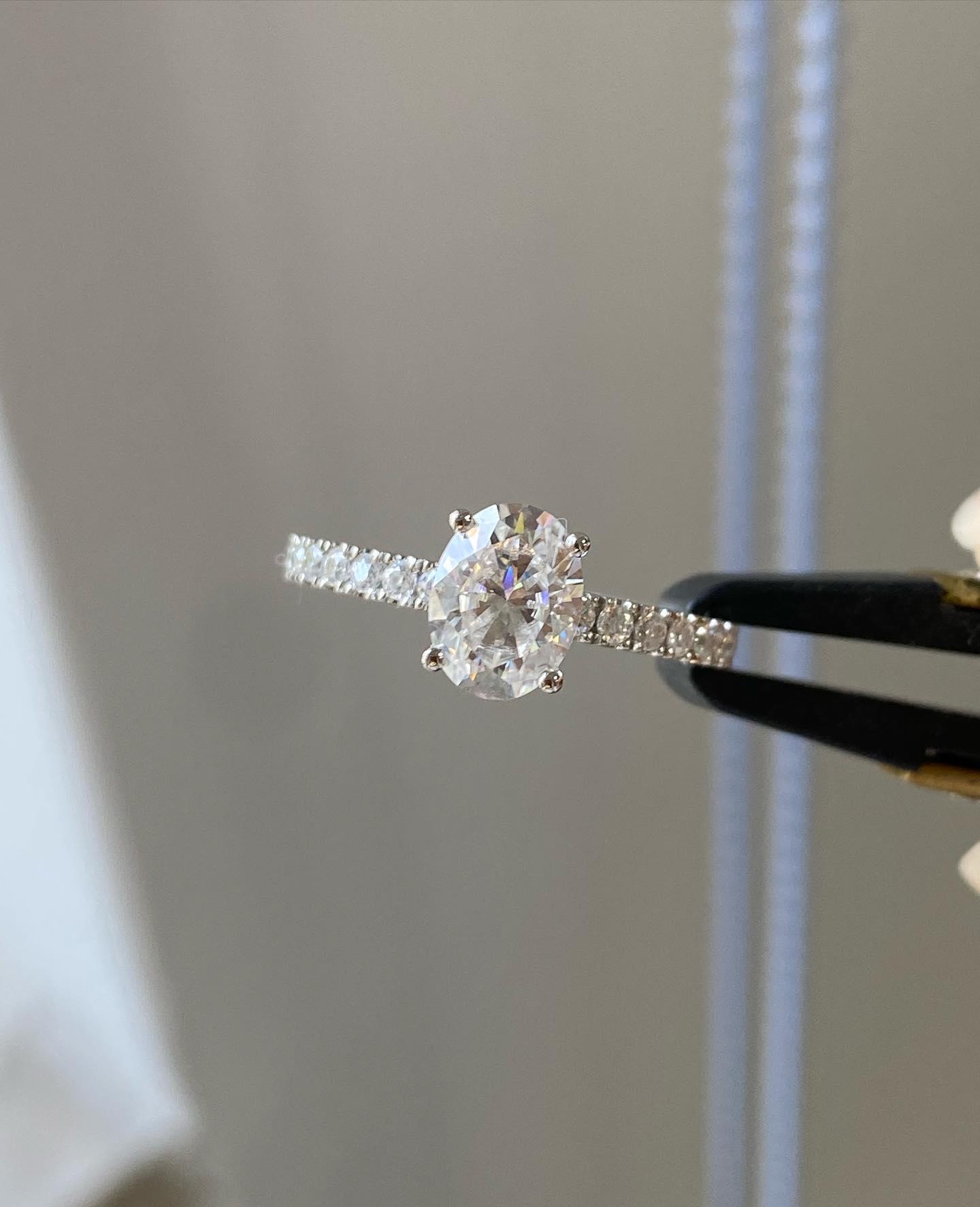 14k Gold Engagement Accent Ring, 2.0 TCW Oval Lab Grown Diamond Ring, Art Deco Wedding Bridal Ring, Handmade Fine Jewelry, Promise Ring Gift