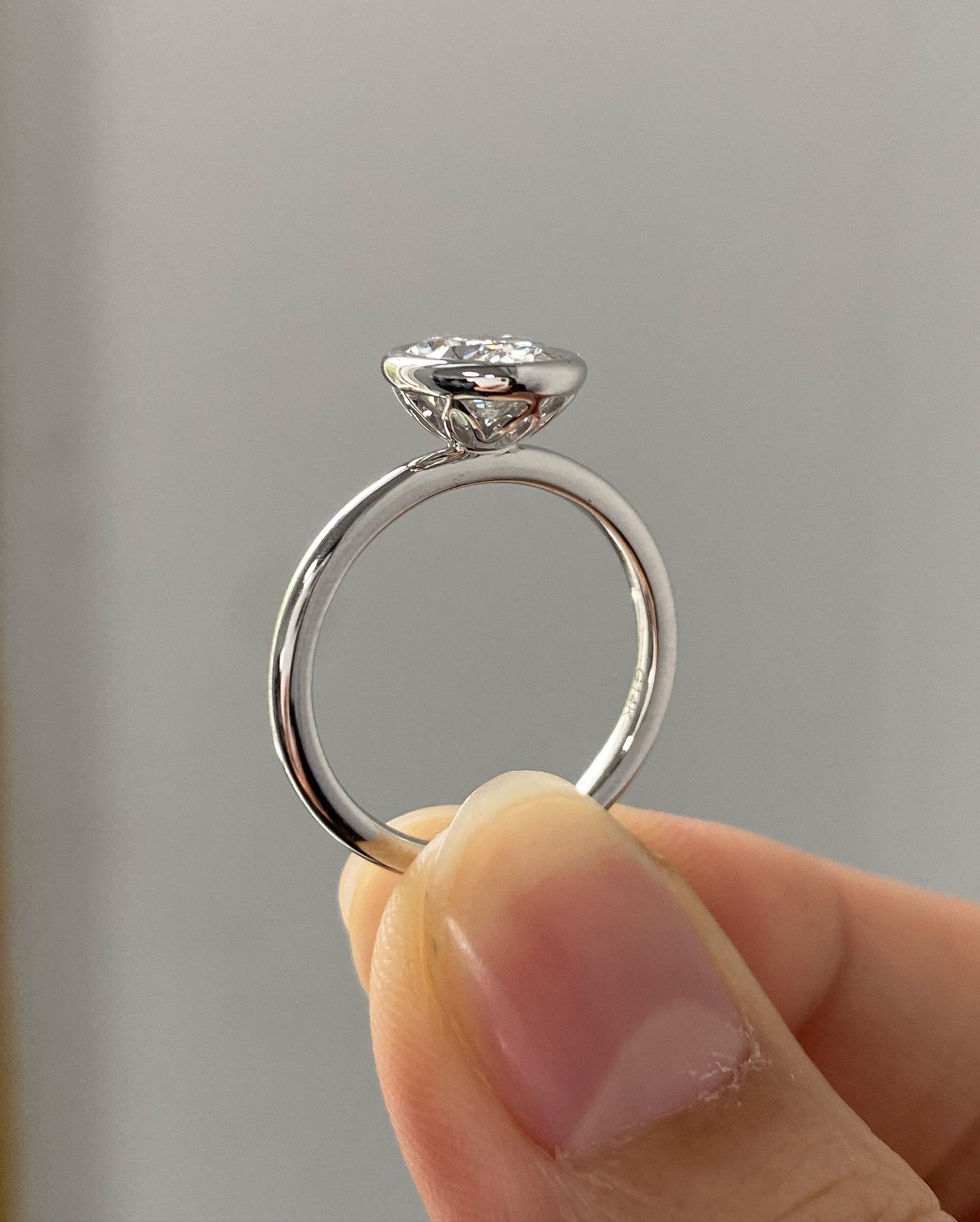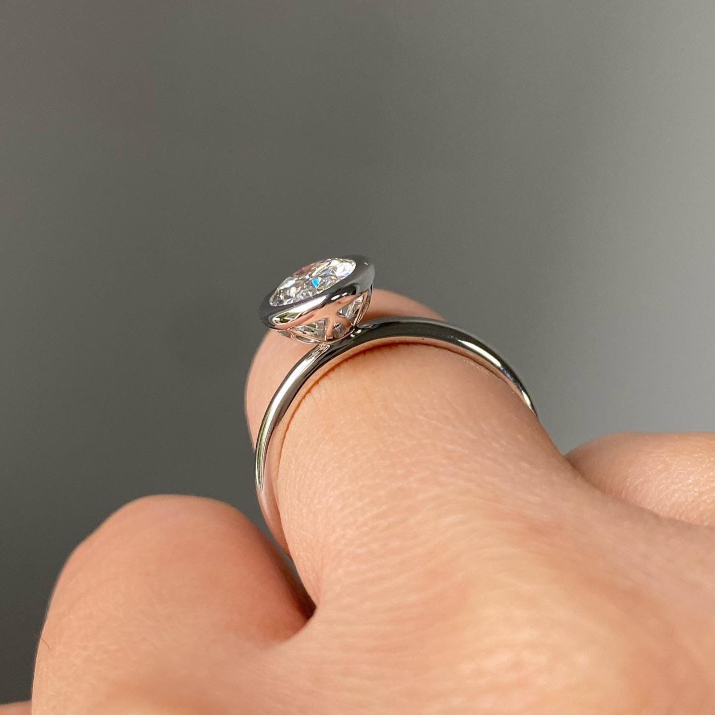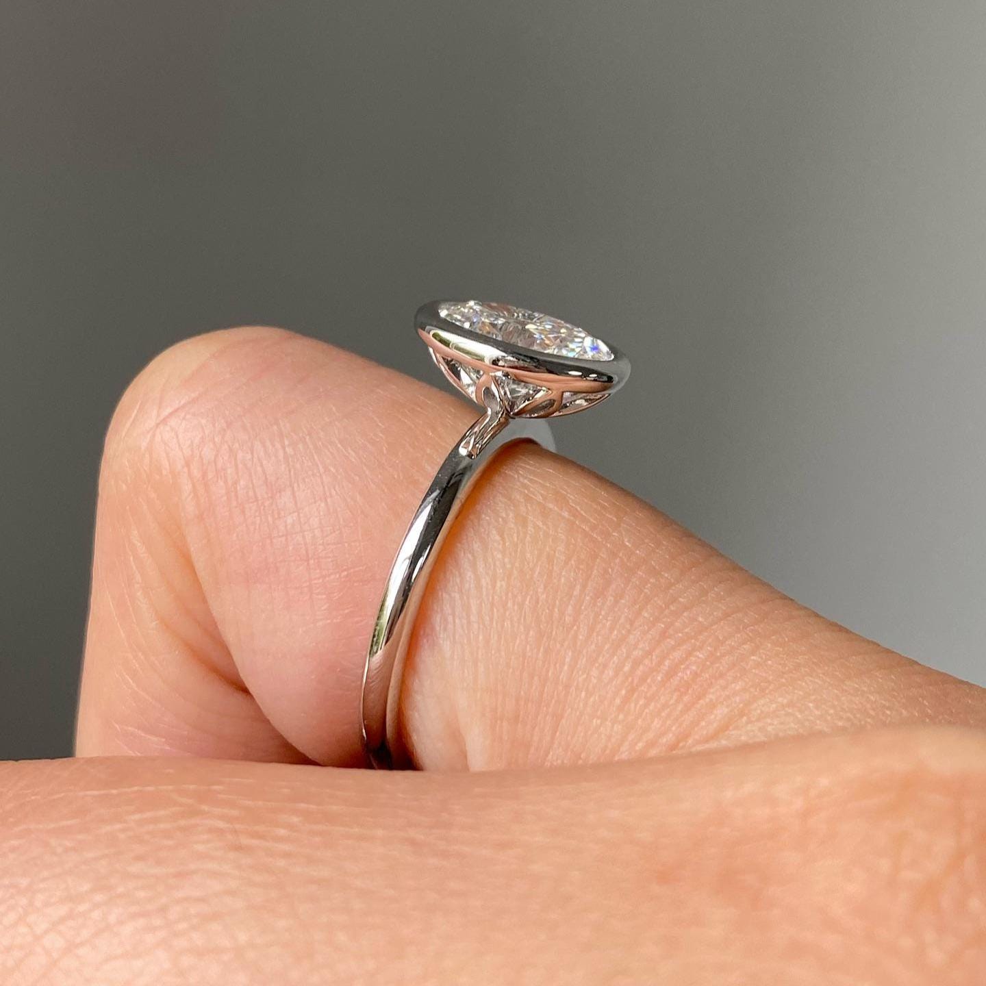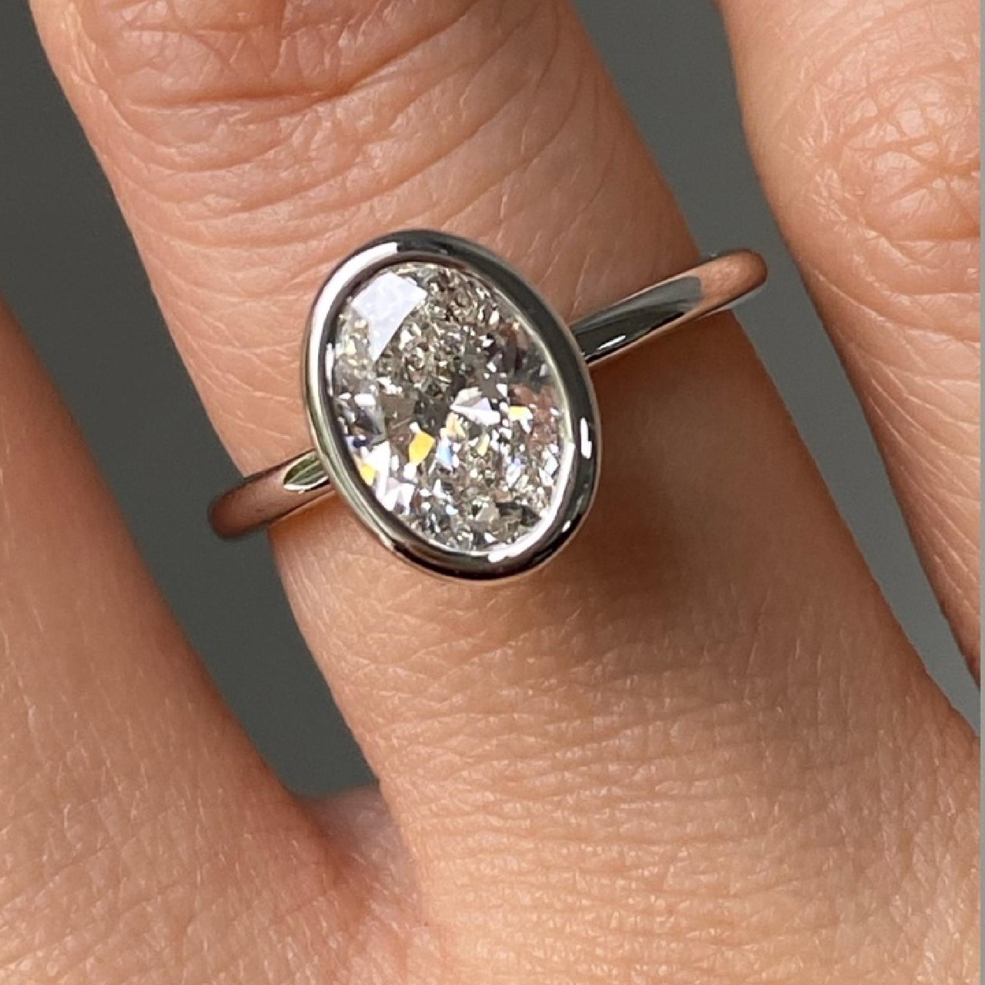 2.0 Oval Cut Moissanite Diamond Ring, 14k Solid Gold Solitaire Engagement Ring, Delicate Bezel Set Lab Grown Ring, Anniversary Gift for Her