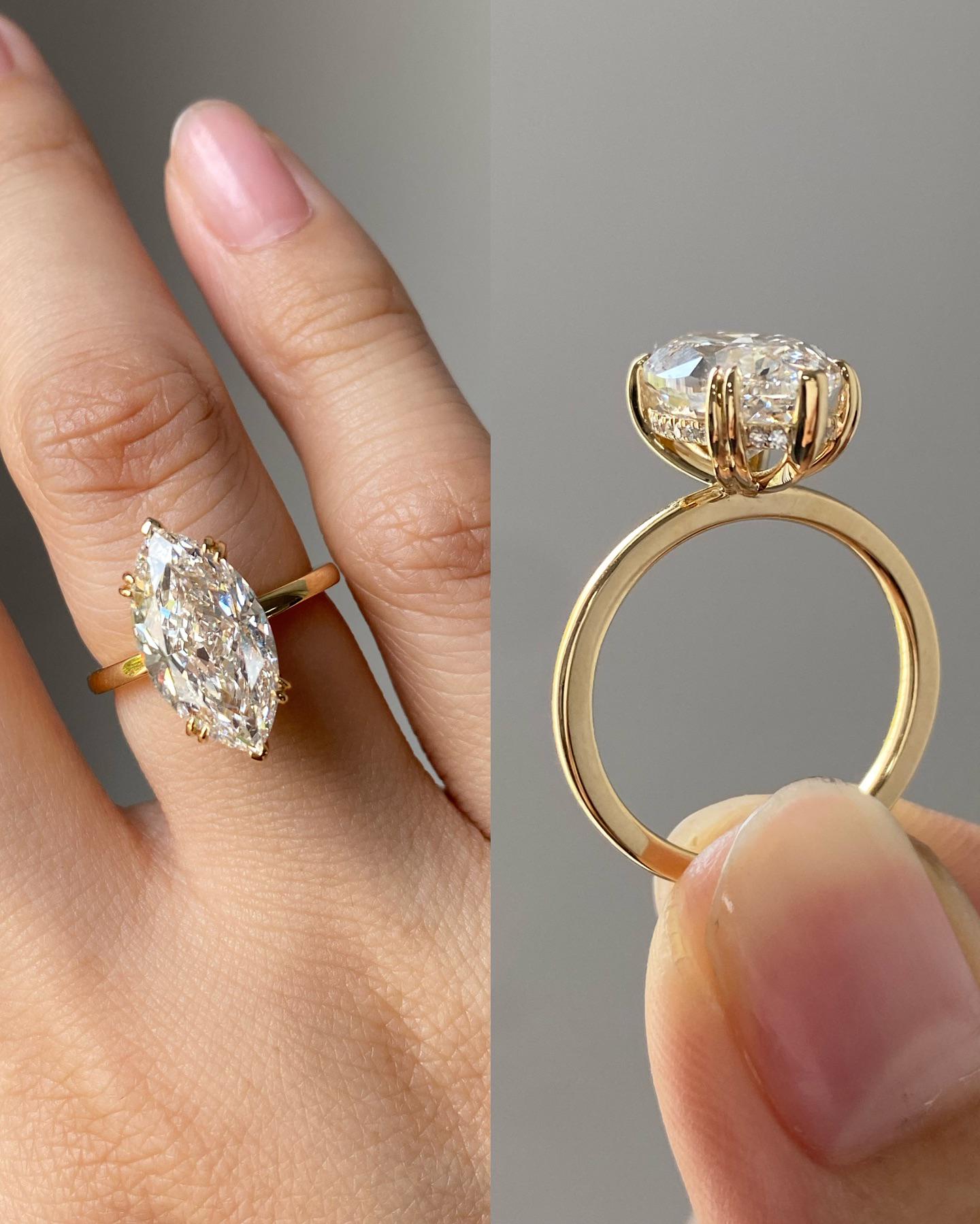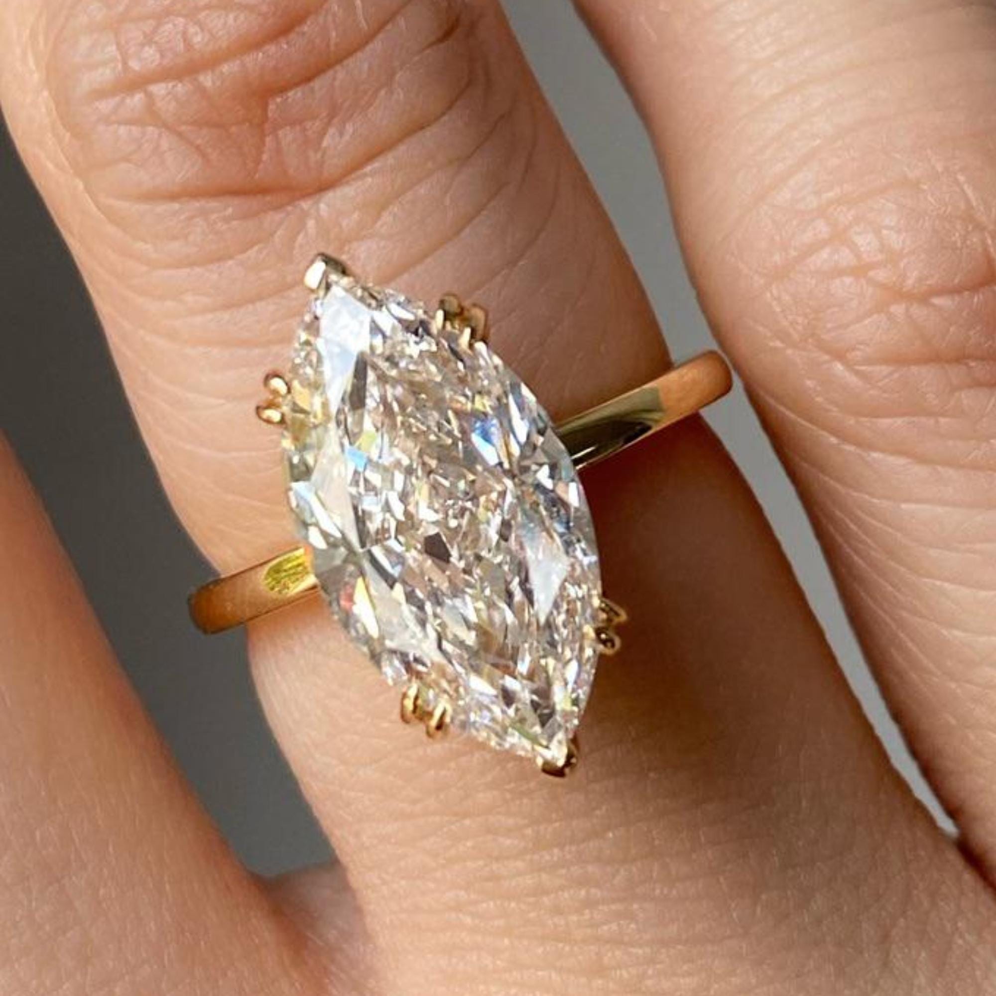 3CT Marquise Cut Moissanite Engagement Ring, Lab Grown Diamond Solitaire Ring, 10k 14K 18K Solid Gold Wedding Ring, Handmade Bridal Jewelry