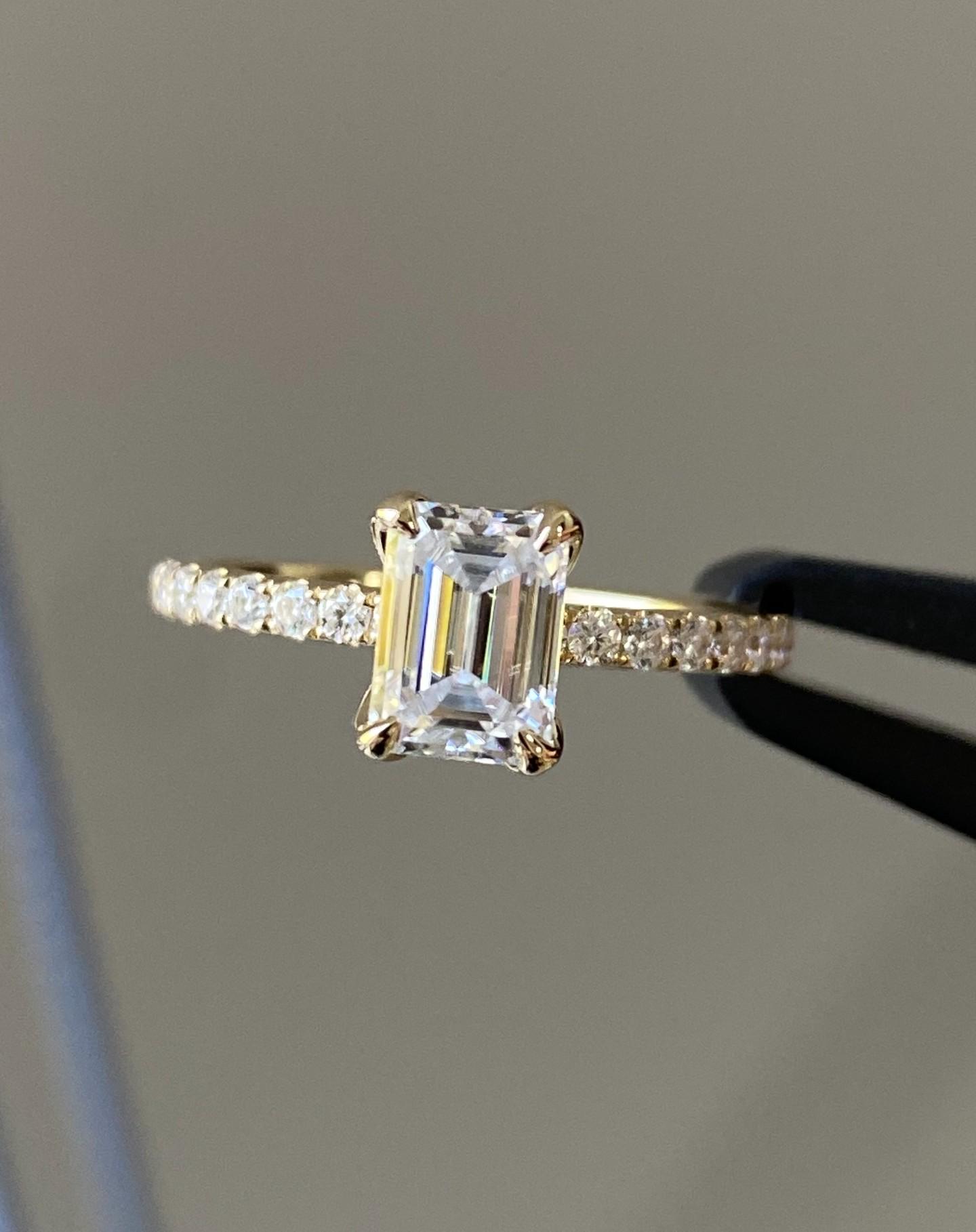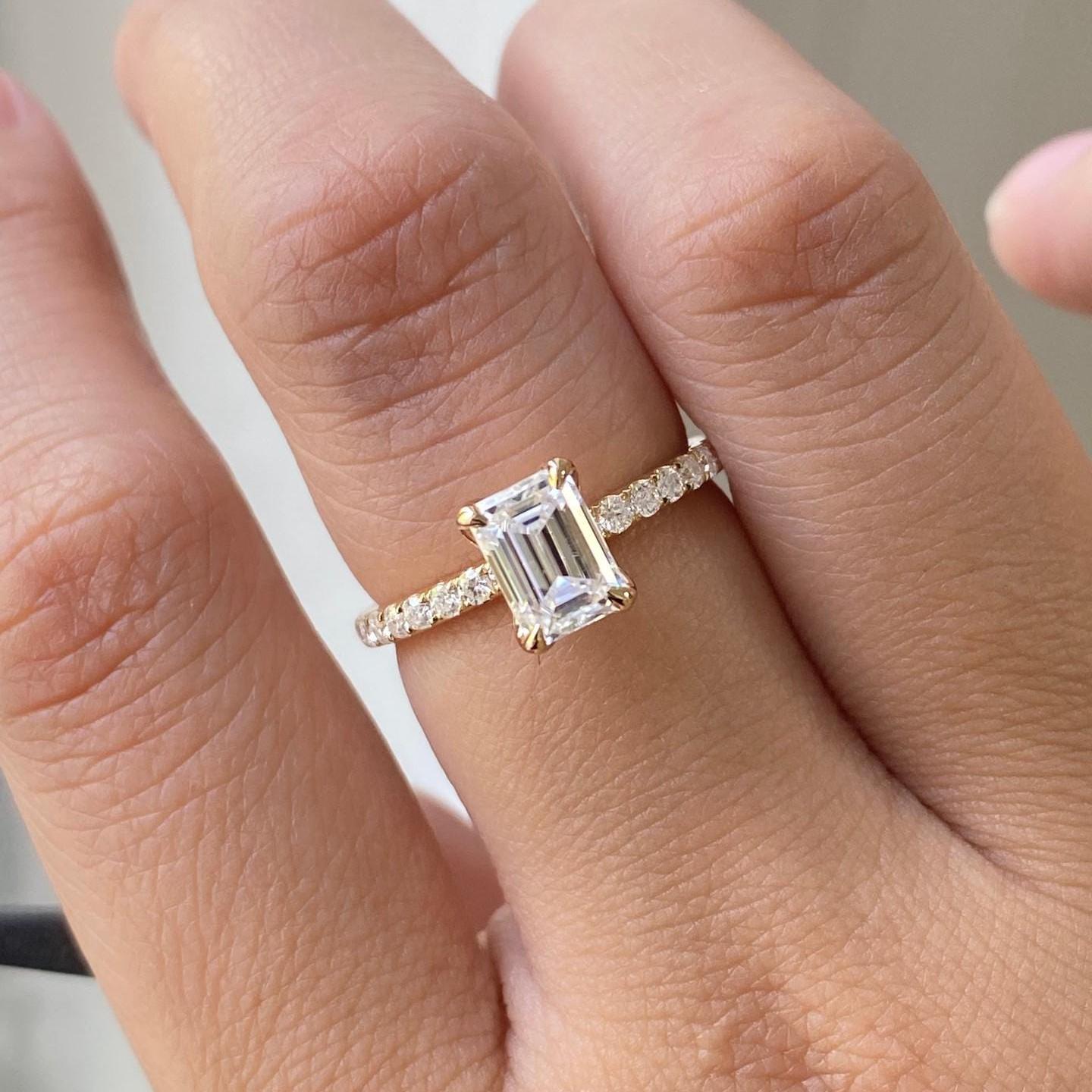 2 CT Emerald Cut Moissanite Engagement Ring, Solid Gold Prong Set Solitaire Wedding Ring, Delicate Lab Grown Bridal Anniversary Promise Ring