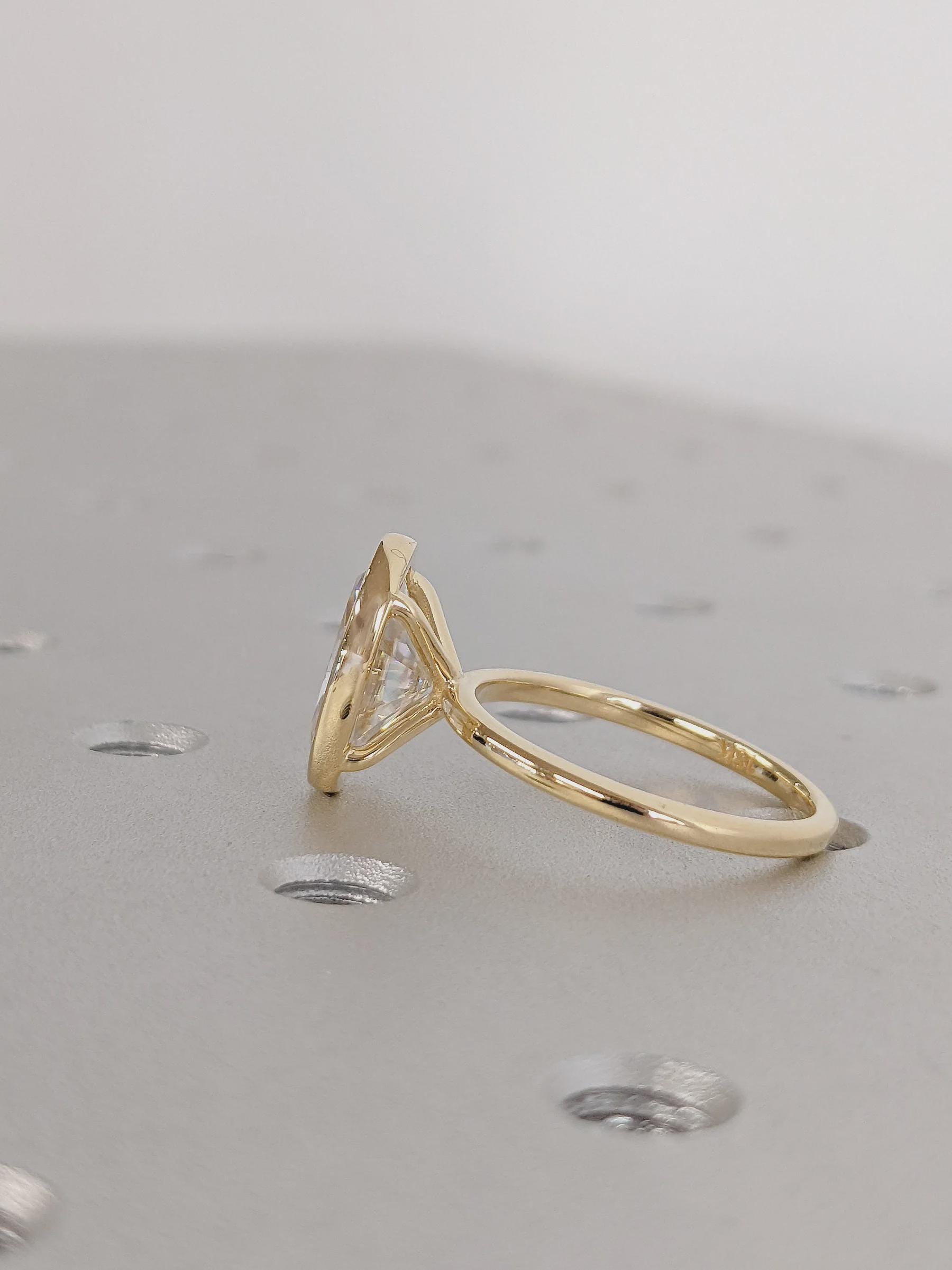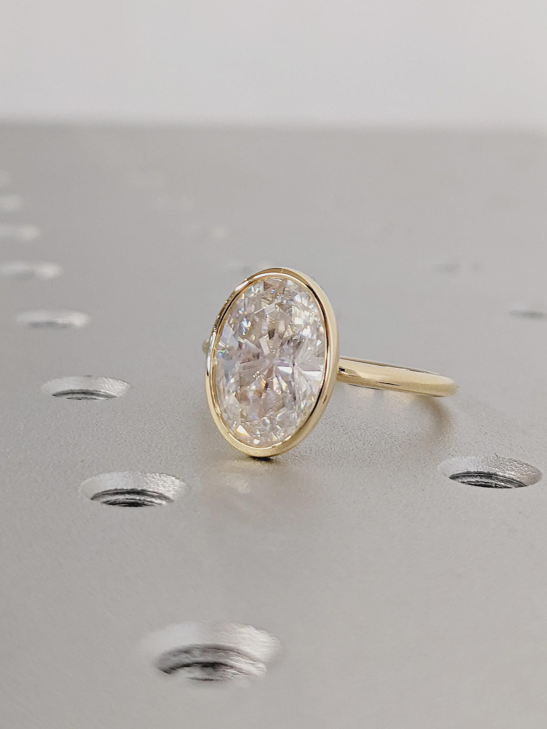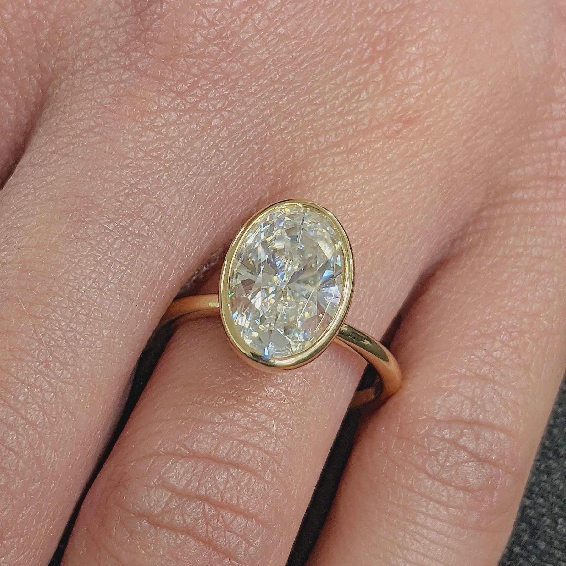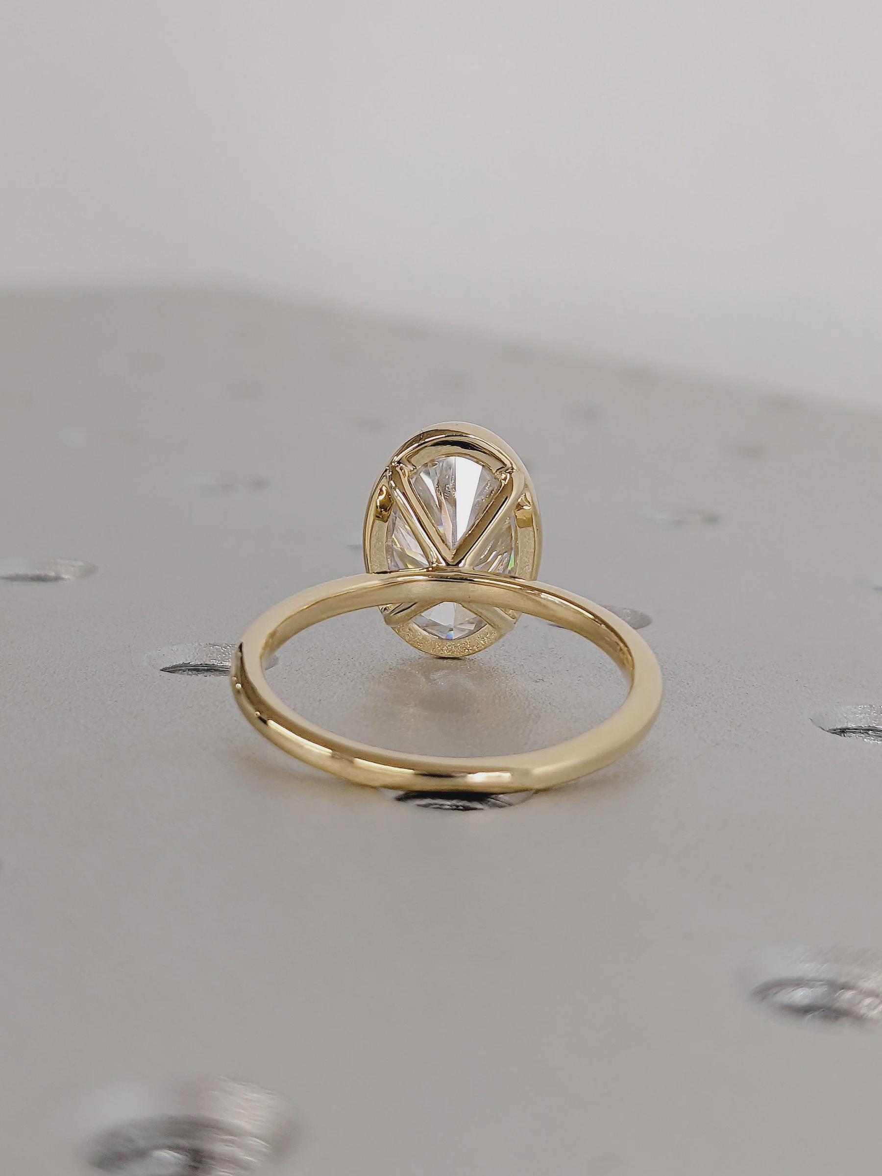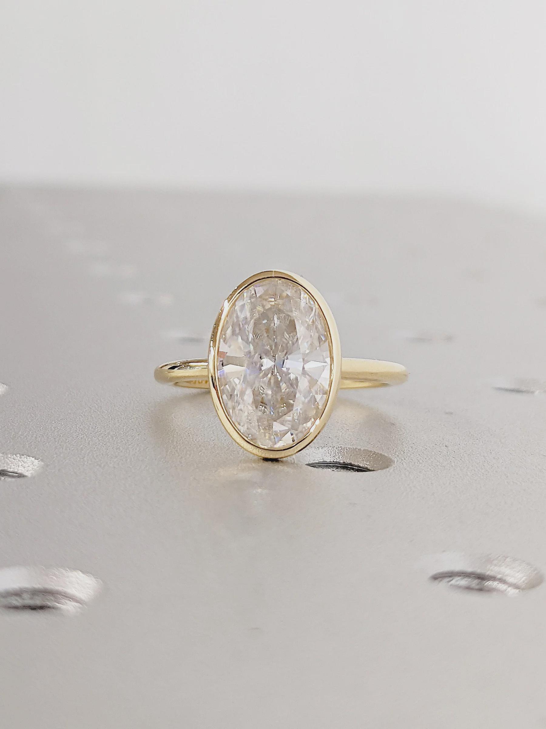 3.0 CT Oval Cut Lab Grown Diamond Engagement Ring Yellow Gold Bezel Set Solitaire Moissanite Wedding Promise Anniversary Jewelry Gift