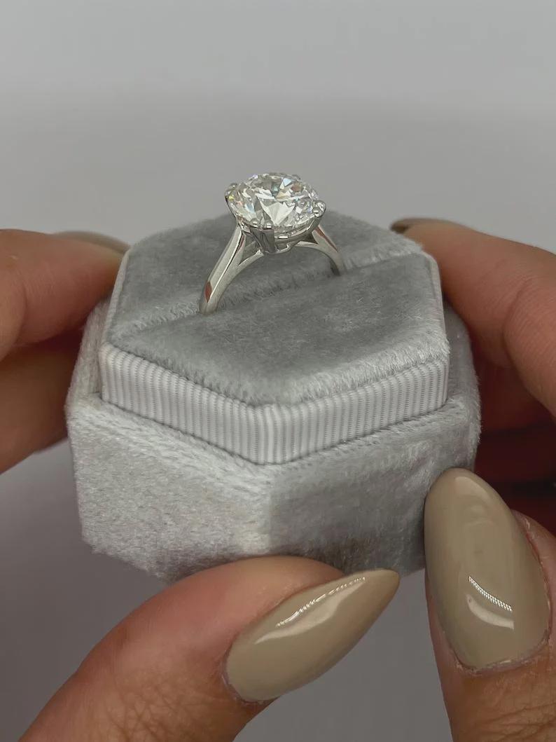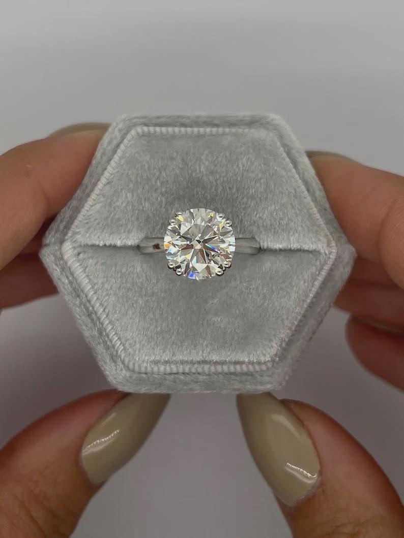 3 CT Round Cut Moissanite Engagement Ring Classic Solitaire Bridal Ring Solid White Gold Lab Grown Diamond Wedding Proposal Jewelry Gift