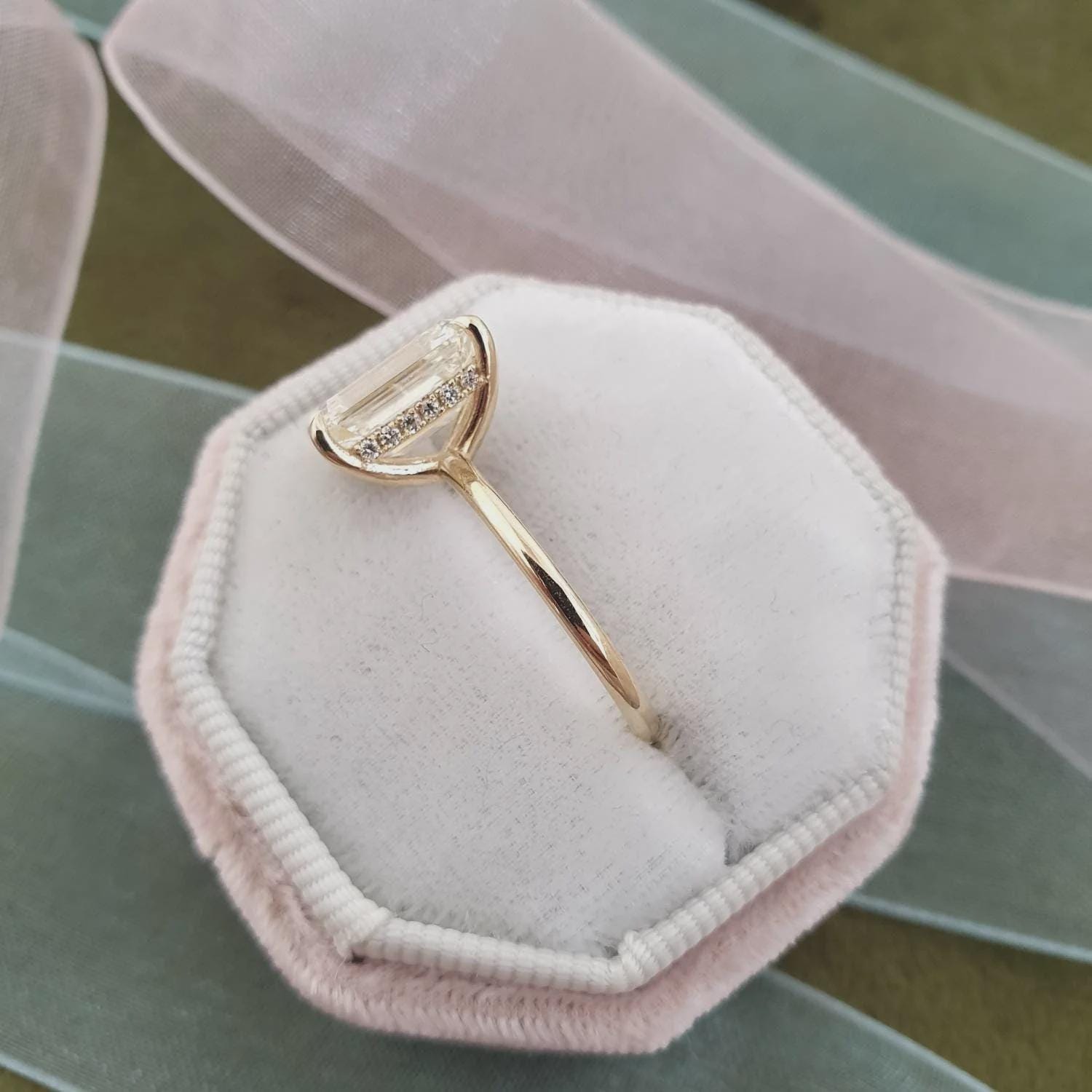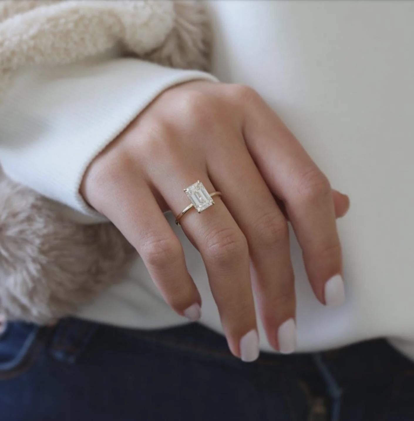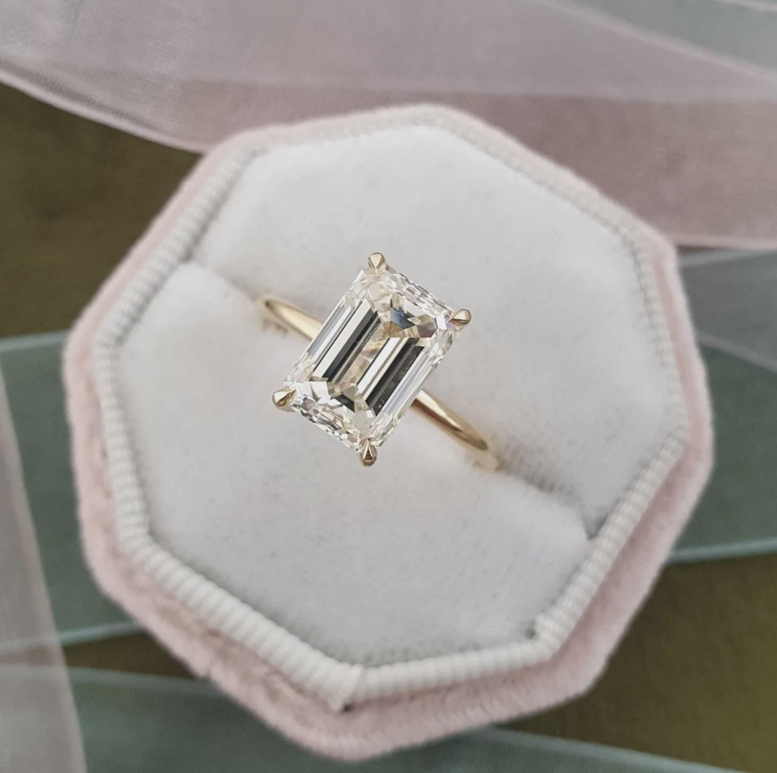 2CT Emerald Lab Grown Diamond Hidden Halo Engagement Ring Solid Gold Moissanite Bridal Anniversary Valentine’s Gift Handmade Jewelry