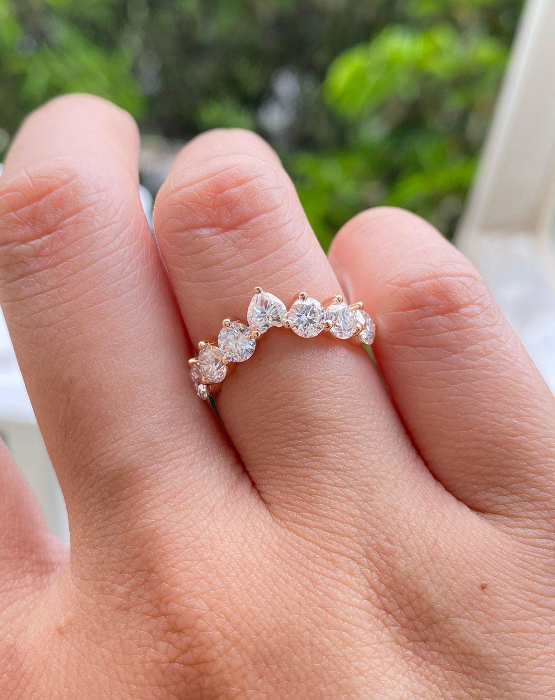 Chevron Wedding Band, 0.84 CT Round Cut Lab Grown Diamond Curved Band in 14k Gold, Engagement Matching Band, Delicate Handmade Ring for Her / Engagement Ring / Wedding Ring / Chevron Band / Lab Grown Diamond / Curved Band / Curved Wedding Band / Unique Bridal Band / Valentine Gift / Gift for Her / Gold Curved Band / Half Eternity Band / Birthday Gift / Anniversary Gift Ring / 14k Gold Ring / Moissanite Ring