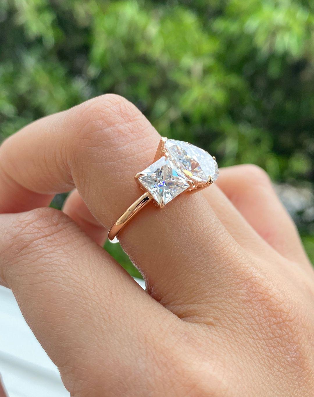 Toi ET Moi Engagement Ring, 14k Gold Two Stone Ring, Pear & Princess Lab Grown Diamond Wedding Ring, Anniversary Gift Ring, You N Me Ring / Toi Et Moi Ring / Engagement Ring / Two Stone Ring / Birthday Gift / Pear & Princess Cut Ring / Solid Gold Ring / Stunning Ring / Anniversary Gift / Lab Grown Diamond Ring / Modern Ring / Prong Ring / Valentine Gift / Fine Jewelry / Delicate Ring